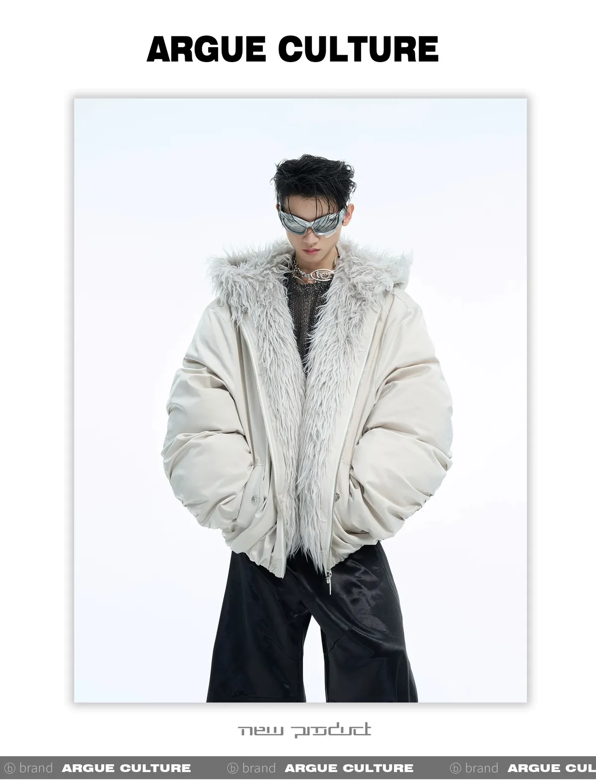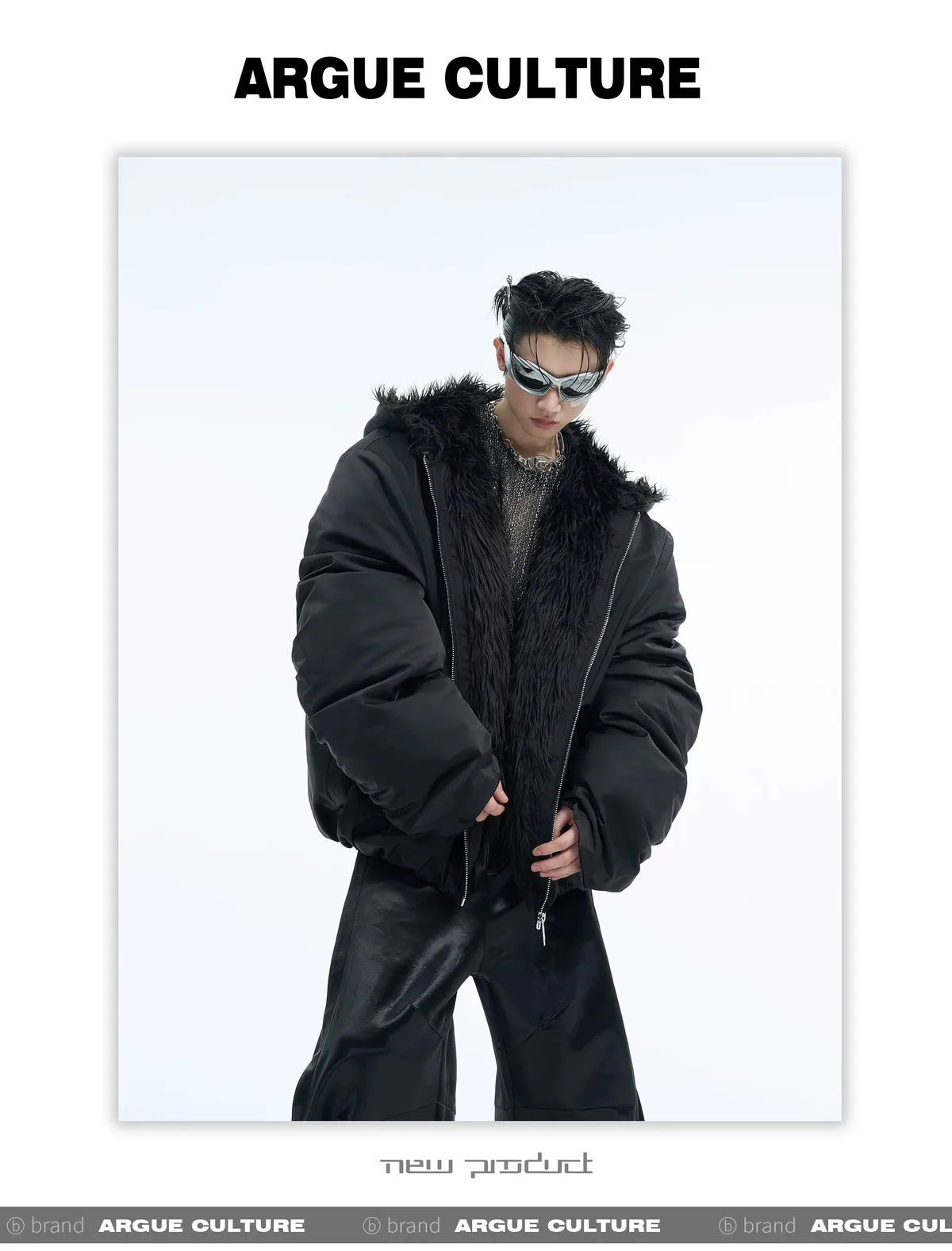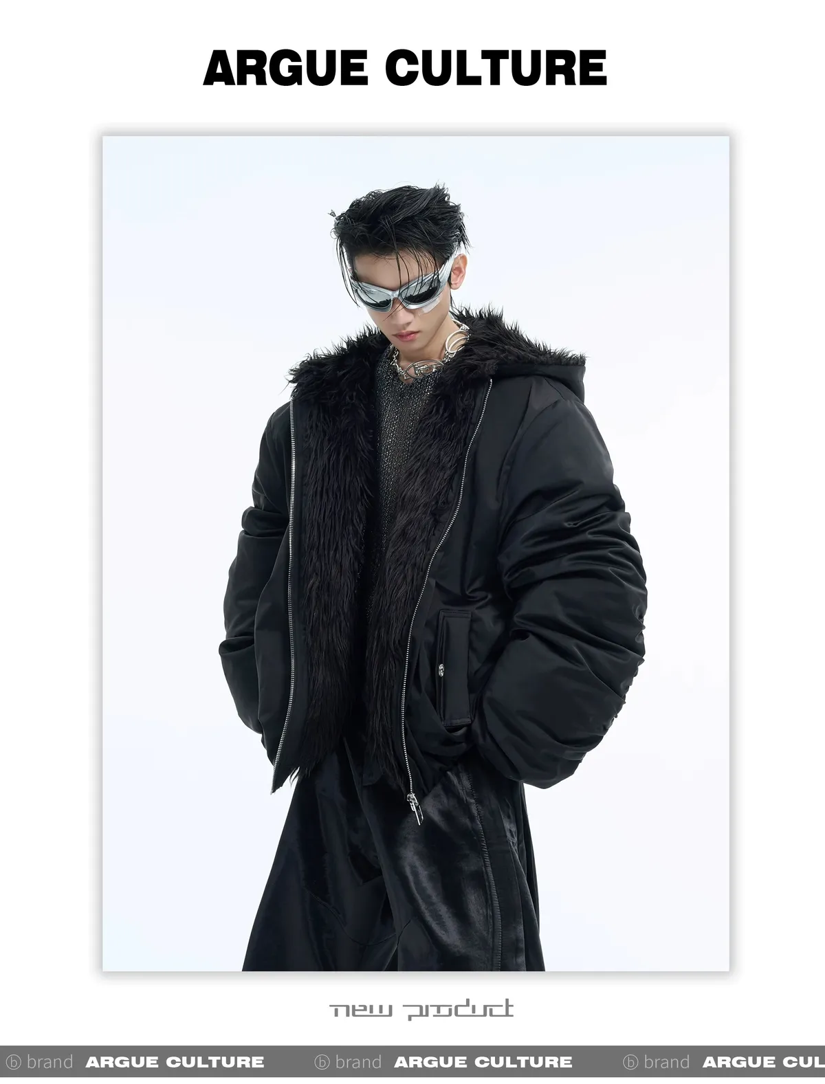 ARGUE 拼接毛領 重磅 防水 BOMBER 外套(黑/白)
