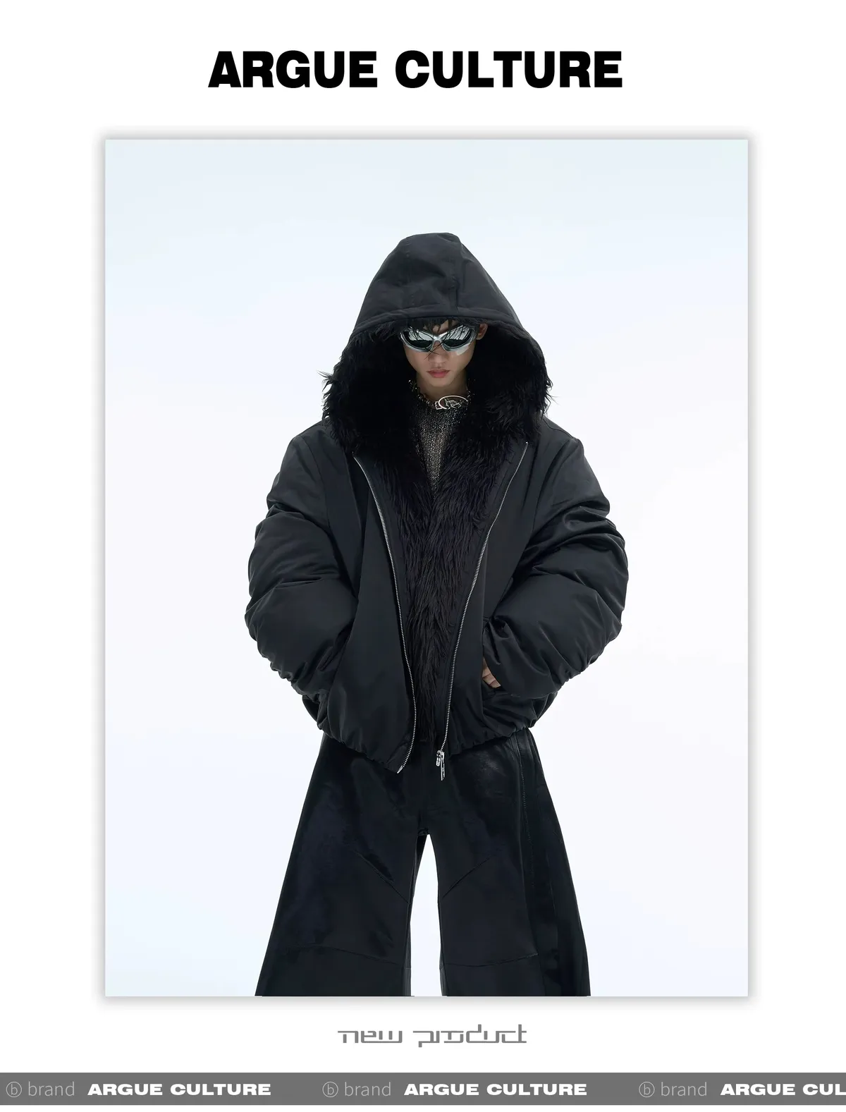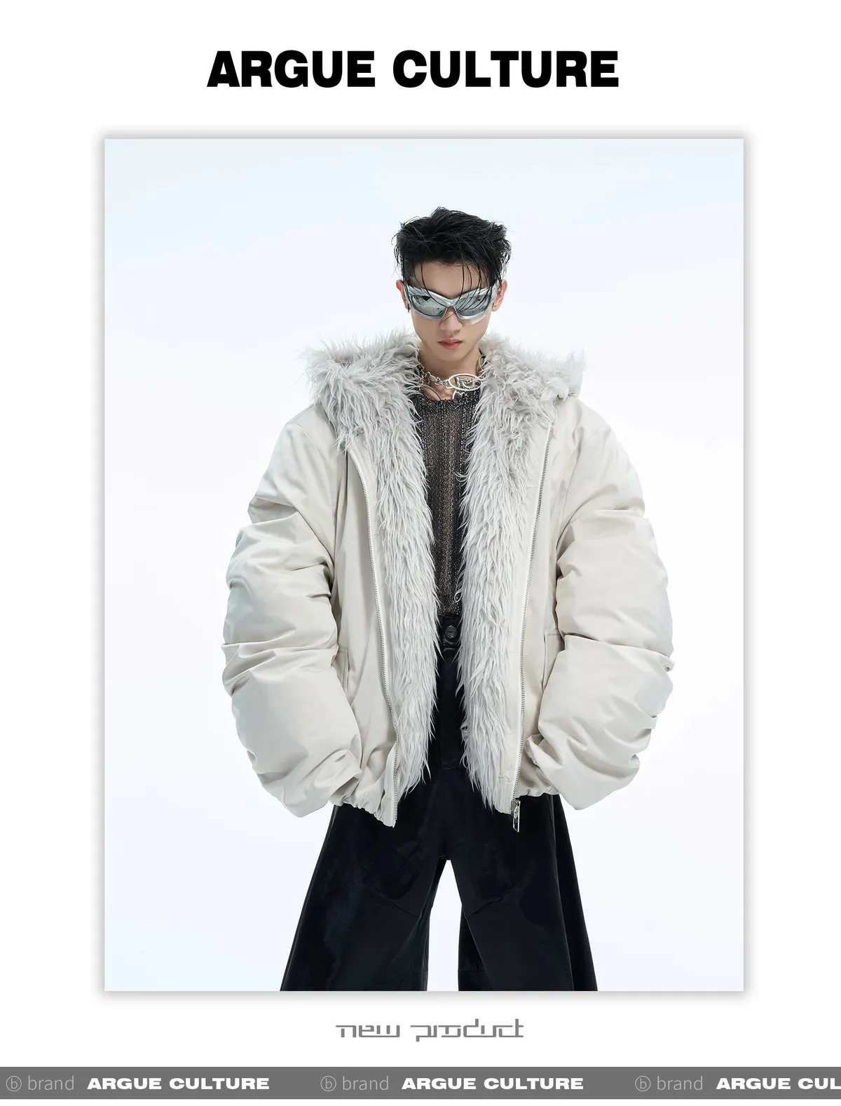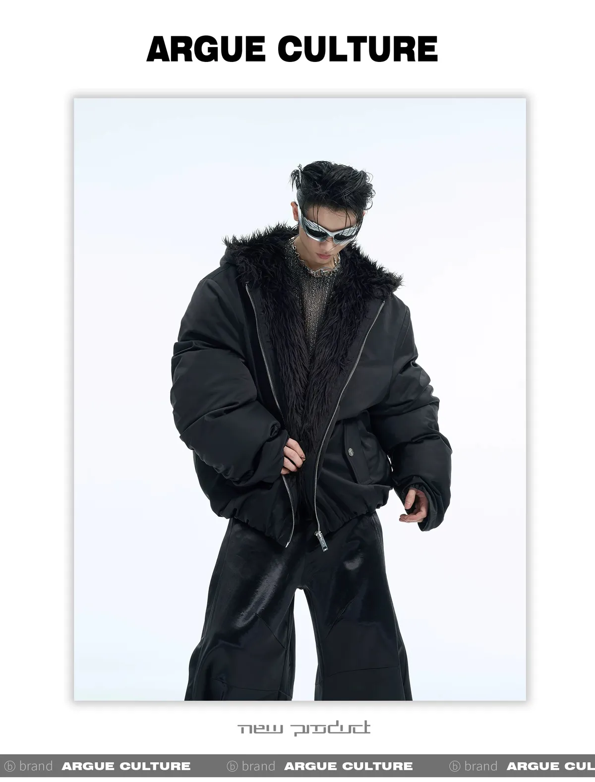 ARGUE 拼接毛領 重磅 防水 BOMBER 外套(黑/白)