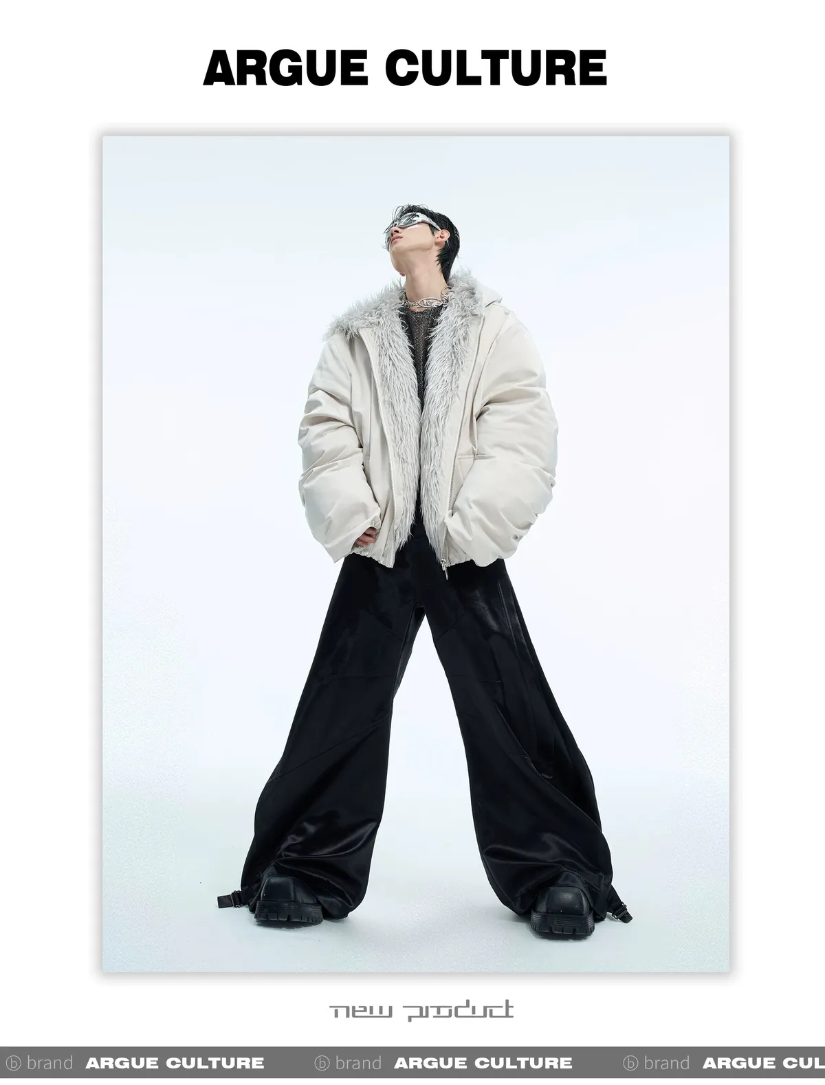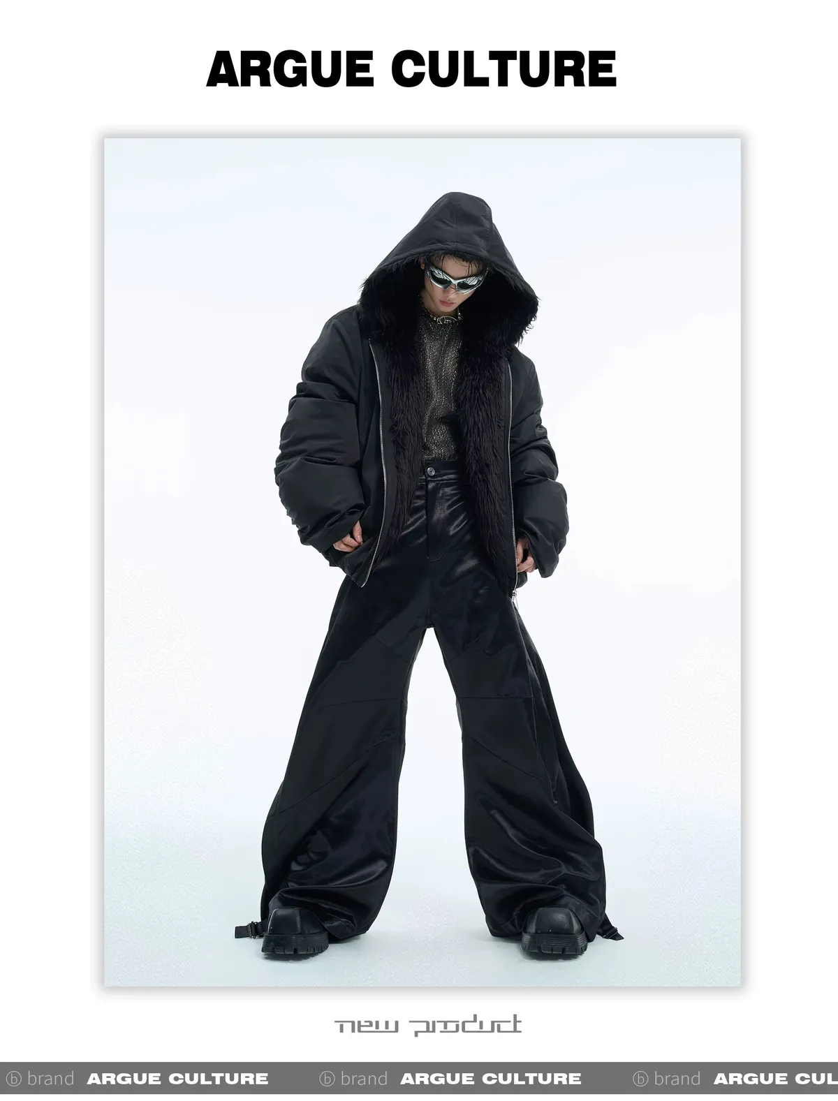 ARGUE 皺褶設計 加厚 純棉 外套 棉褲 套裝(黑/灰)