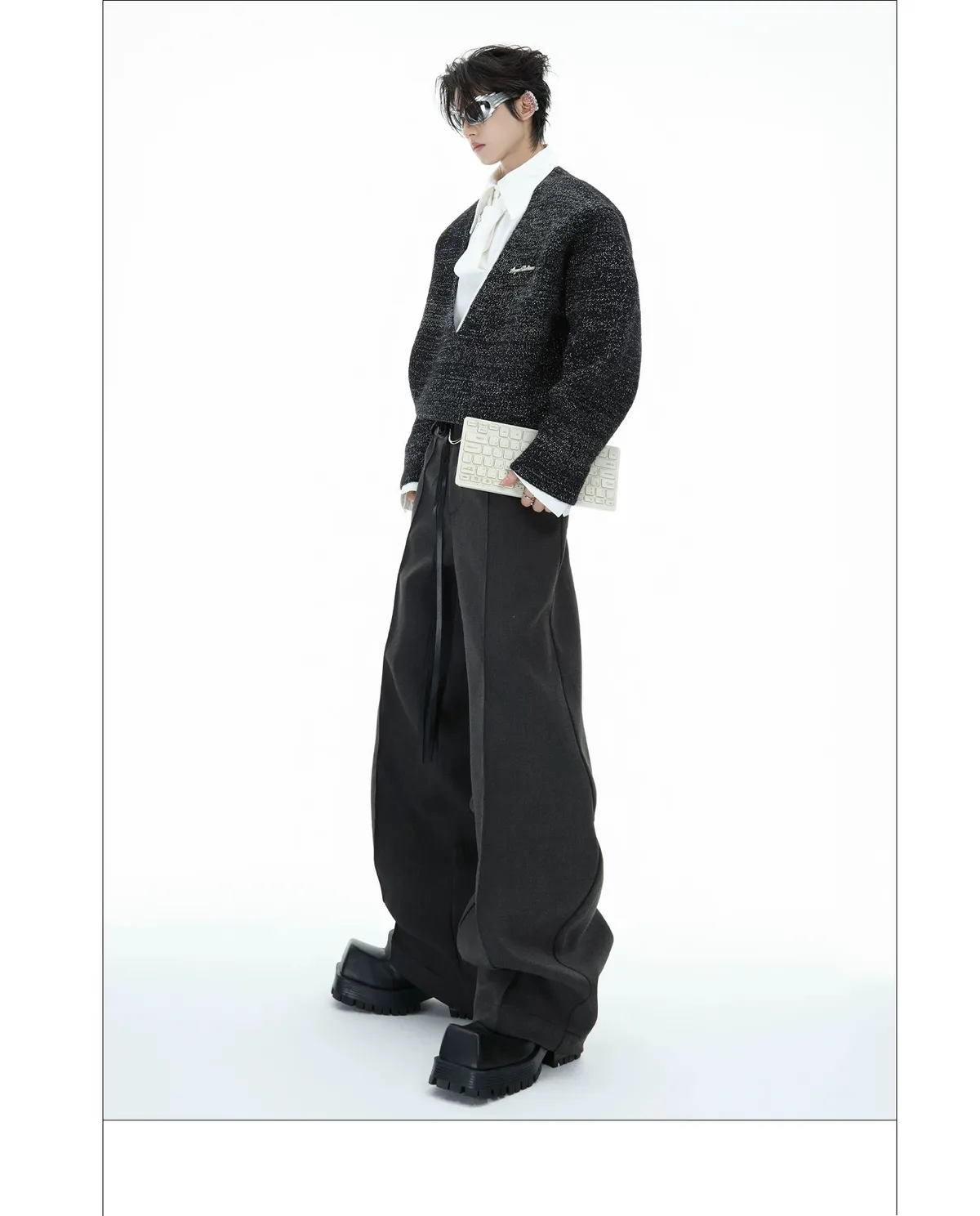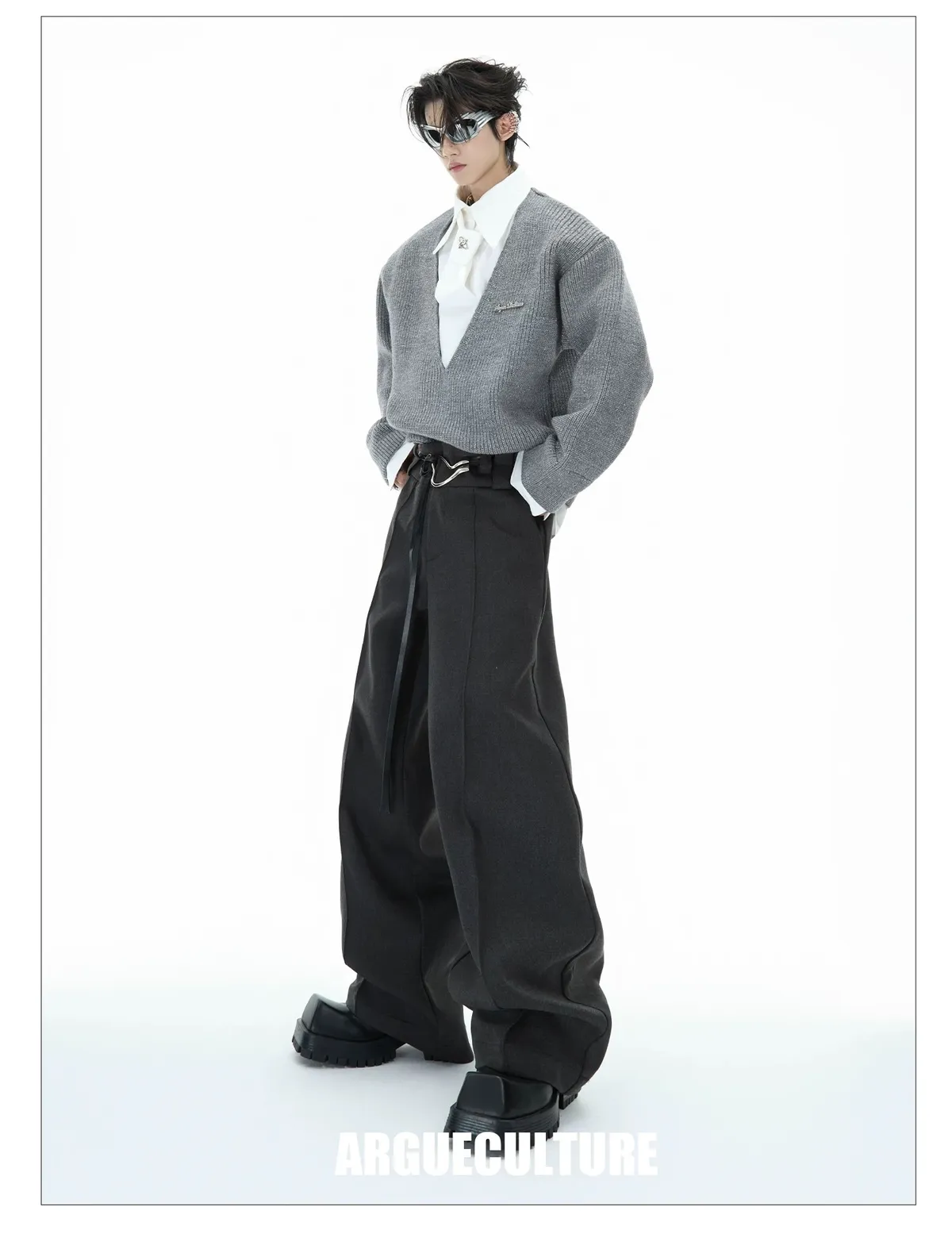 ARGUE 綁帶設計 直筒 純色 西裝褲(黑/灰)