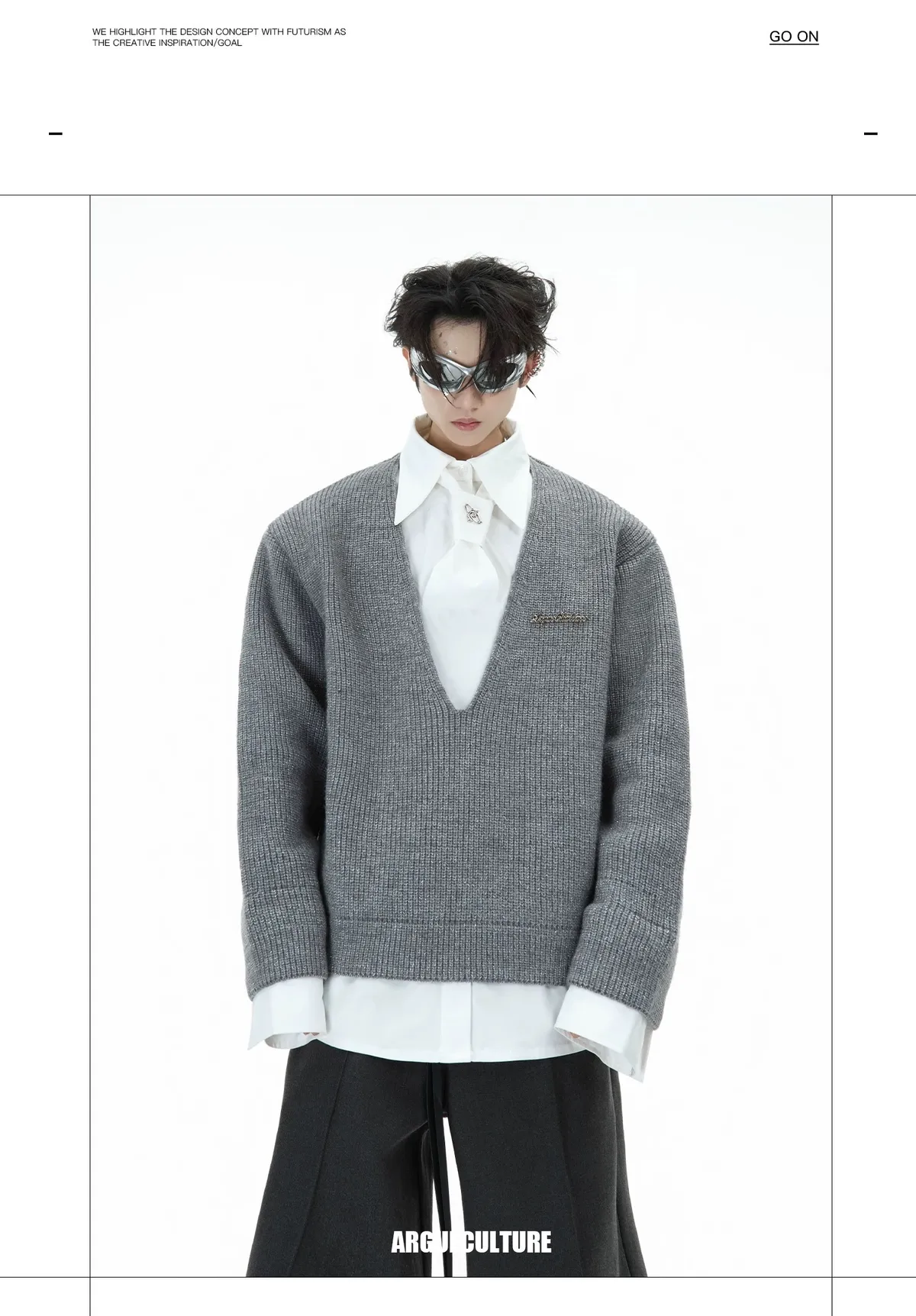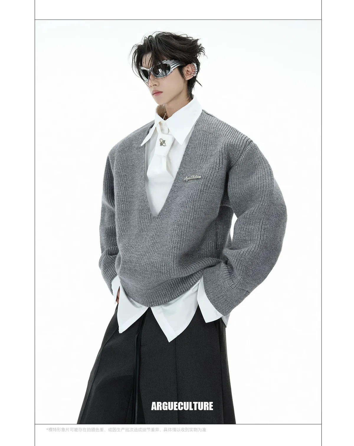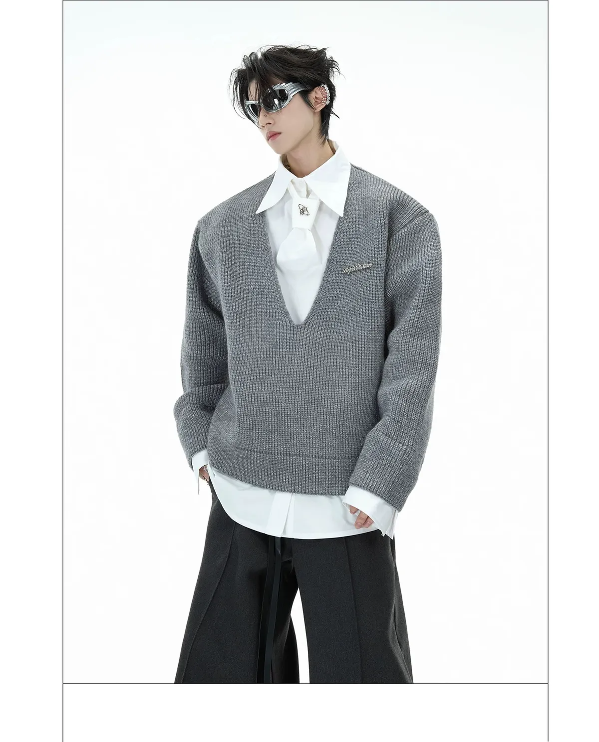 ARGUE 假兩件 領帶襯衫 拼接 毛衣(黑/灰)