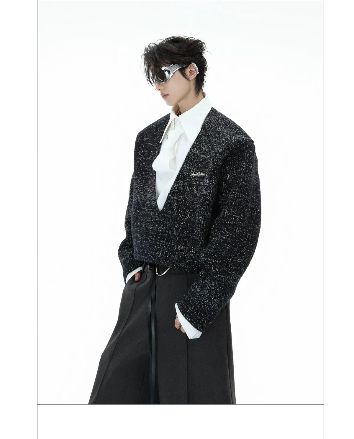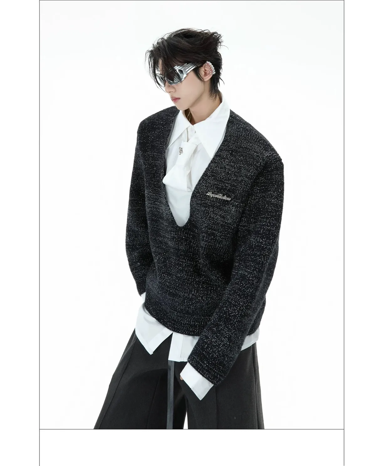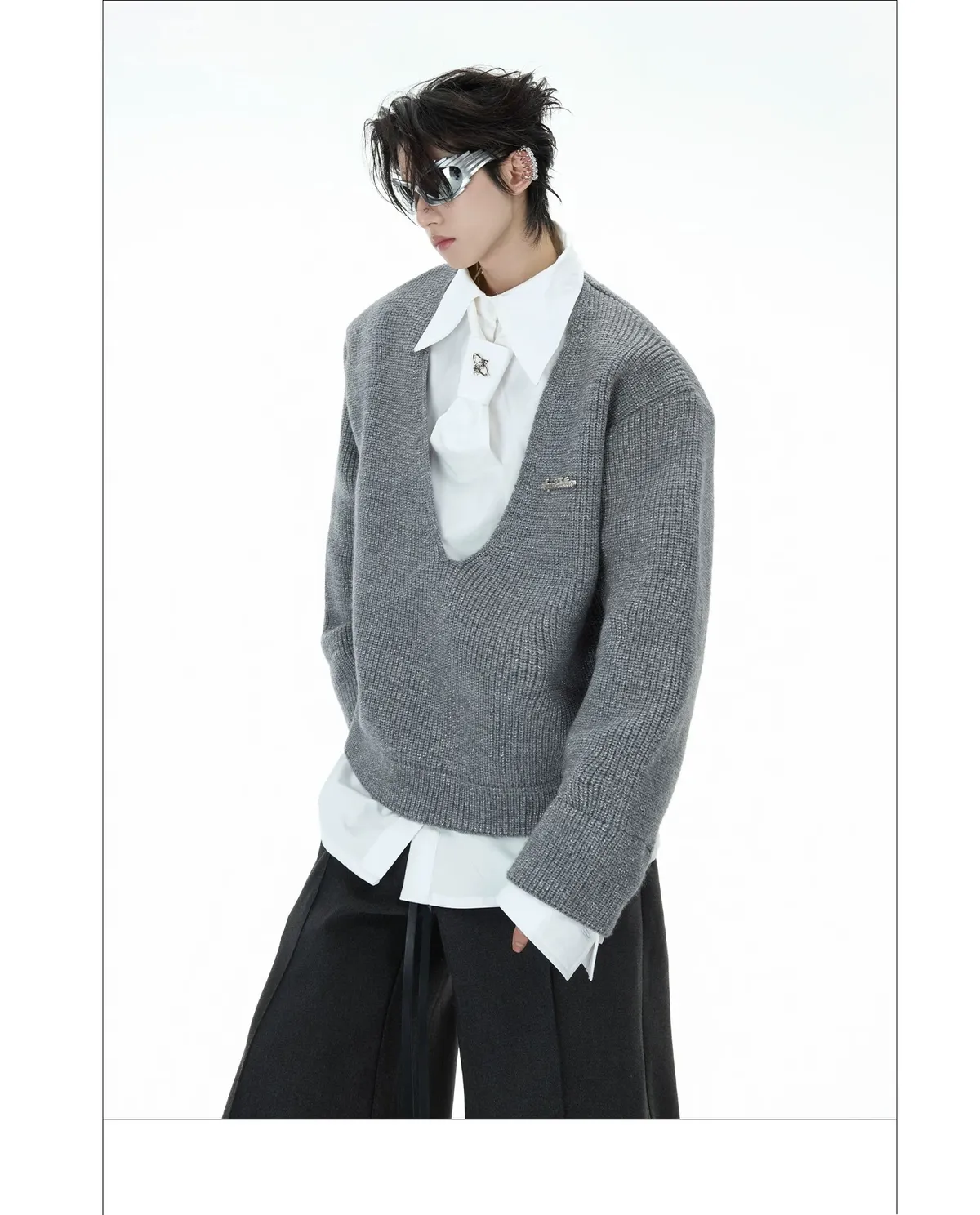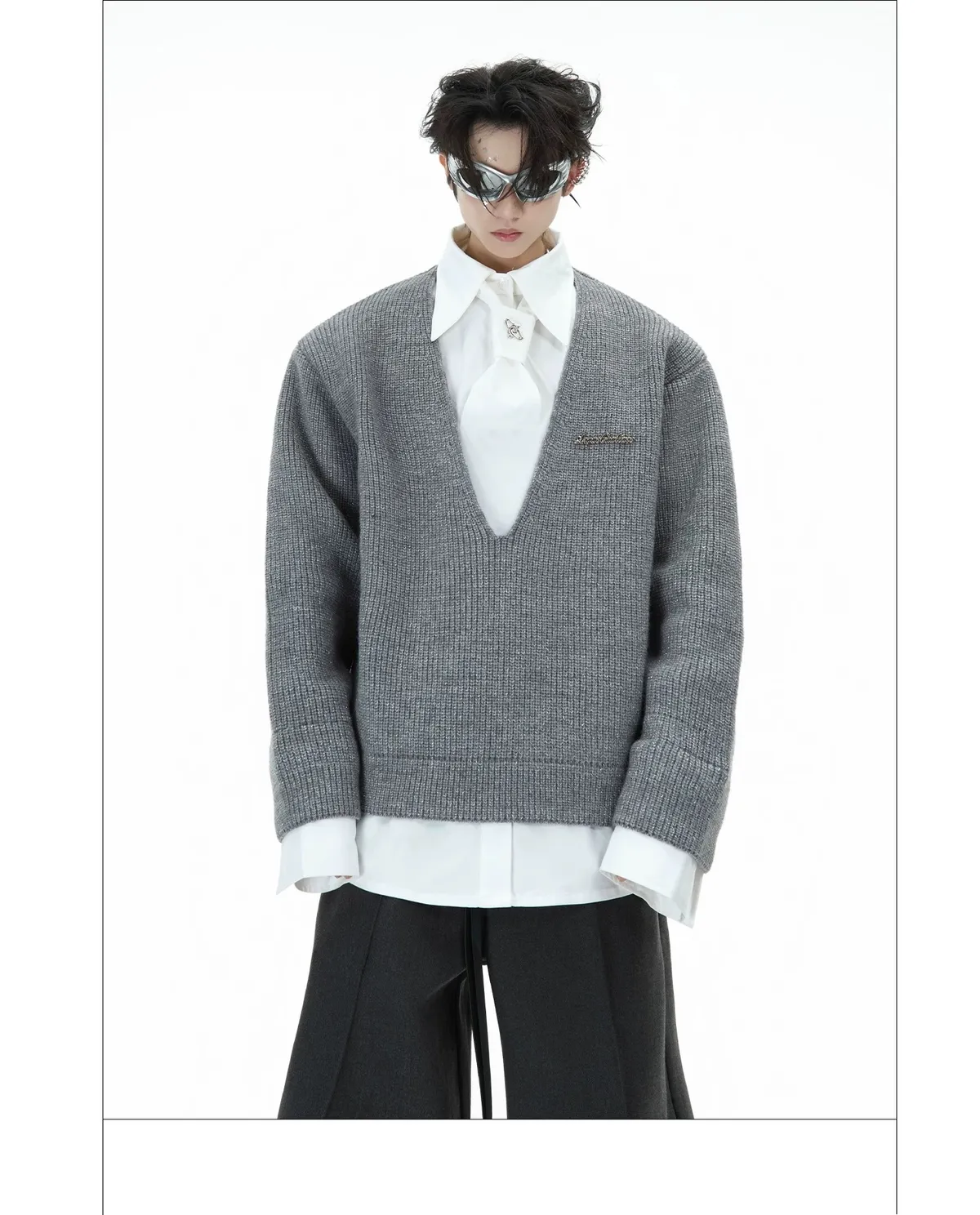 ARGUE 假兩件 領帶襯衫 拼接 毛衣(黑/灰)
