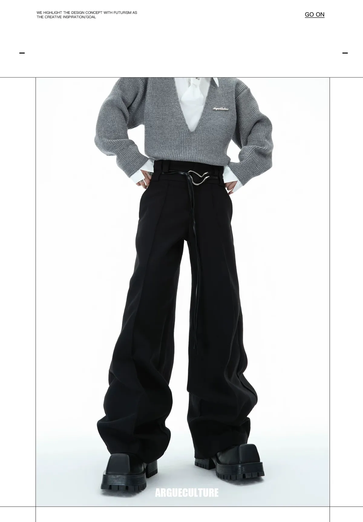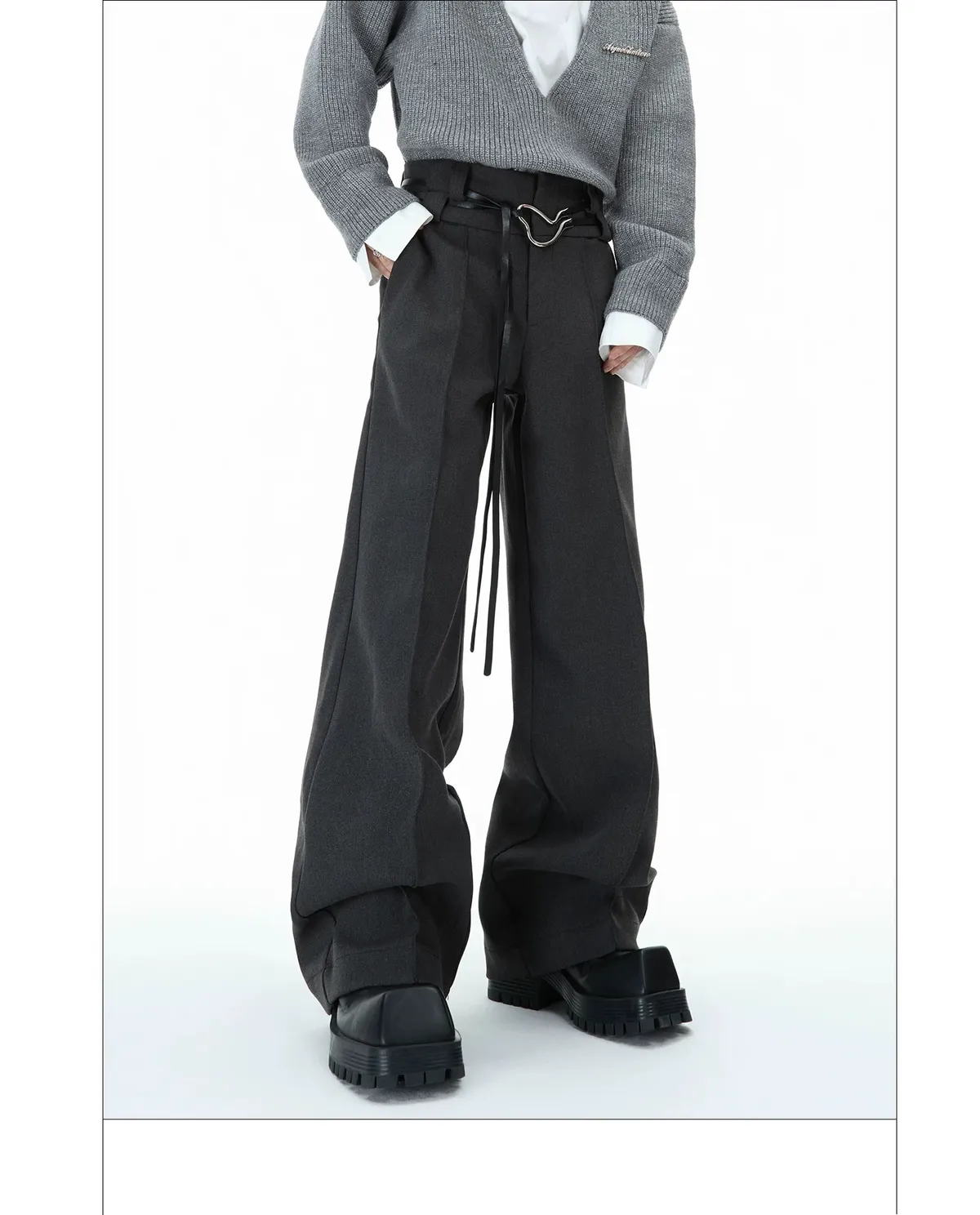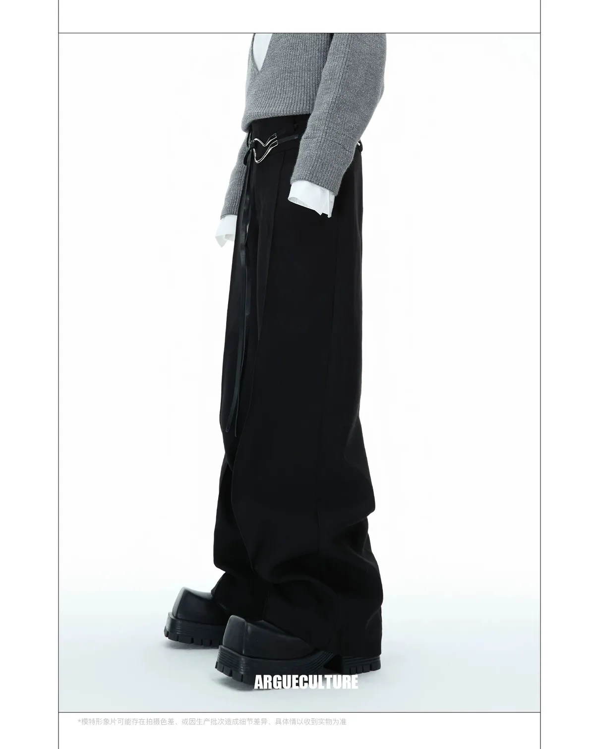 ARGUE 綁帶設計 直筒 純色 西裝褲(黑/灰)