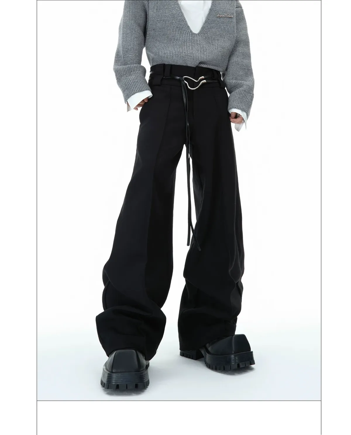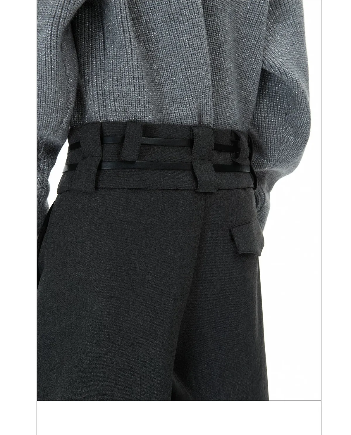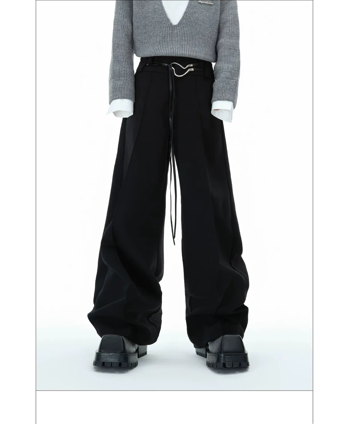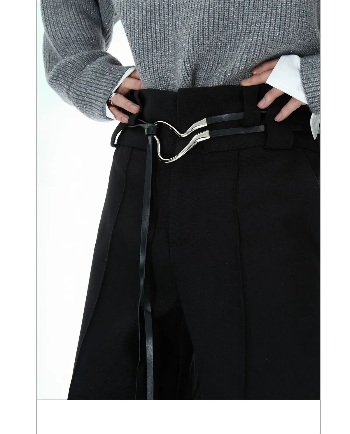 ARGUE 綁帶設計 直筒 純色 西裝褲(黑/灰)