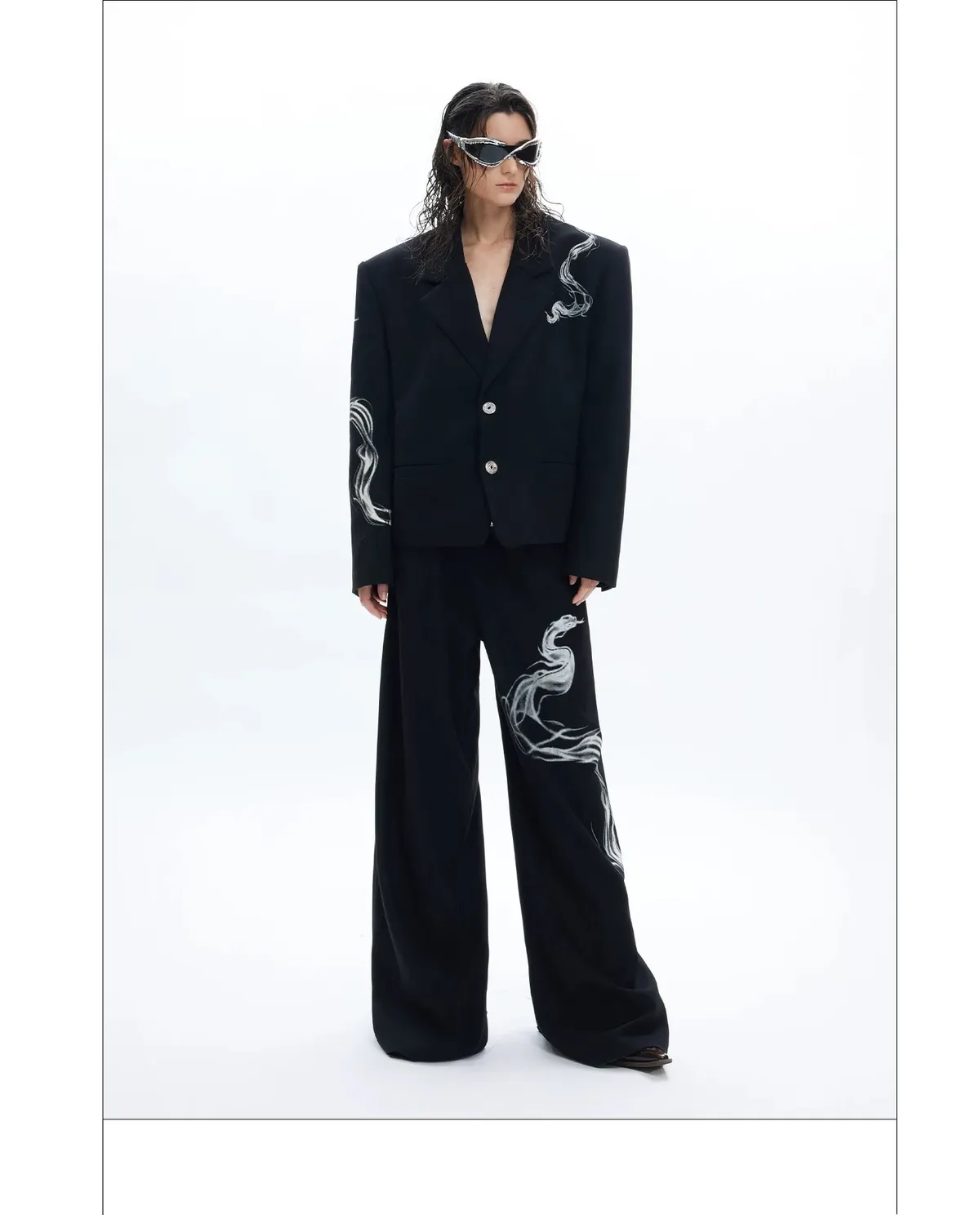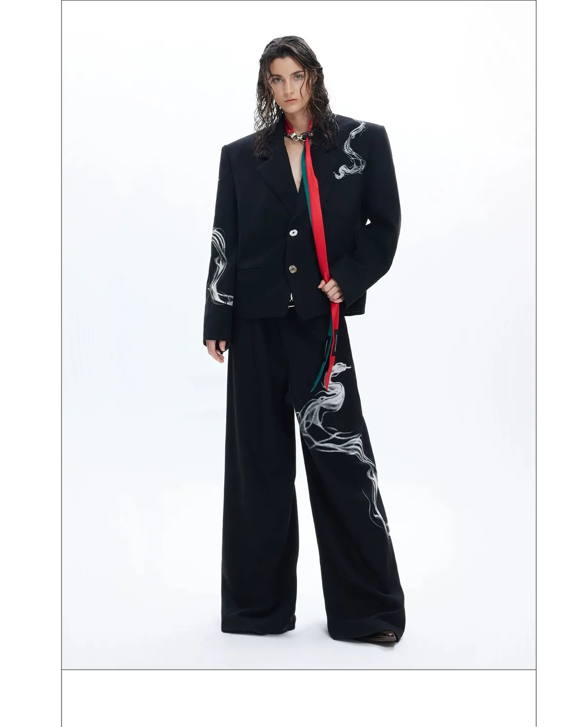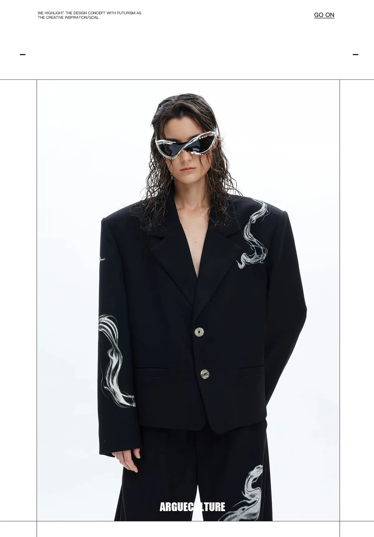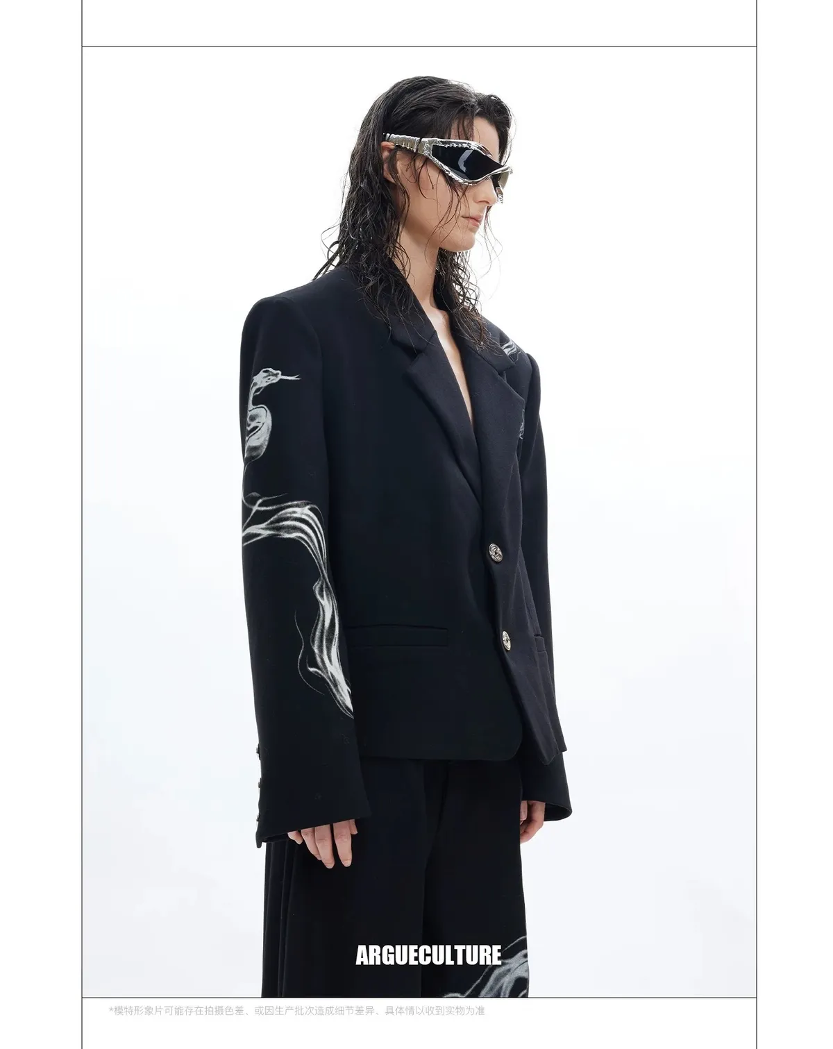 ARGUE 煙霧靈蛇 設計感 西裝外套 西裝褲 套裝(黑色)