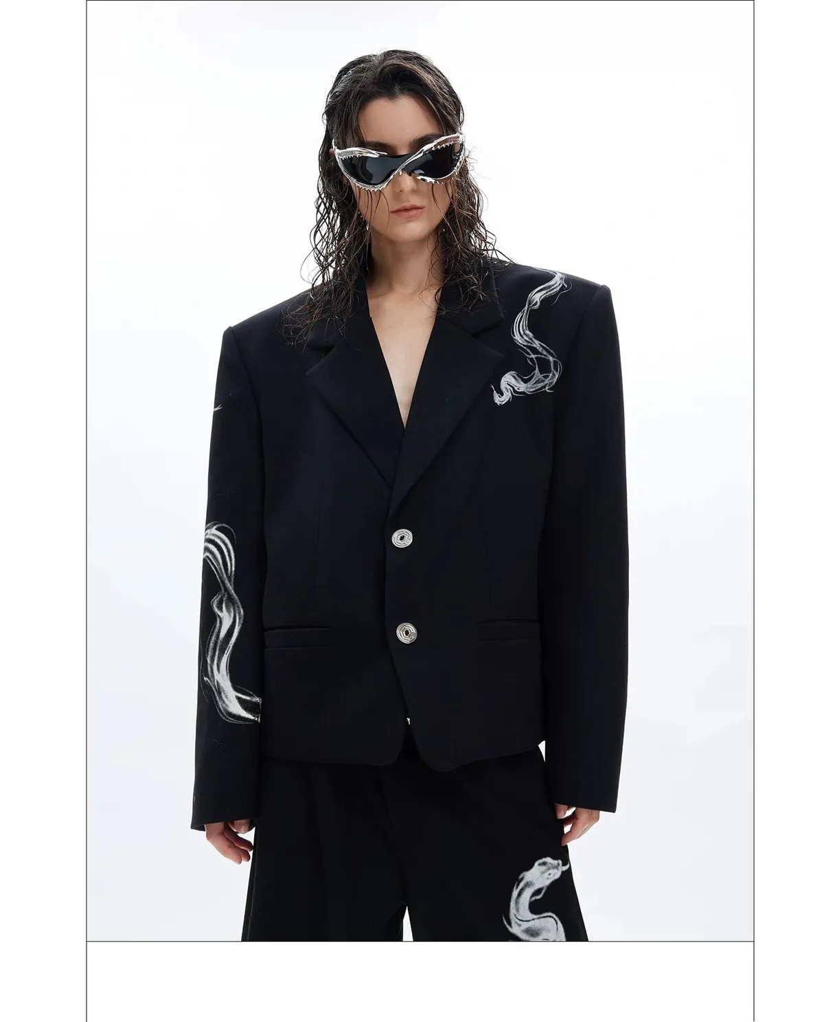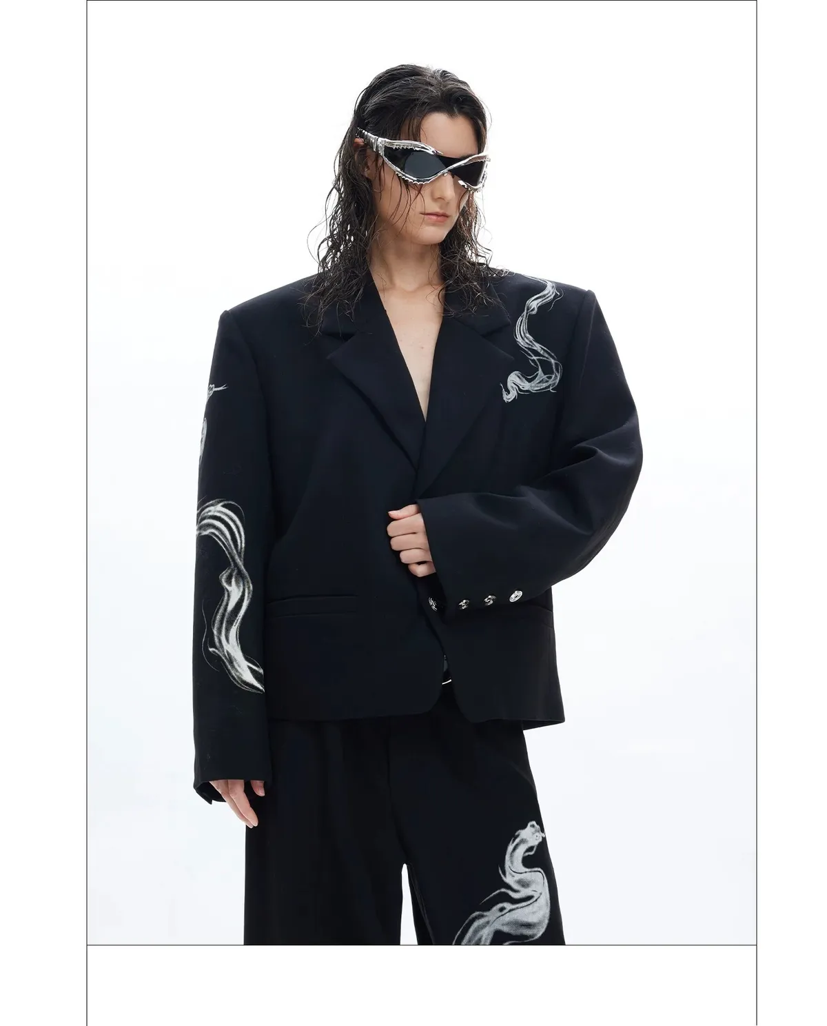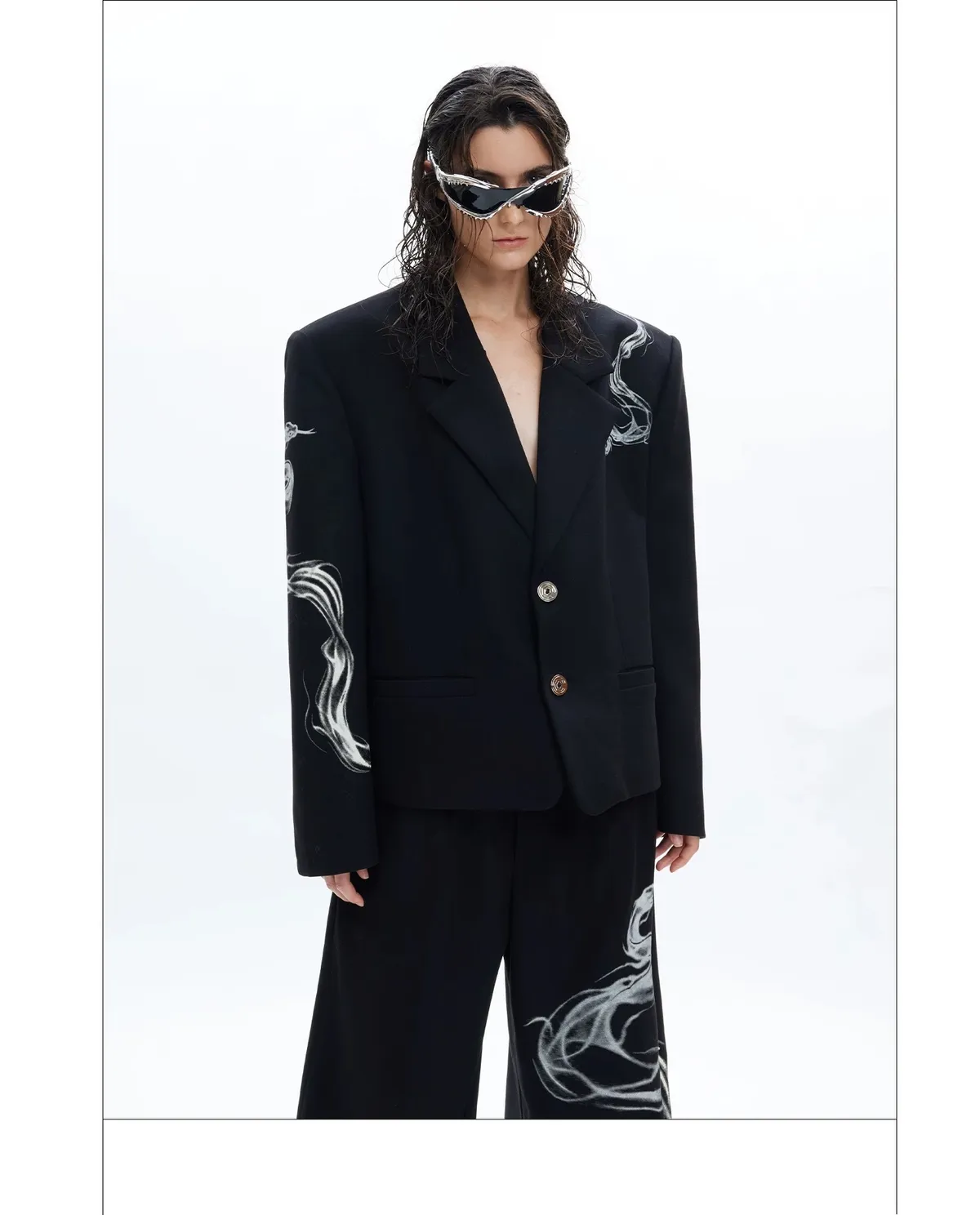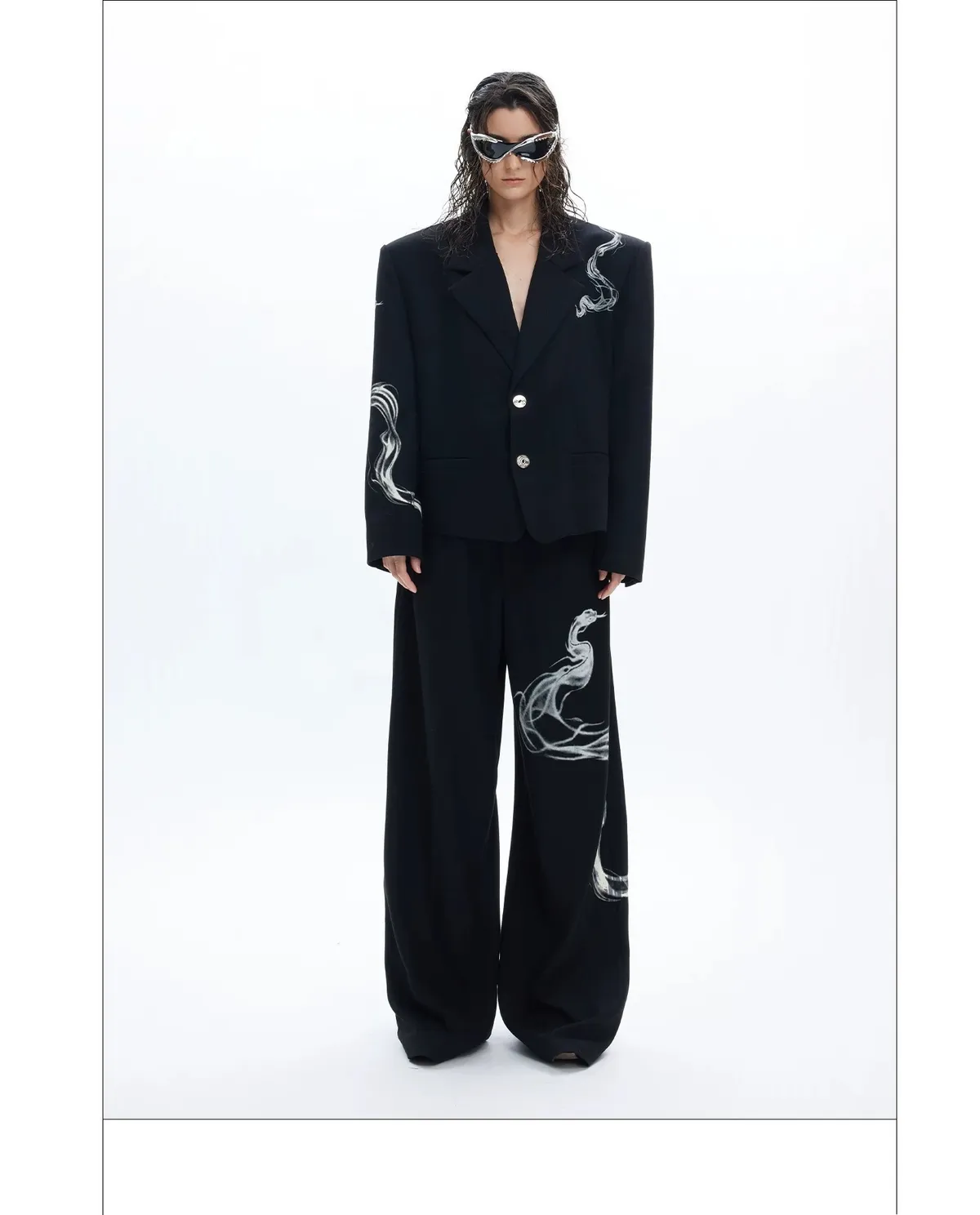 ARGUE 煙霧靈蛇 設計感 西裝外套 西裝褲 套裝(黑色)