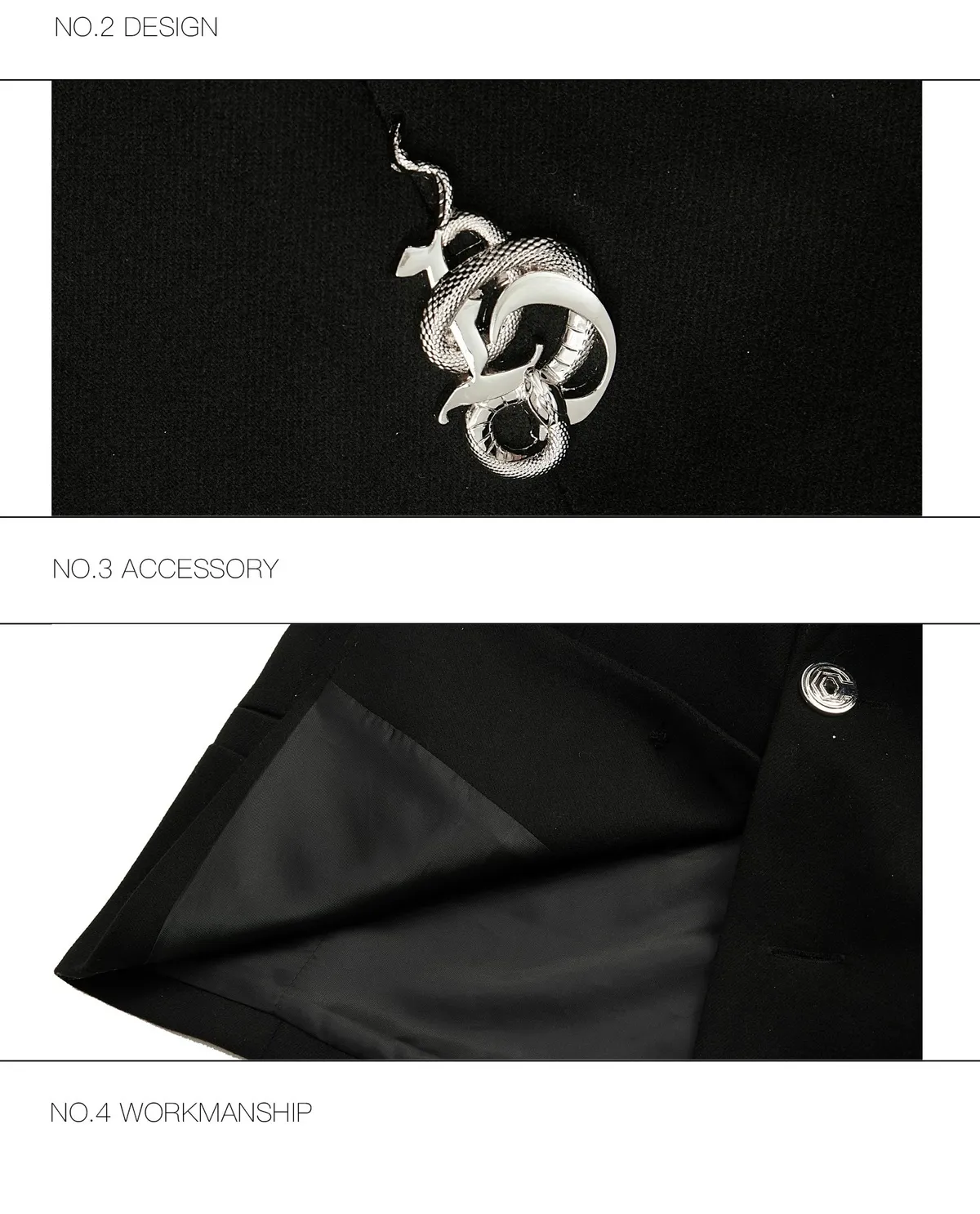ARGUE 蛇紋翻領 設計感 皮革 外套(黑/白)
