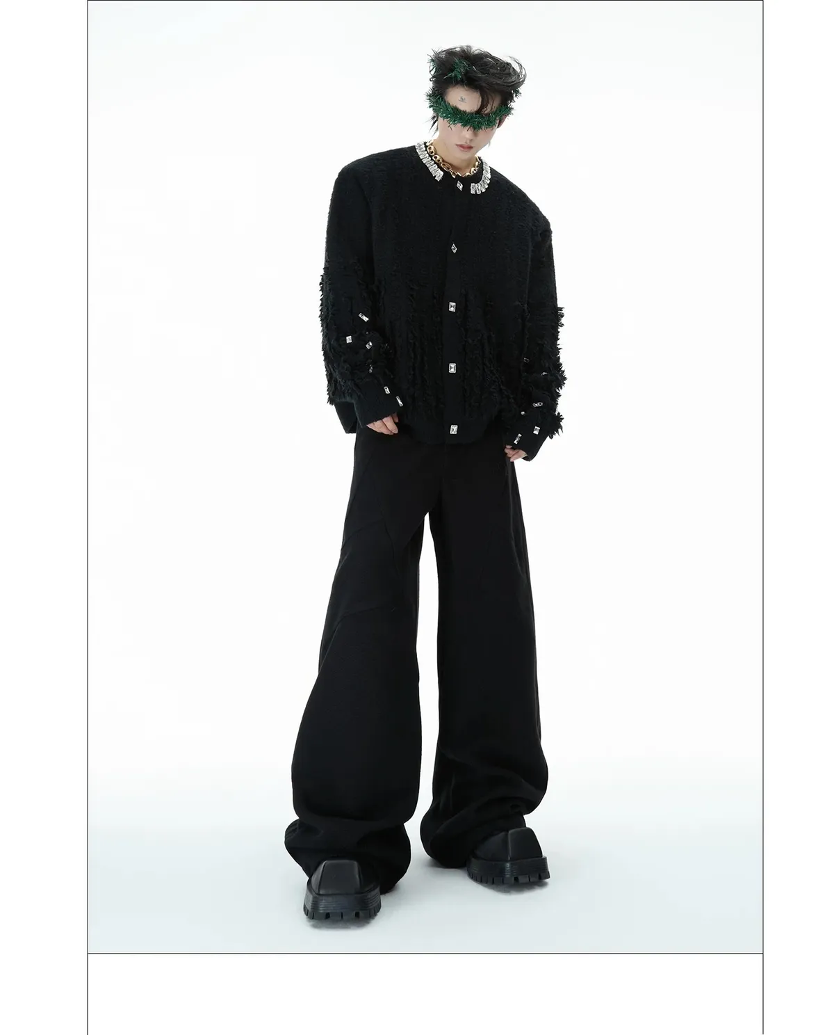 ARGUE 毛邊 廓形 彎刀 牛仔褲(黑色)