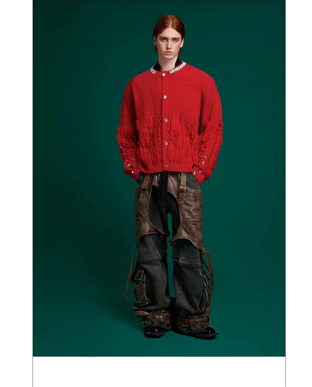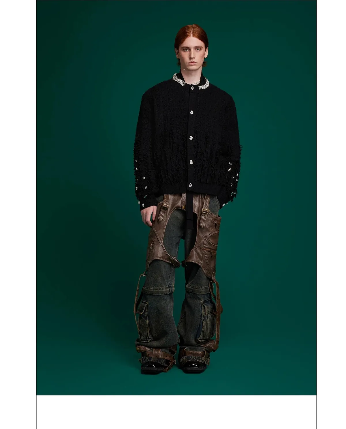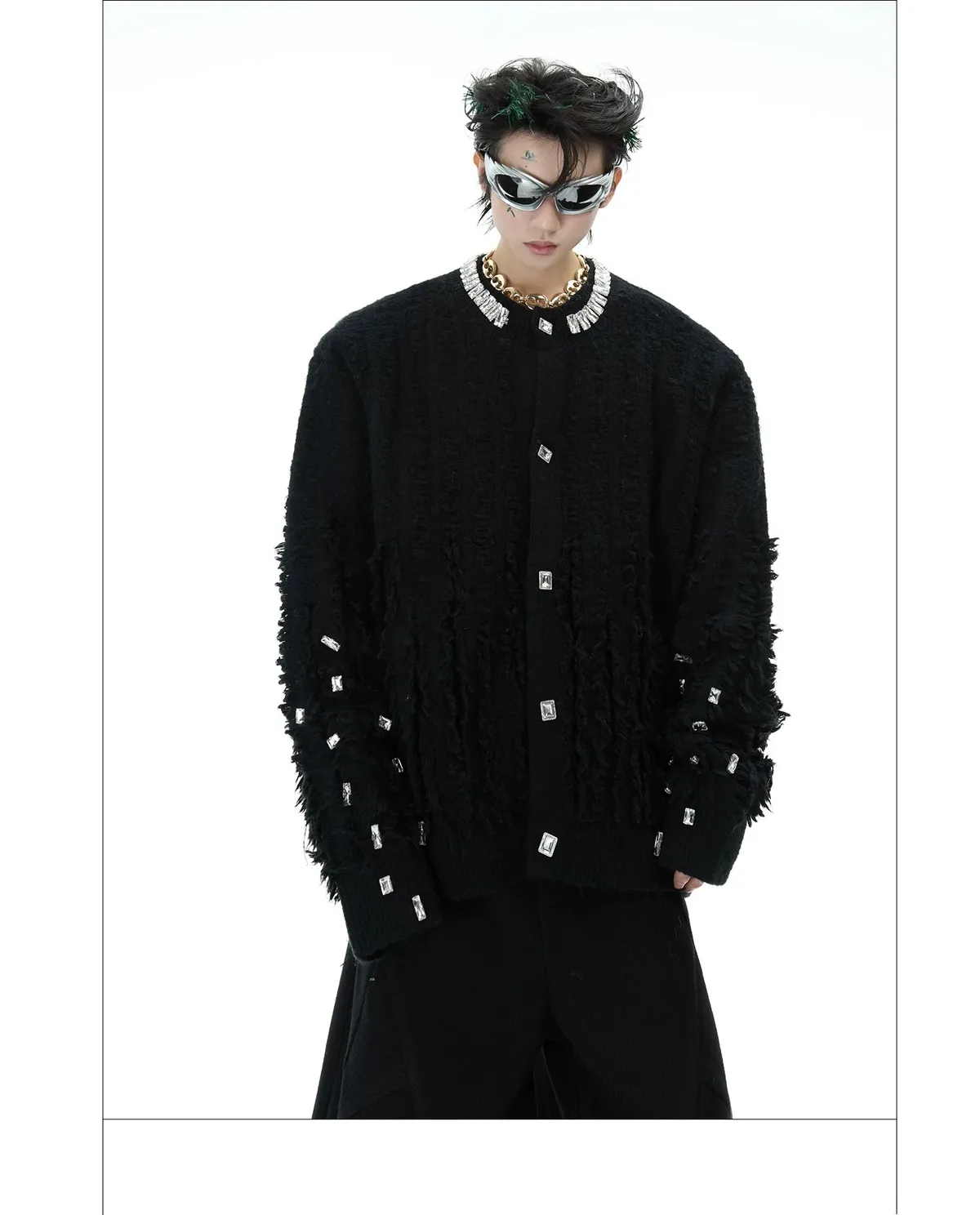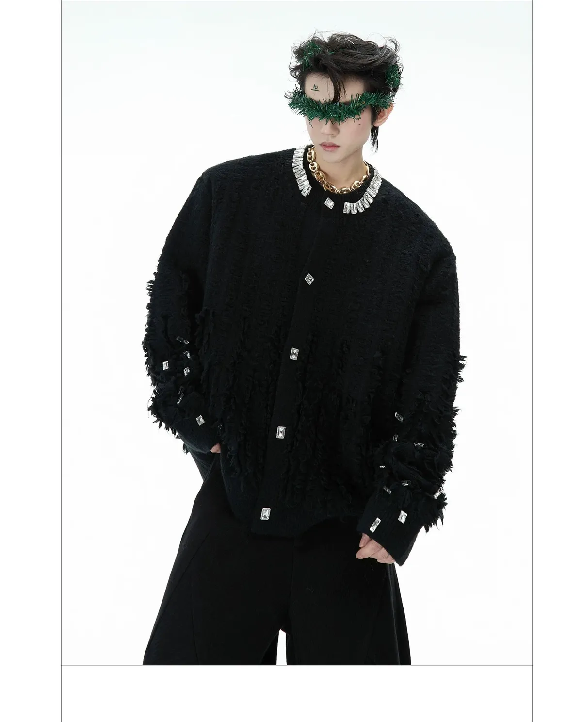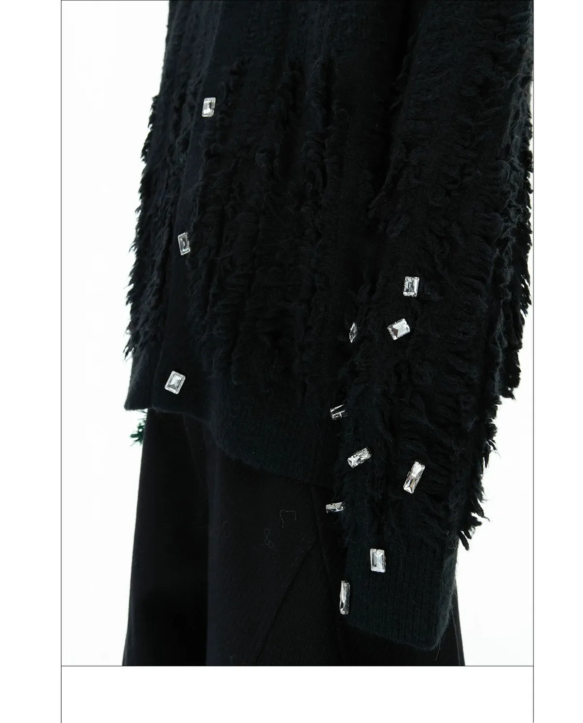 ARGUE 方塊水鑽 慵懶 抽鬚 毛衣(黑/白/紅)