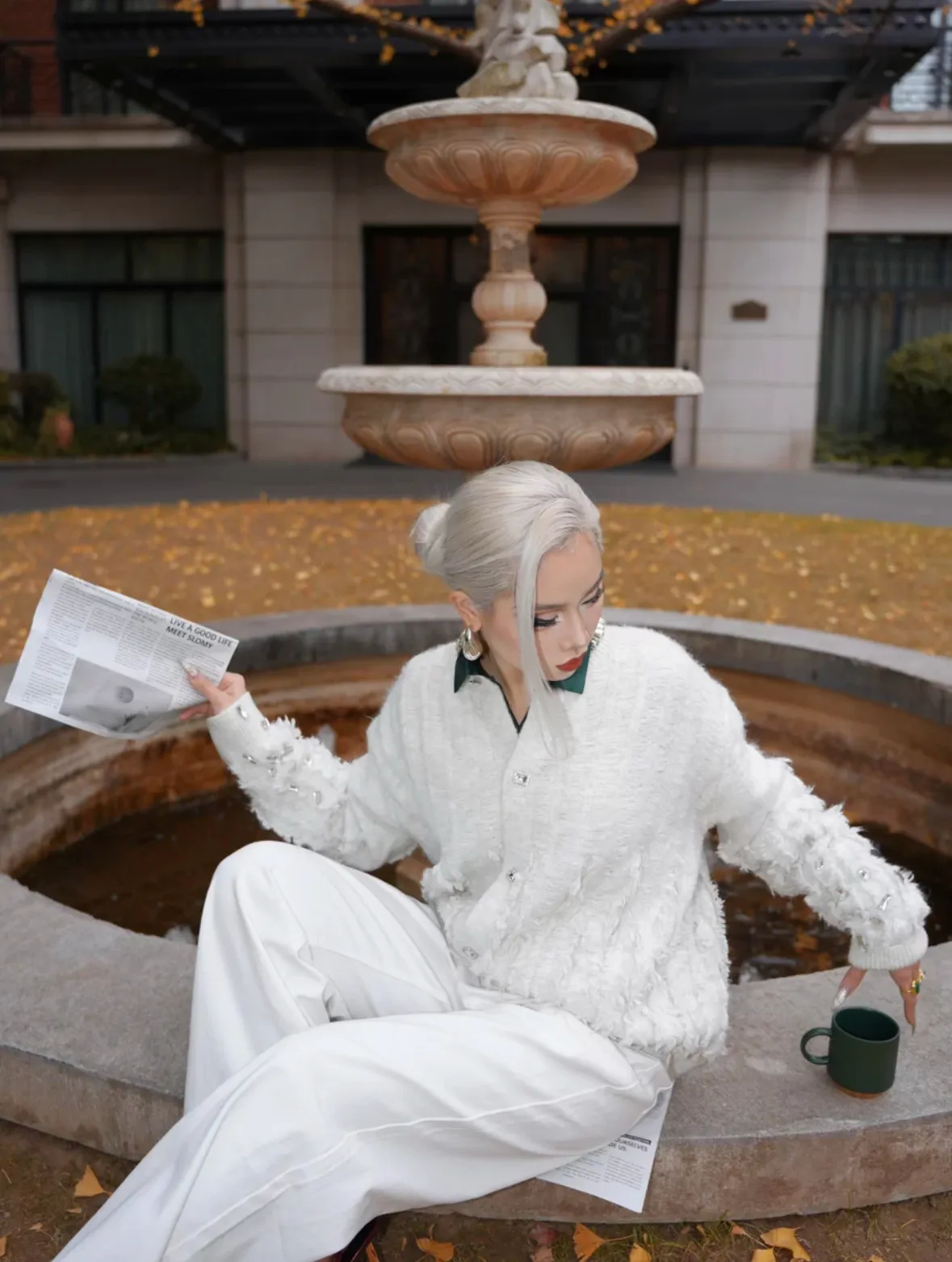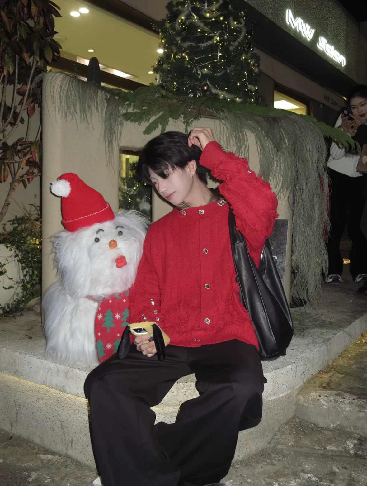 ARGUE 雪玉仙蹤 閃鑽 氛圍感 毛衣 外套(黑/白/灰/紅)