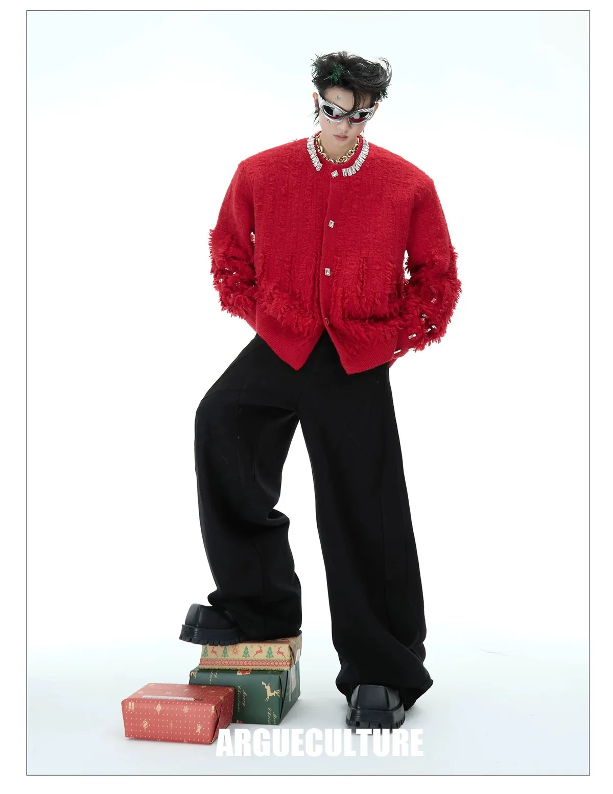 ARGUE 立體坑紋 解構 廓形 彎刀 西裝褲(黑/紅)
