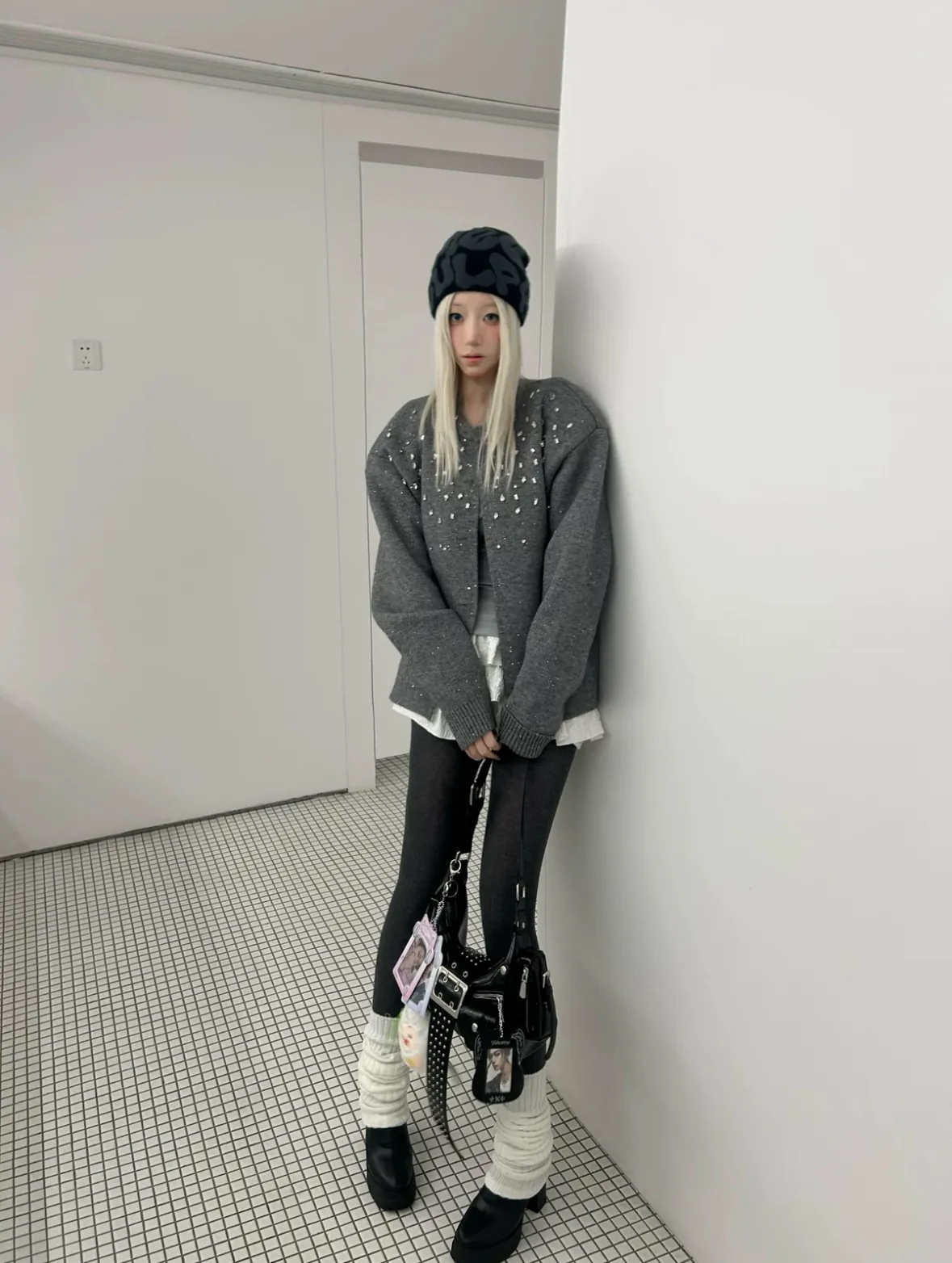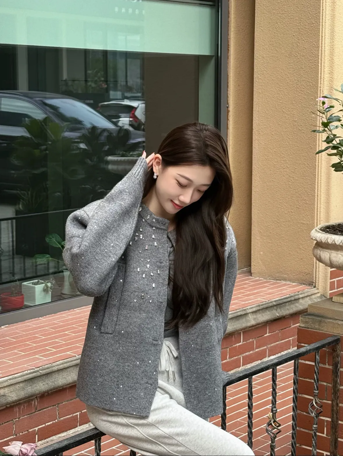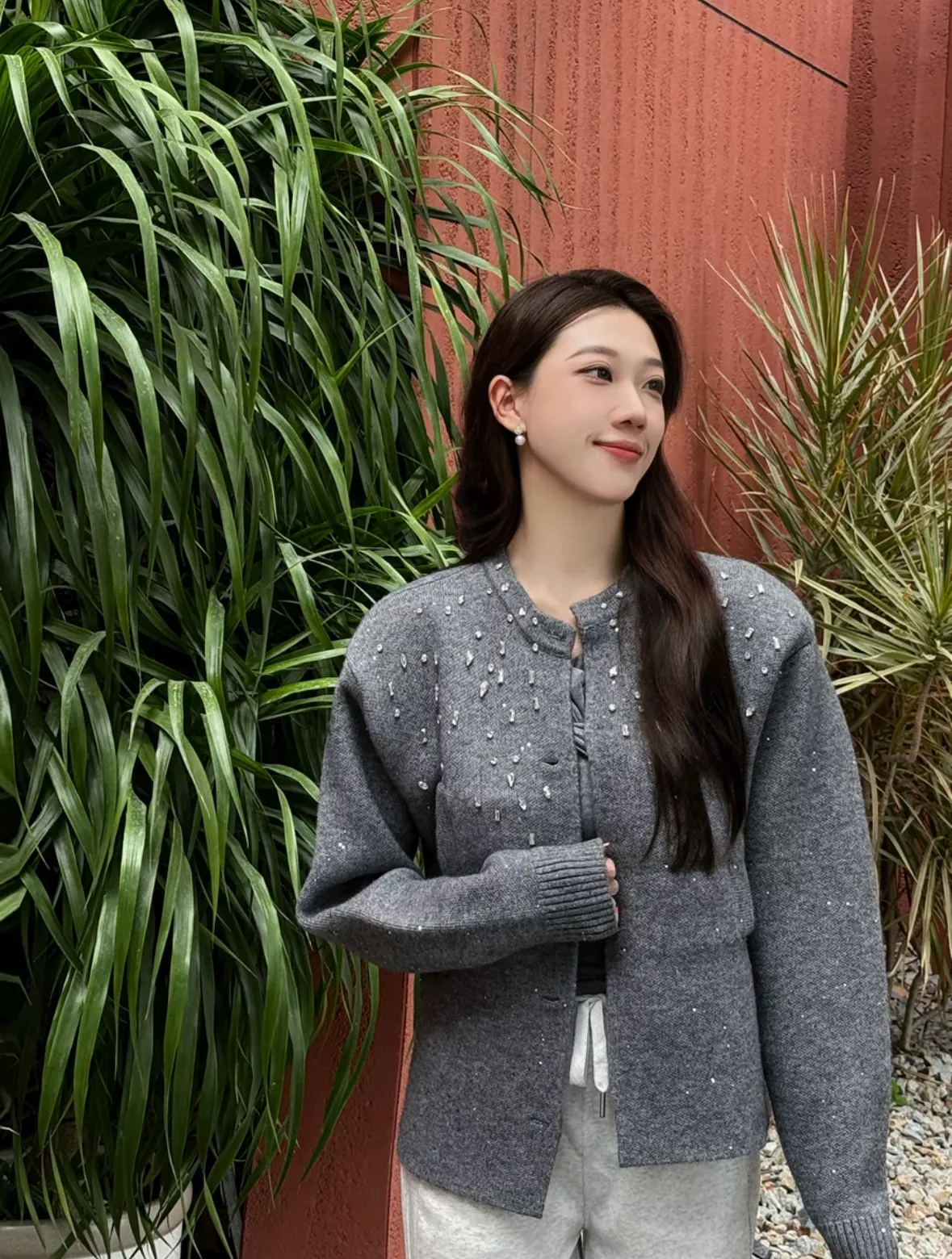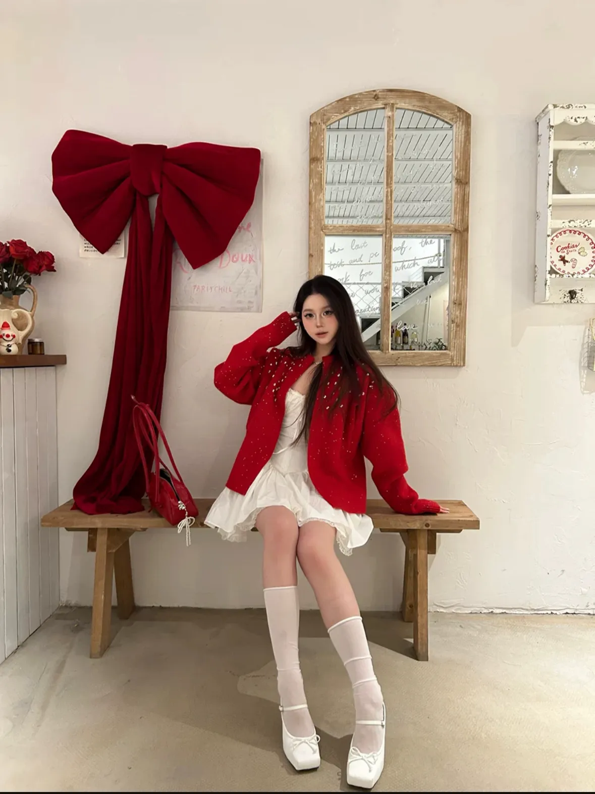 ARGUE 雪玉仙蹤 閃鑽 氛圍感 毛衣 外套(黑/白/灰/紅)