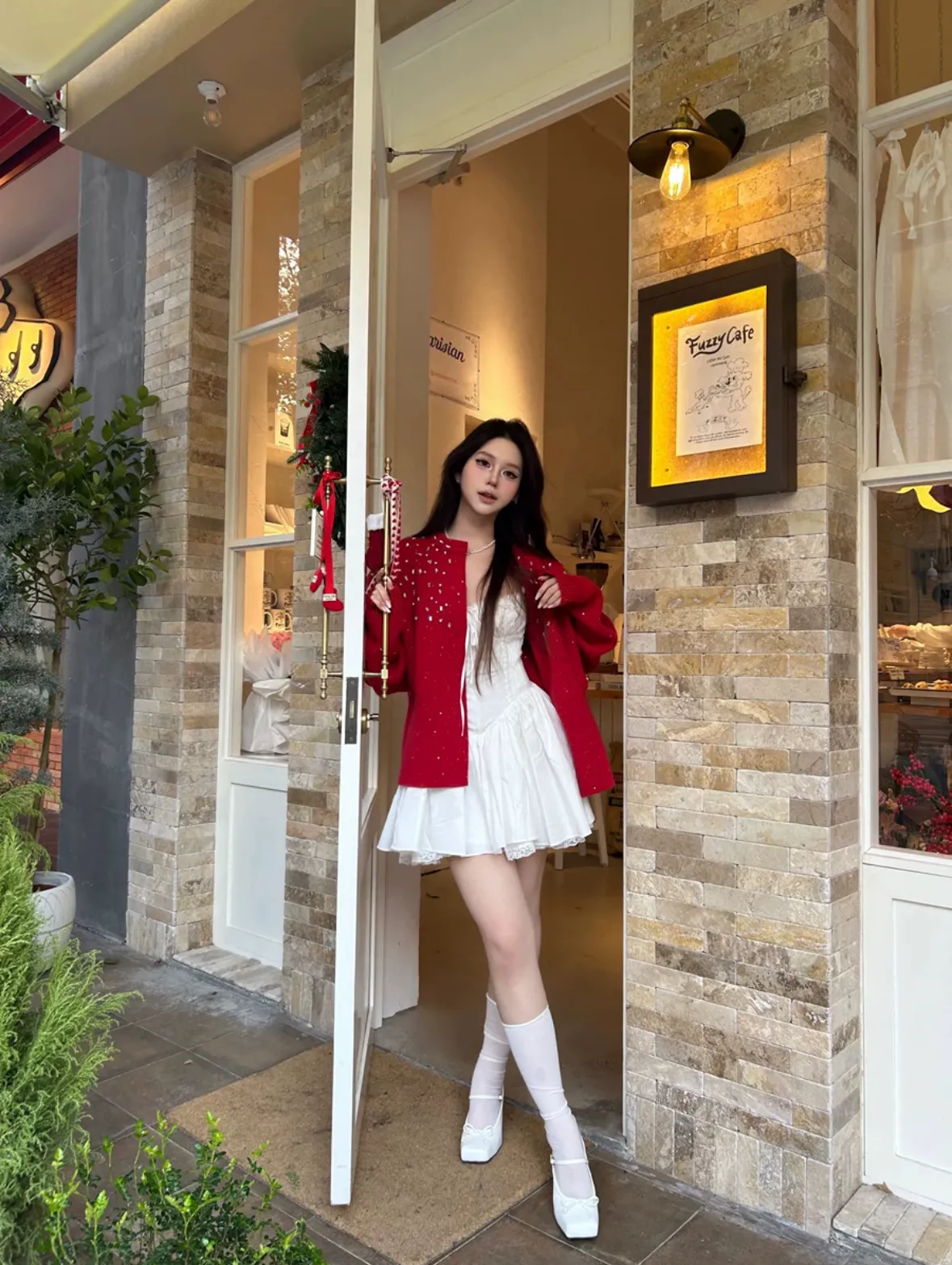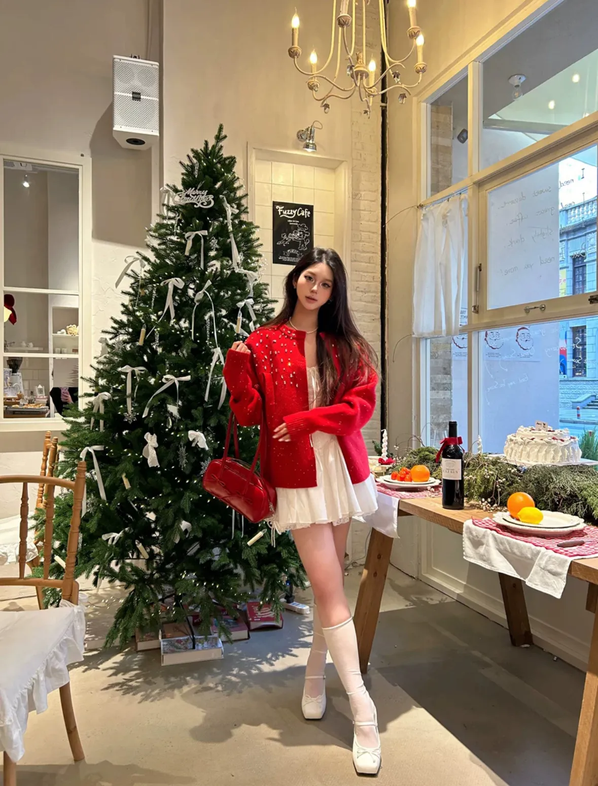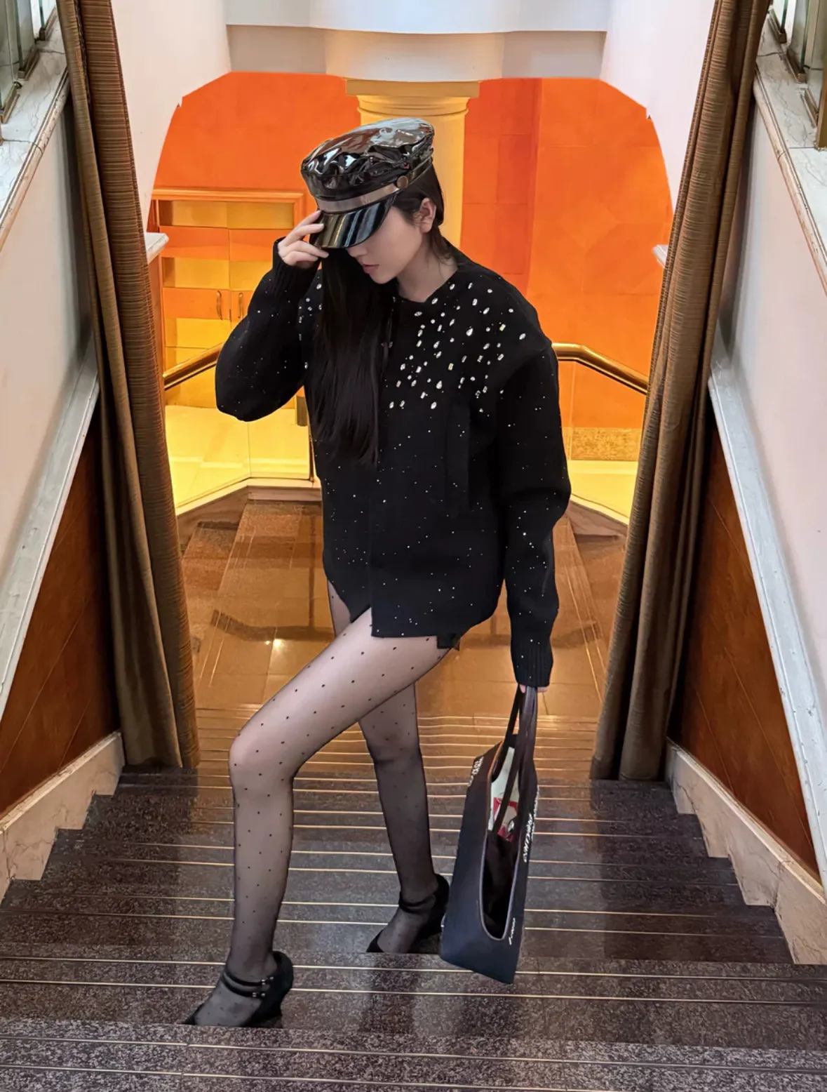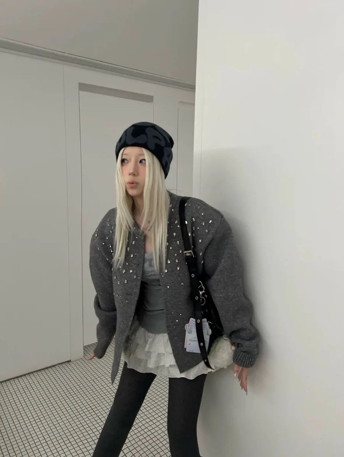 ARGUE 雪玉仙蹤 閃鑽 氛圍感 毛衣 外套(黑/白/灰/紅)