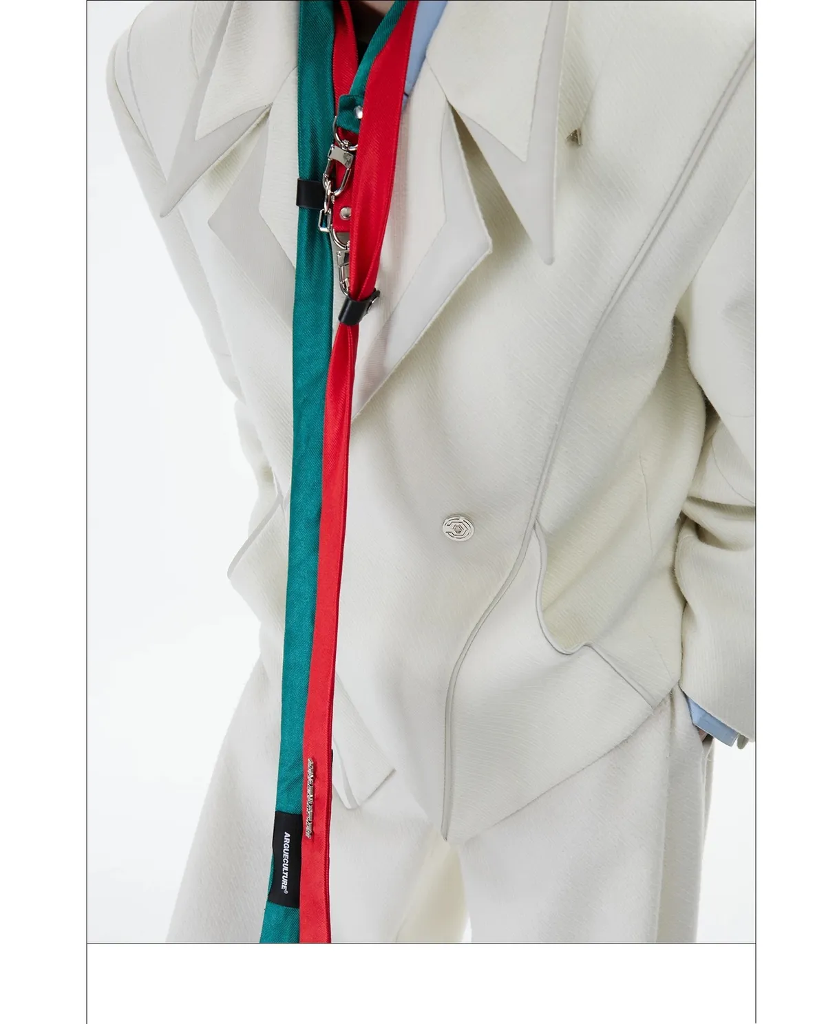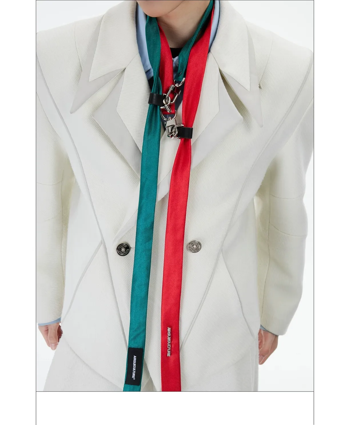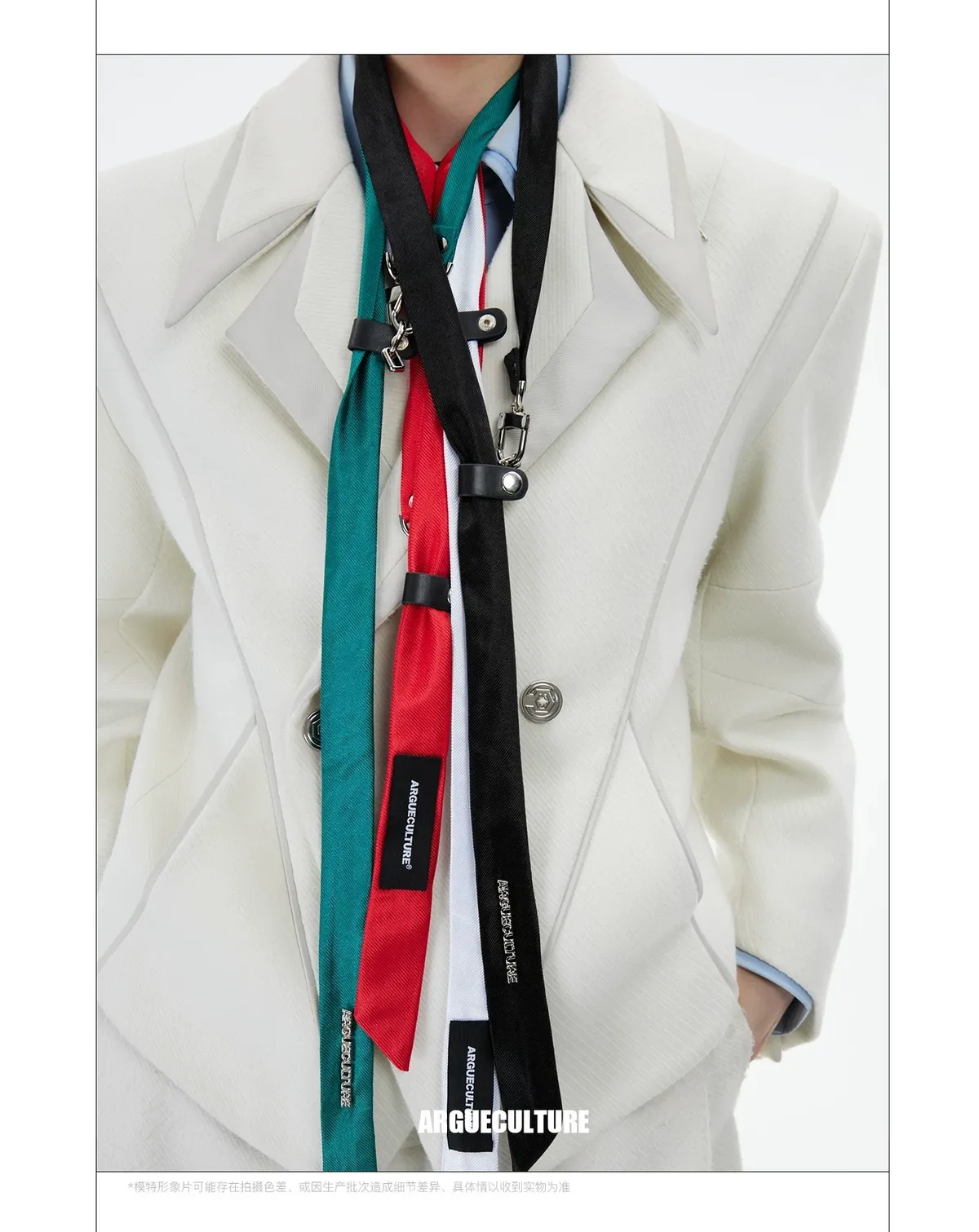 ARGUE 皮釦拼接 加長 領帶(黑/白/紅/綠)