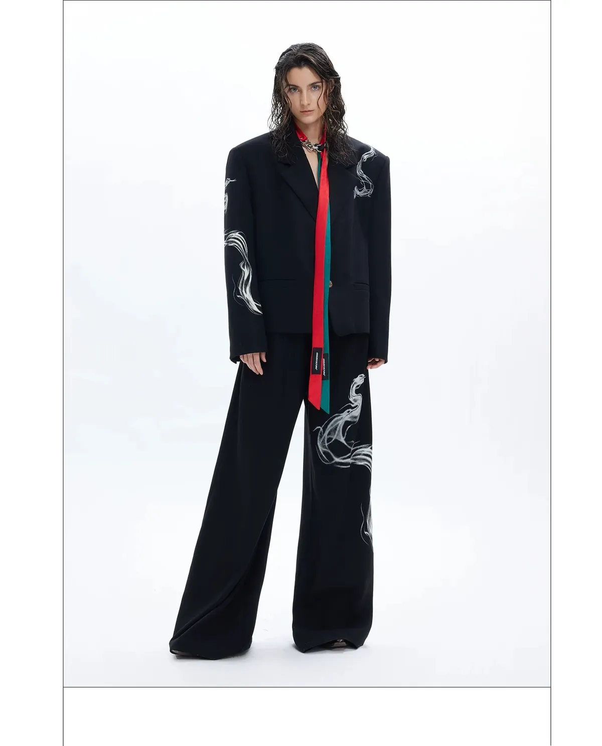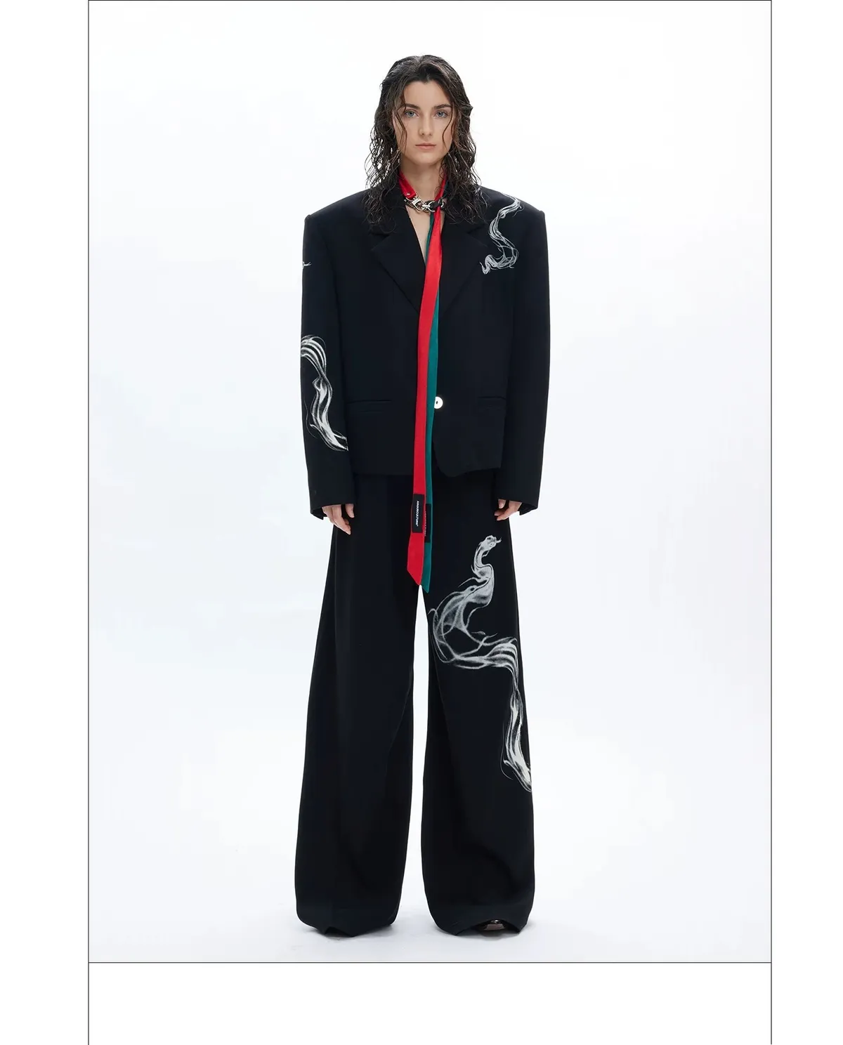 F4F 手繪藝術 抽象感 兔絨 披肩 雙色 圍巾(黑白色)