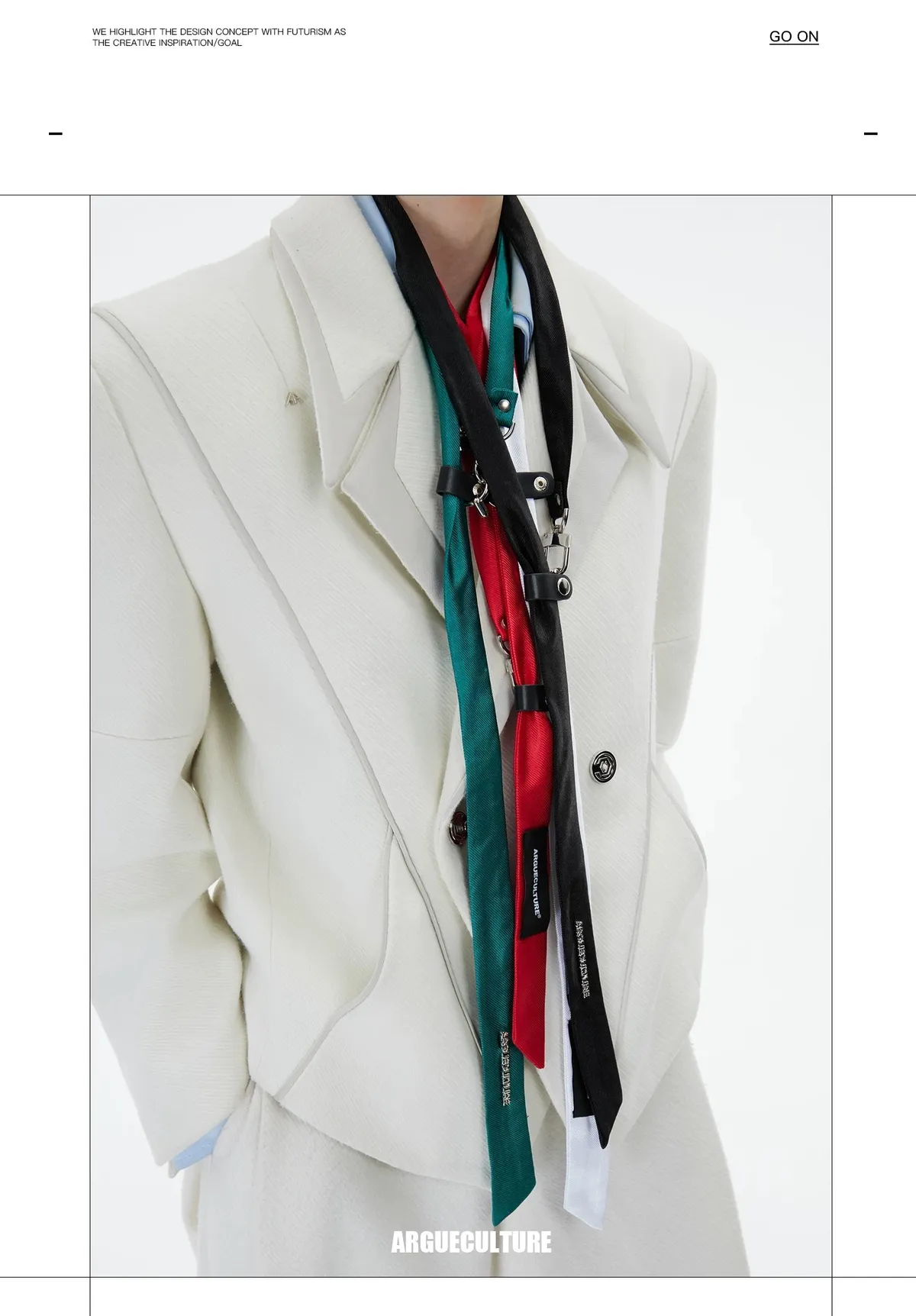 ARGUE 金屬卯釘 抽鬚 領帶(黑/白/紅)
