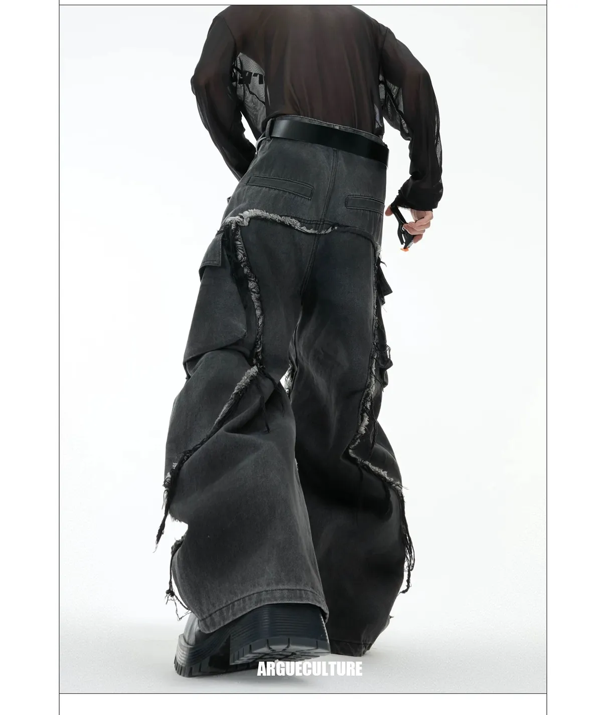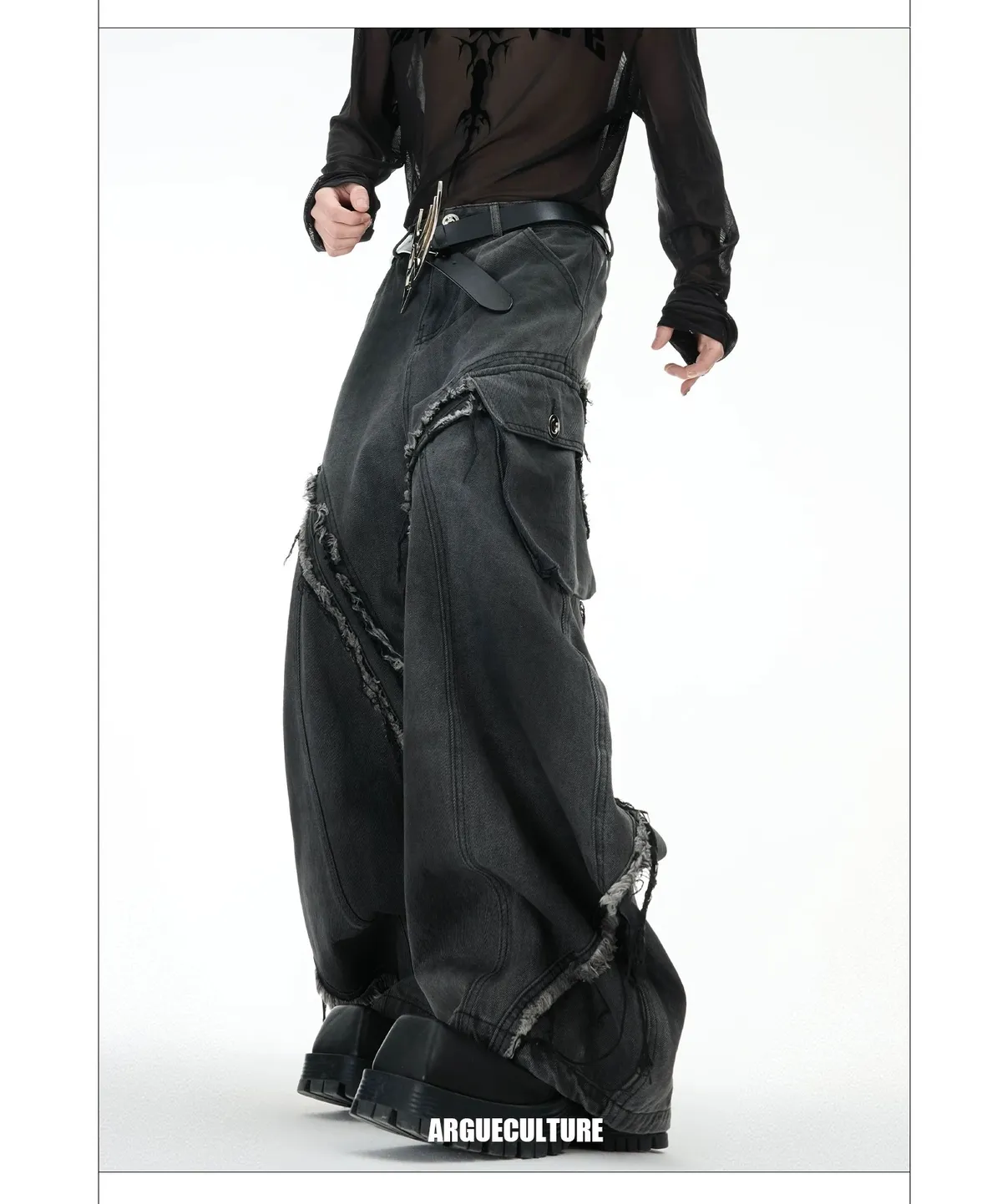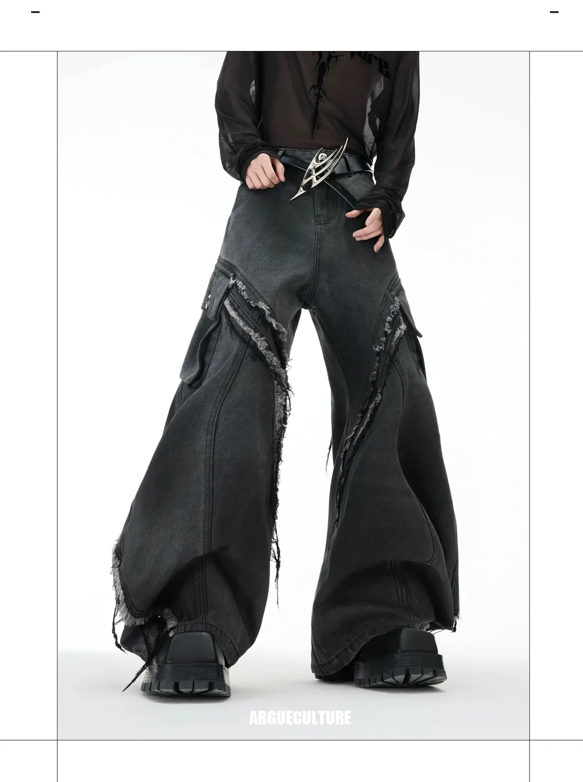 ARGUE 毛邊 廓形 彎刀 牛仔褲(黑色)