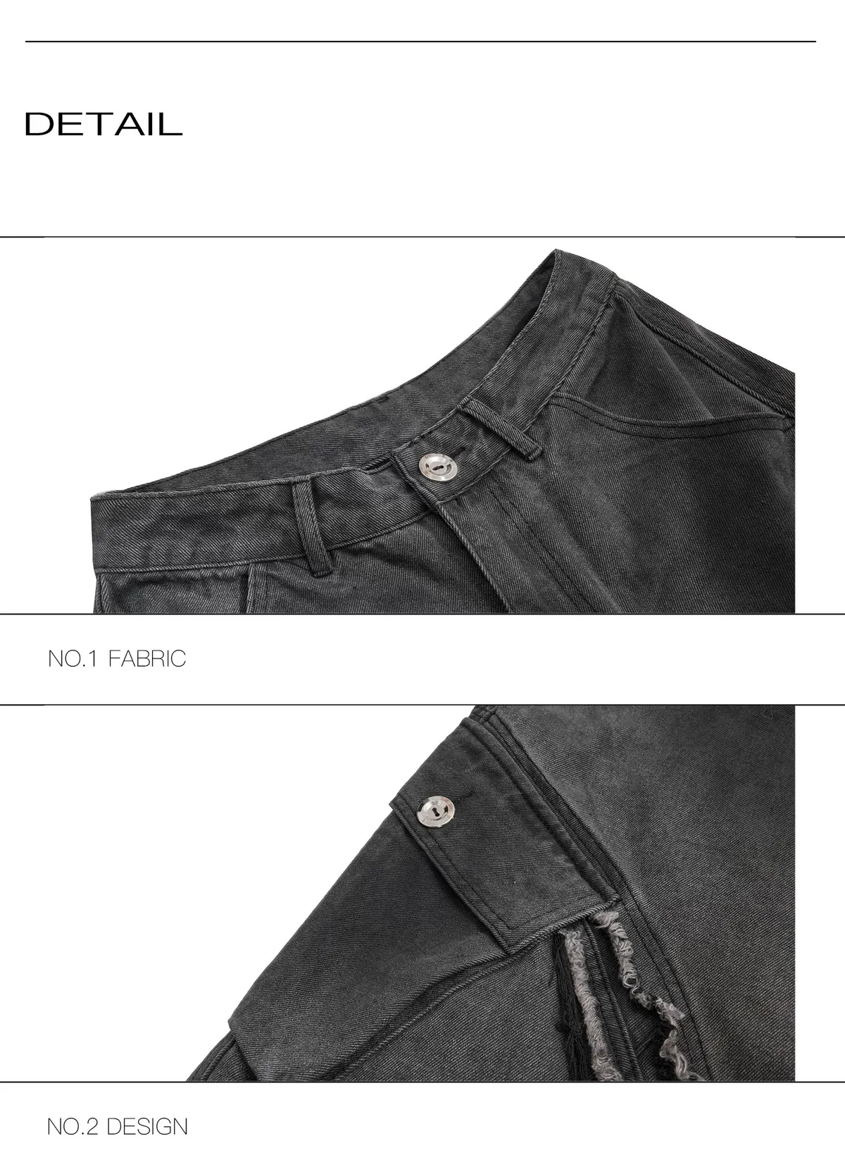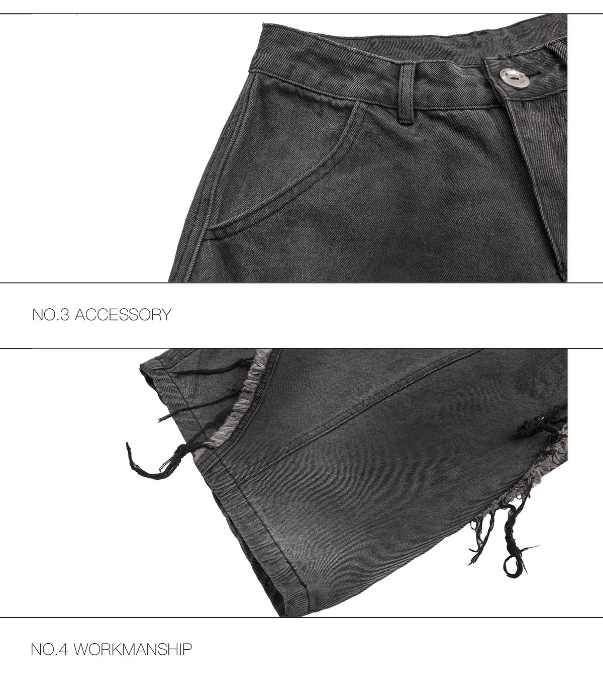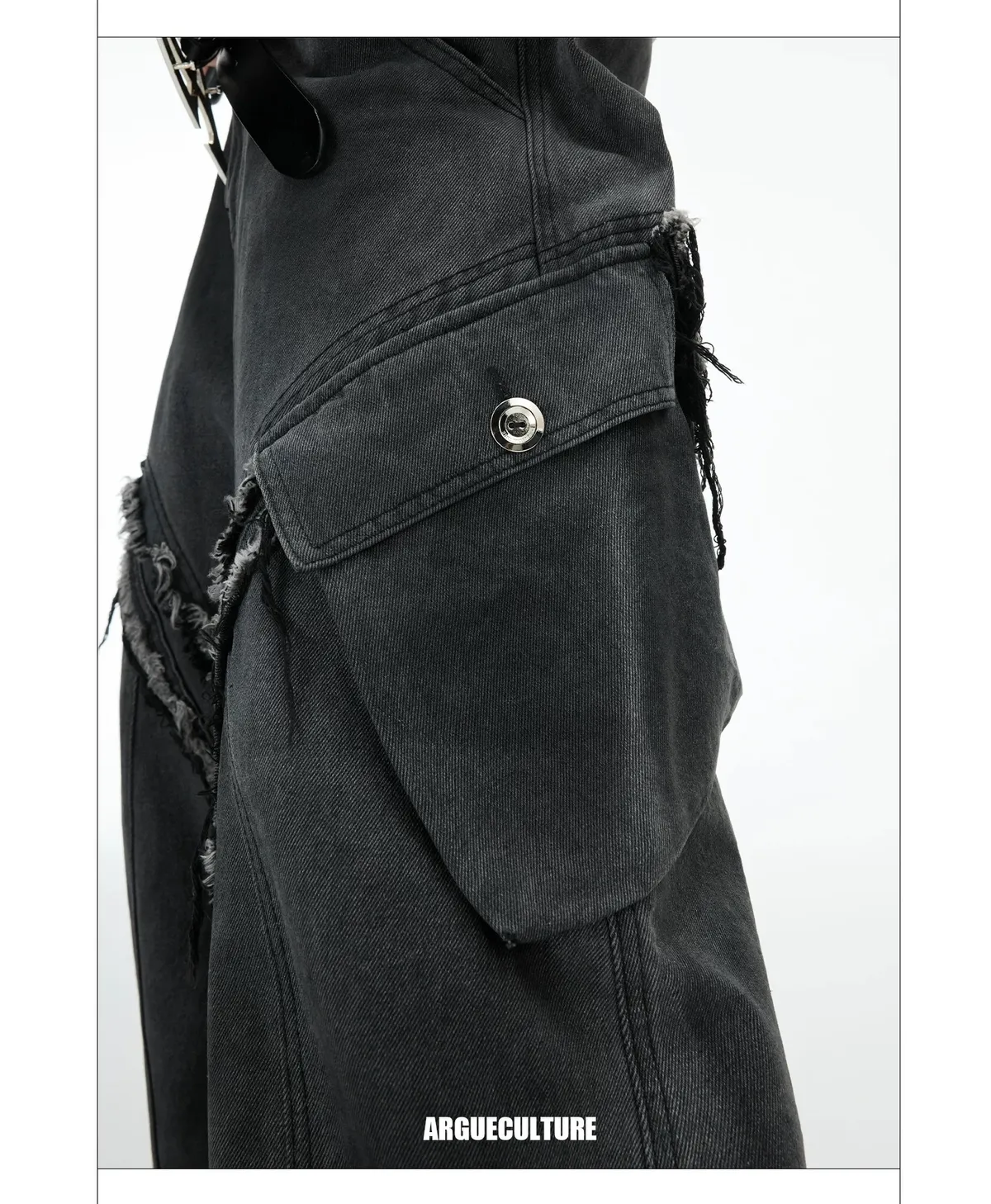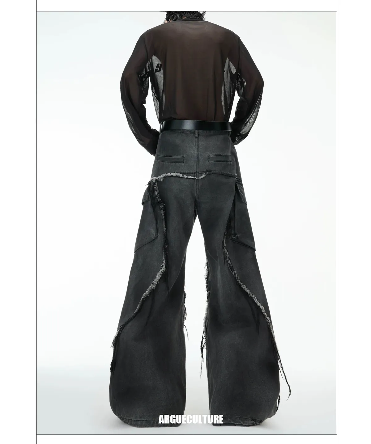 ARGUE 毛邊 廓形 彎刀 牛仔褲(黑色)