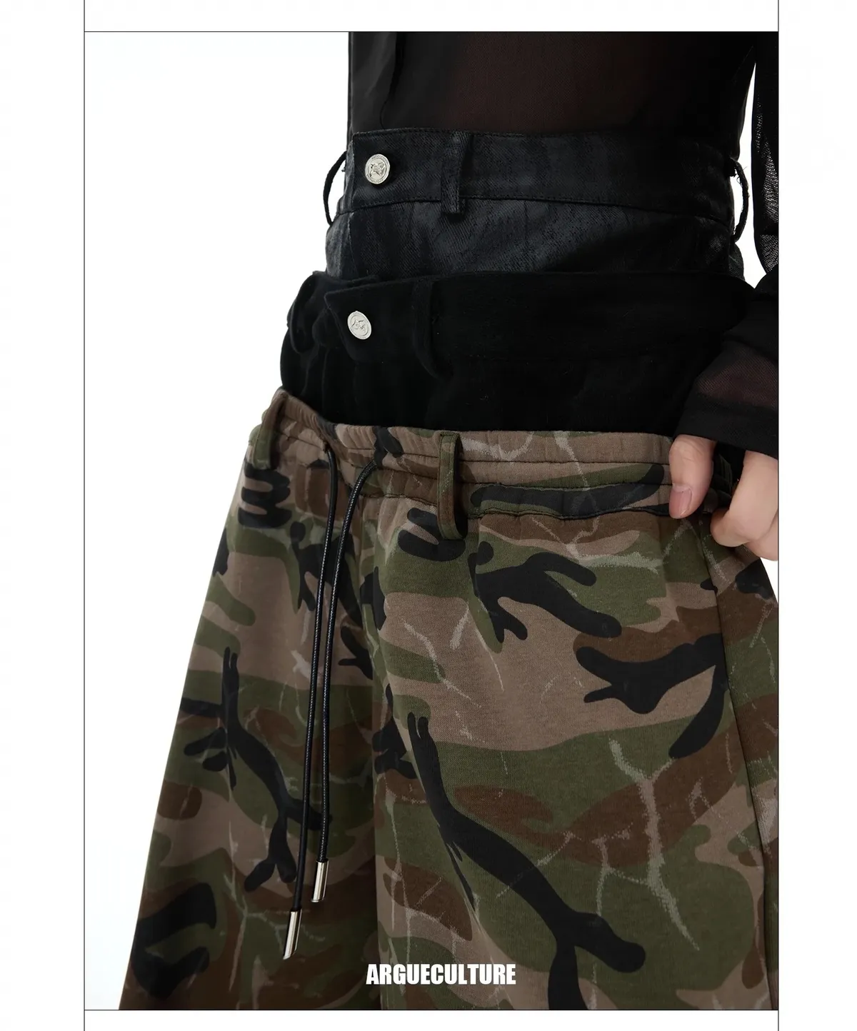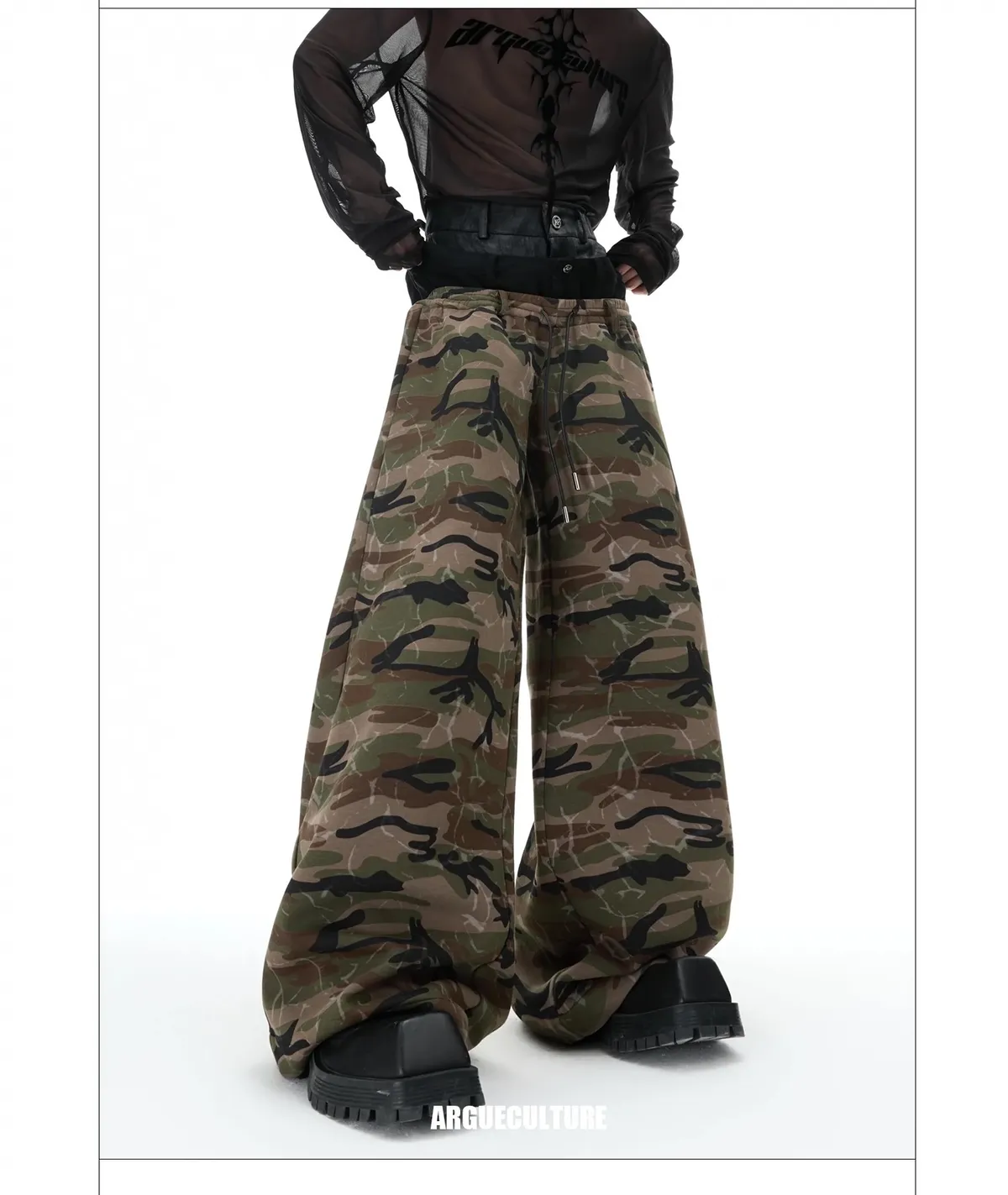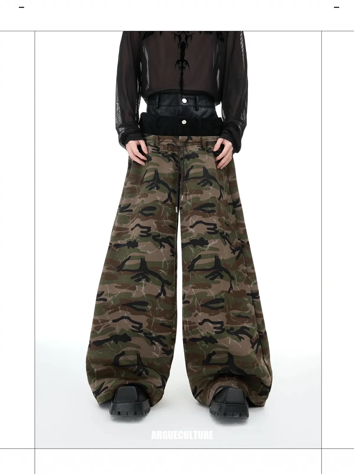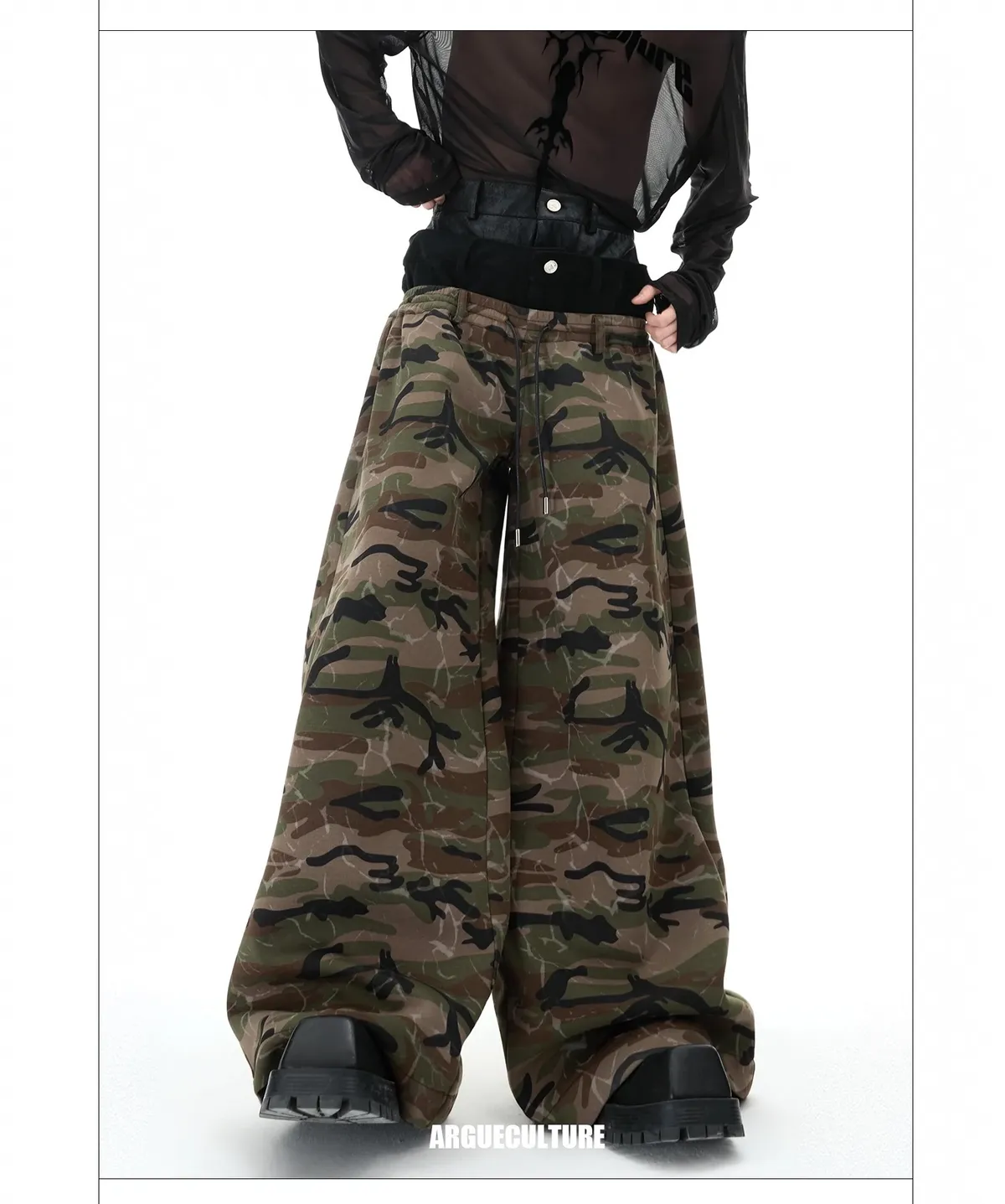 ARGUE 三層褲頭 闊腿 迷彩 長褲(迷彩)