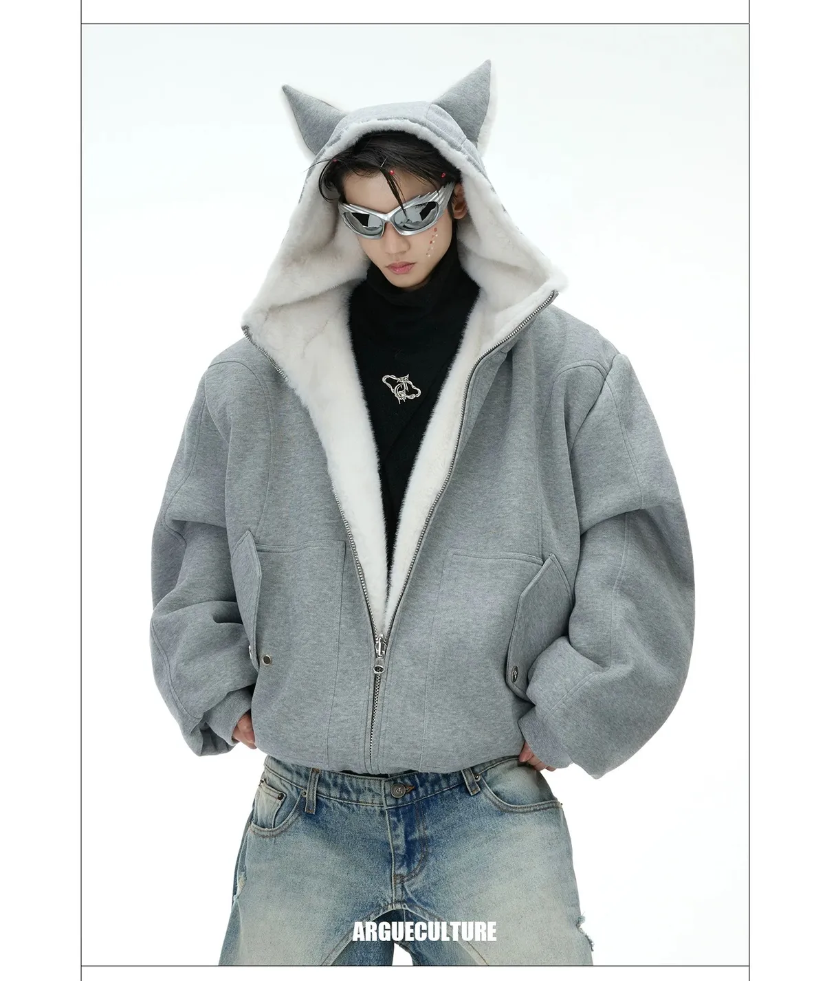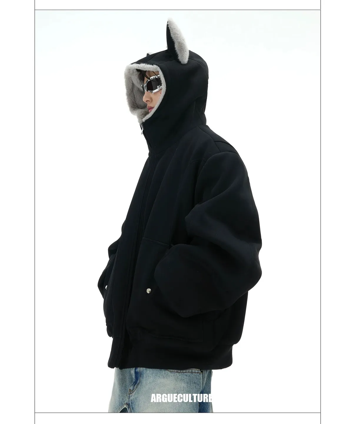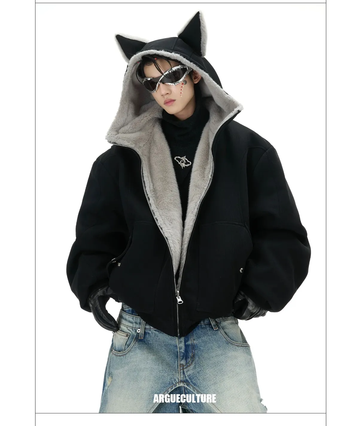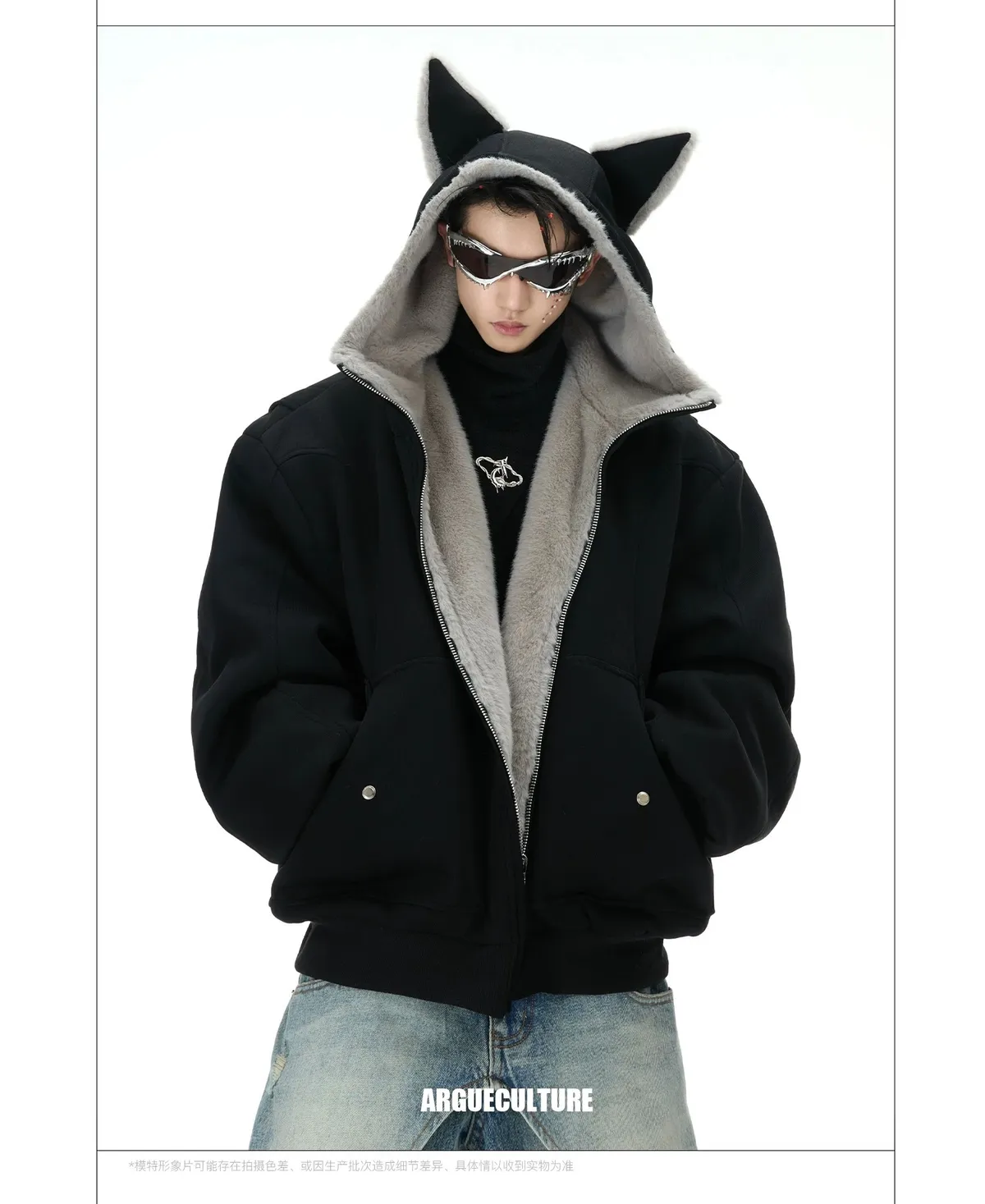 ARGUE 貓耳 毛絨雙面穿 外套(黑/灰)