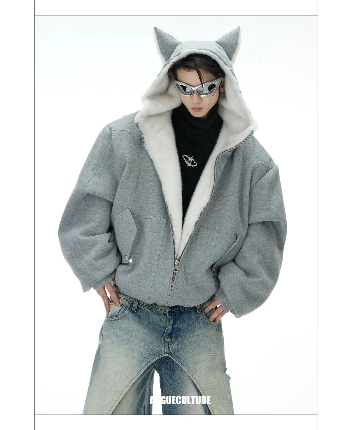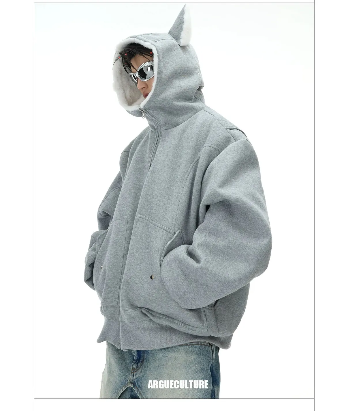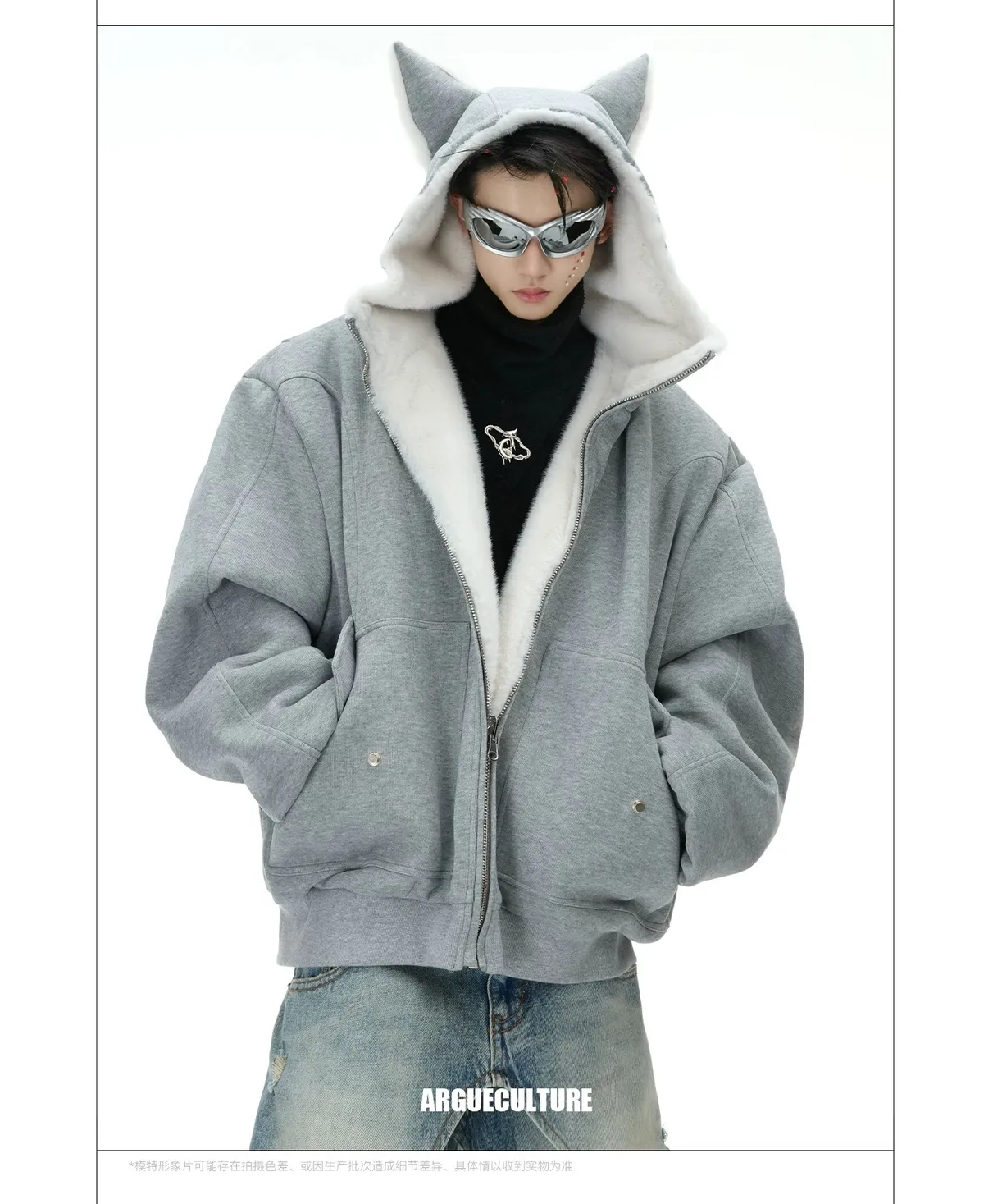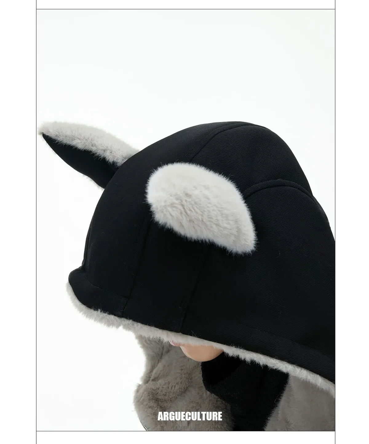 ARGUE 貓耳 毛絨雙面穿 外套(黑/灰)