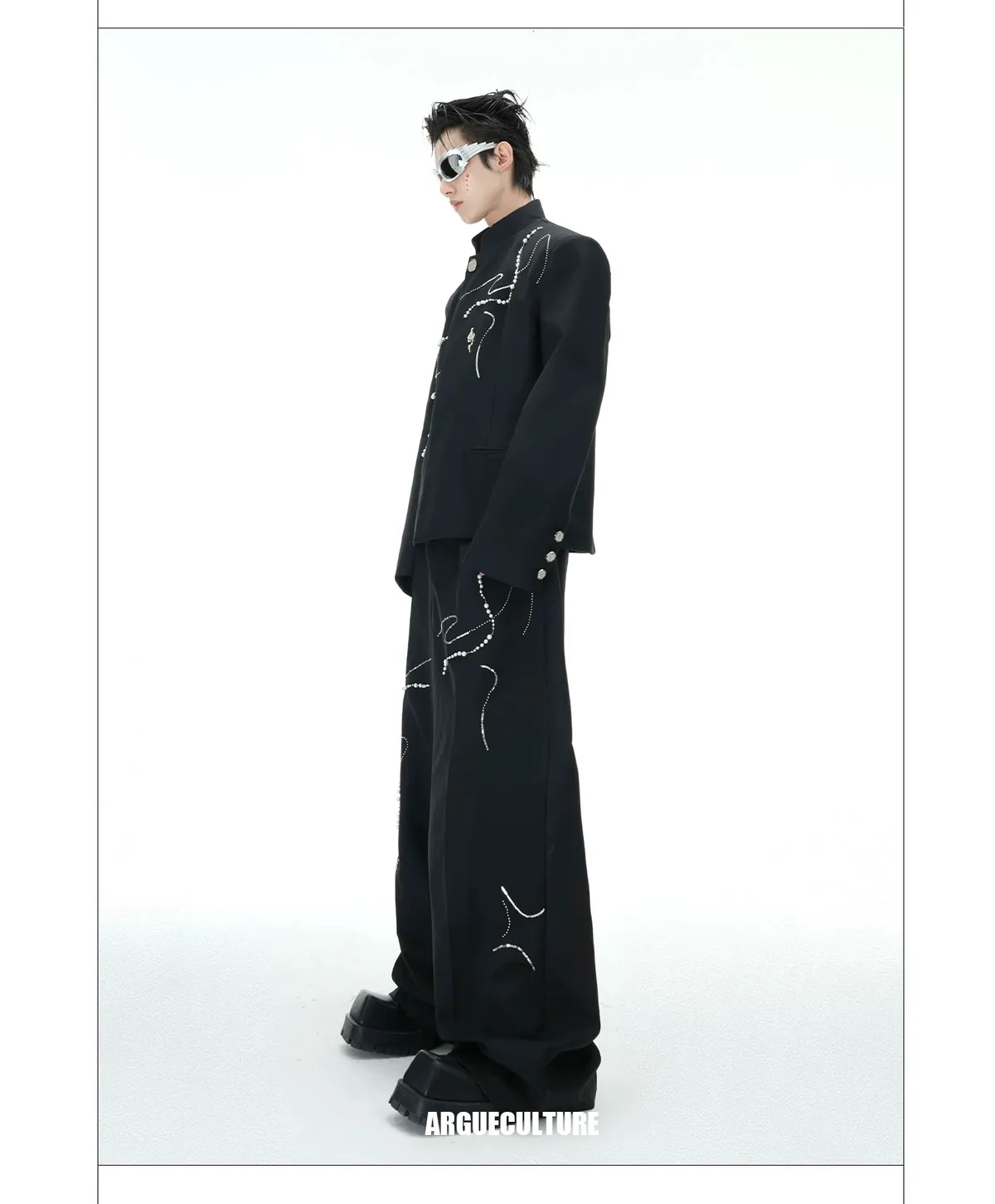 ARGUE 解構 微喇叭 金屬鍊條 長褲 西裝褲(黑色)