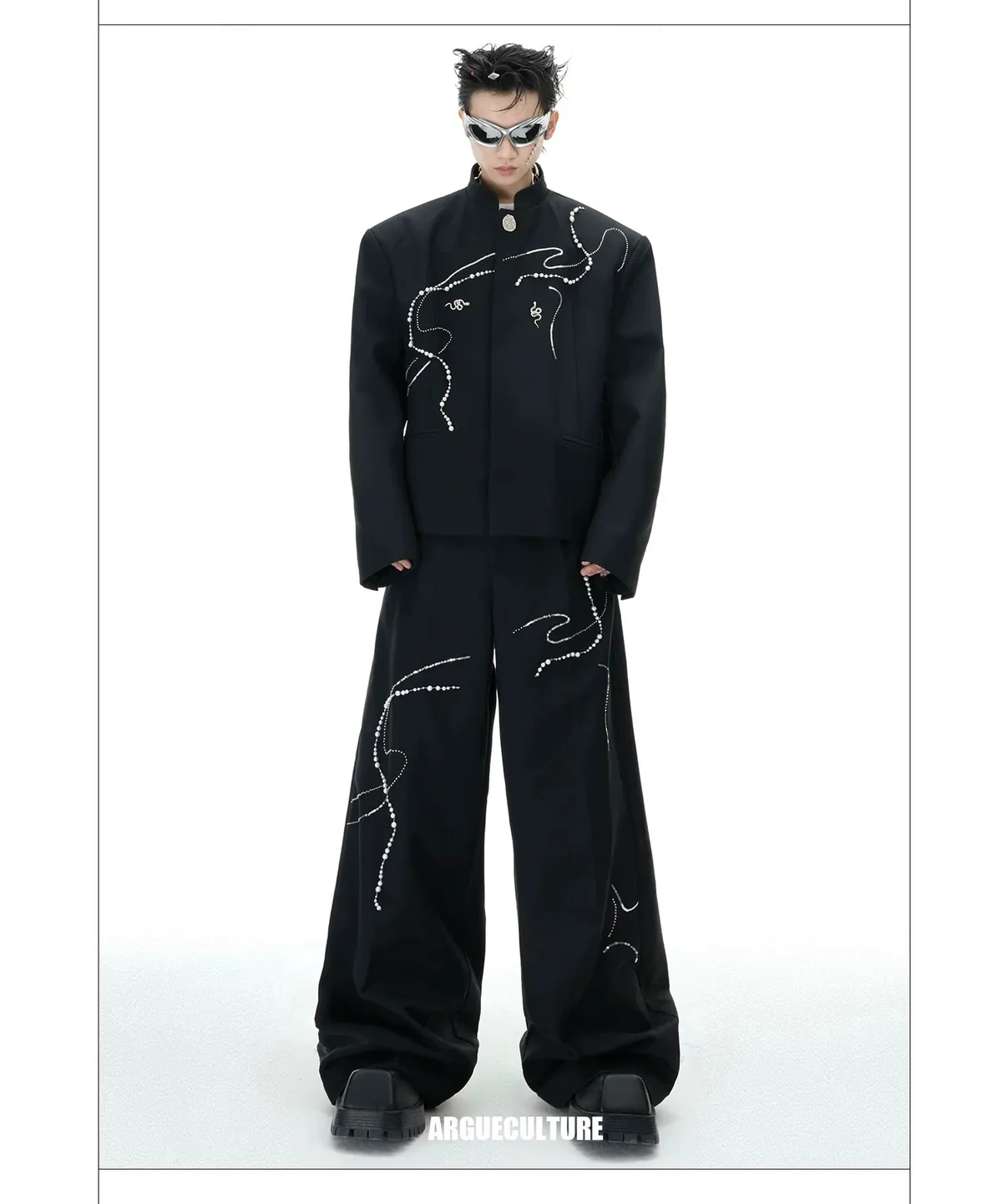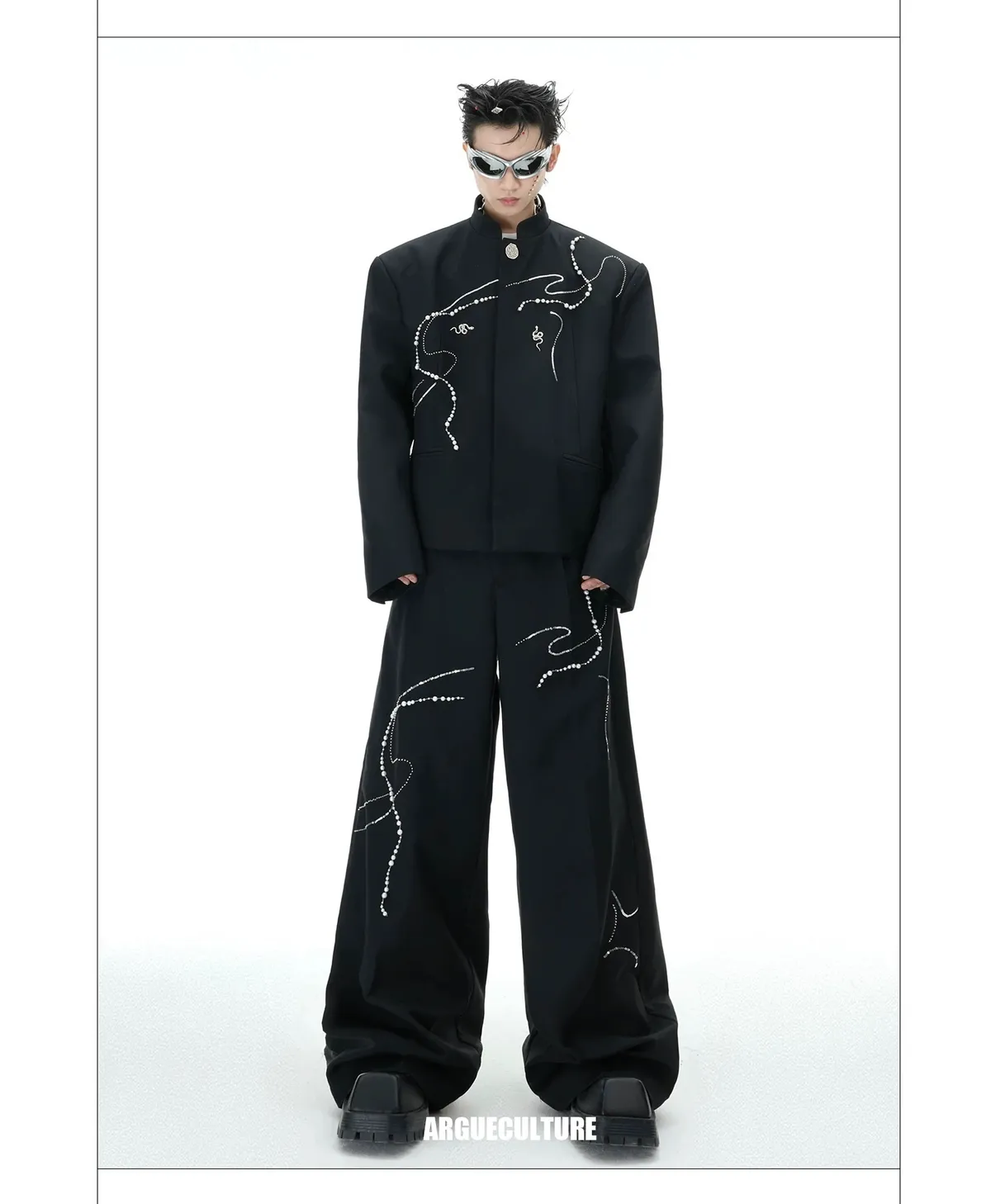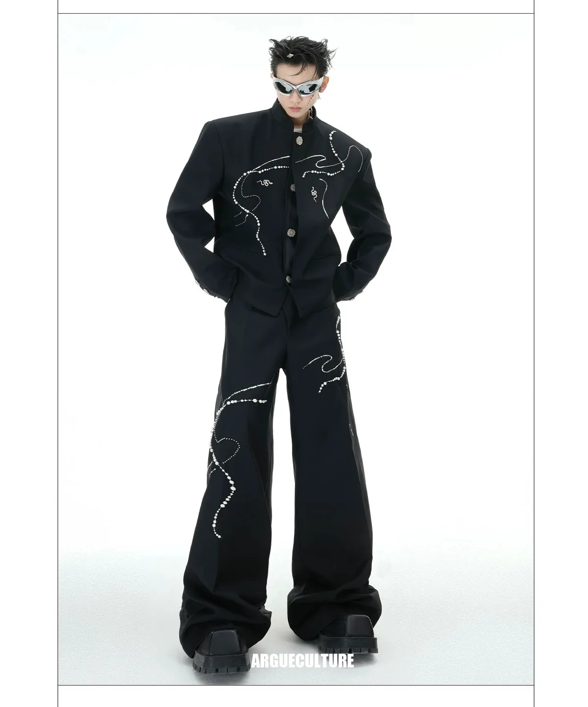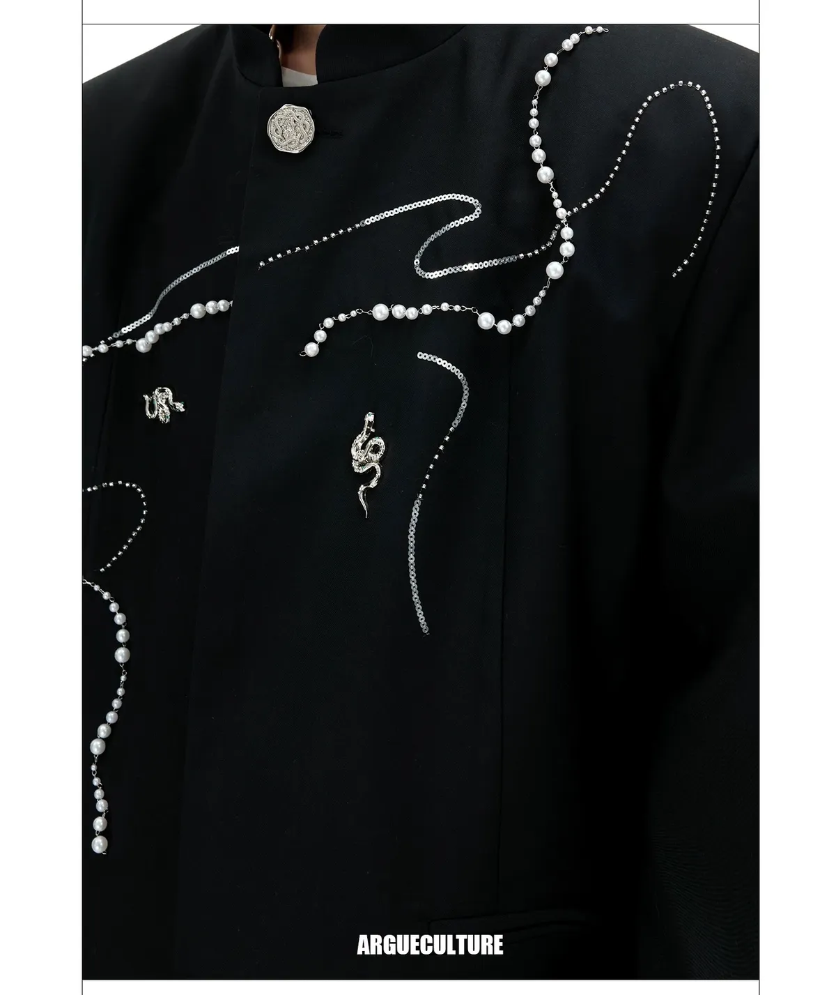 ARGUE 新中式 蛇年 珍珠 西裝外套 西裝褲 套裝(黑色)