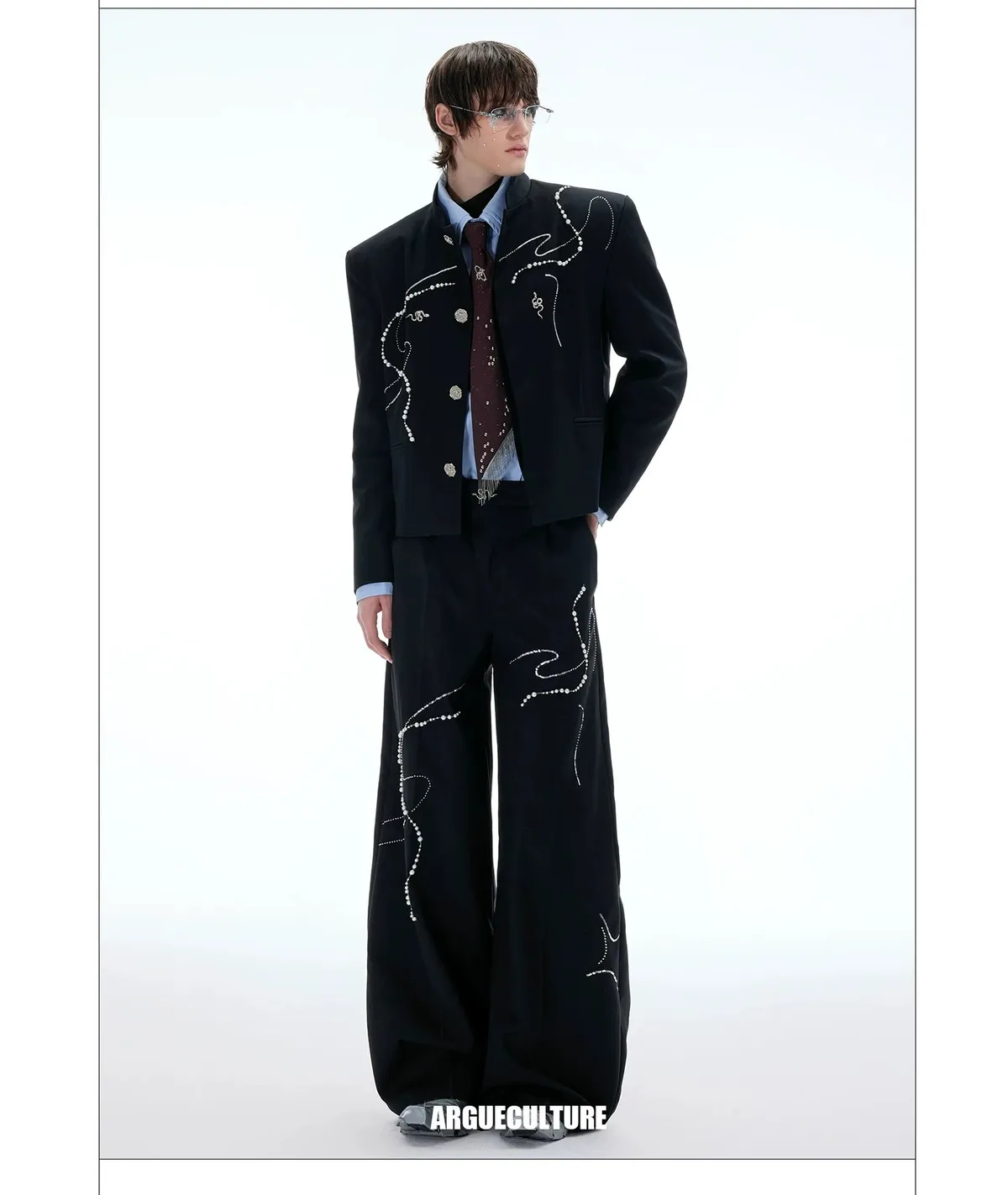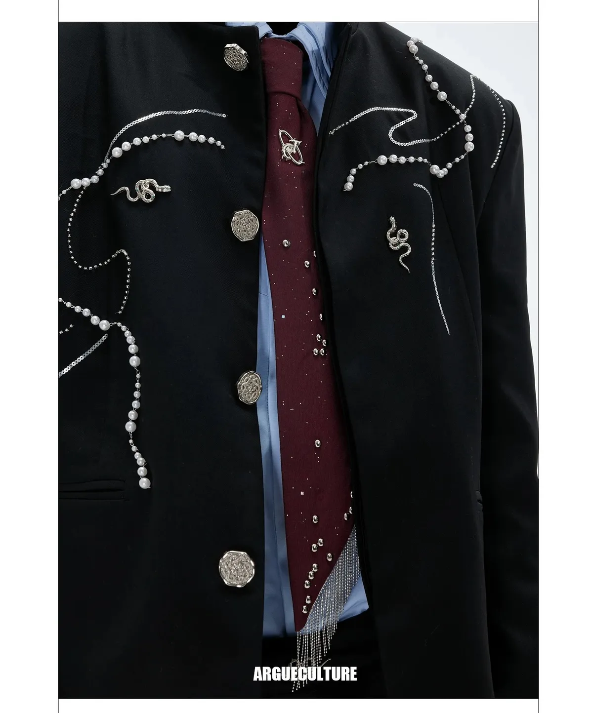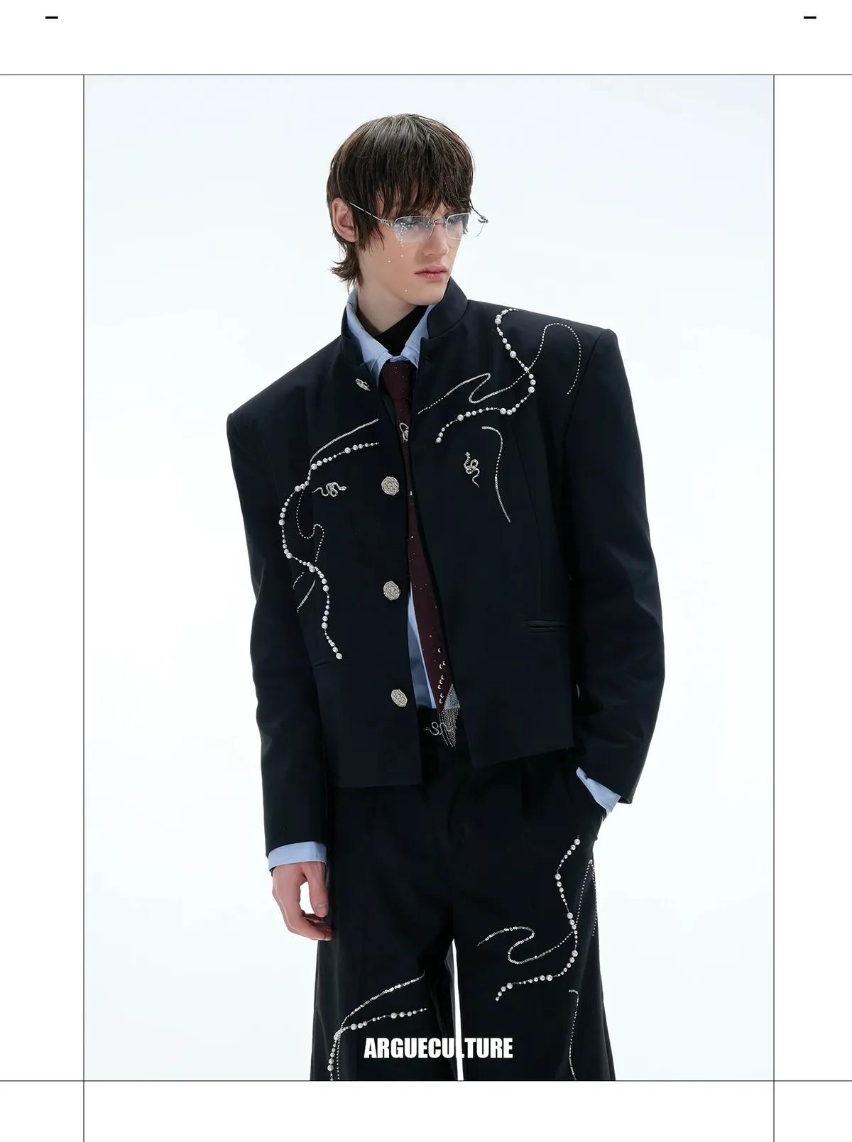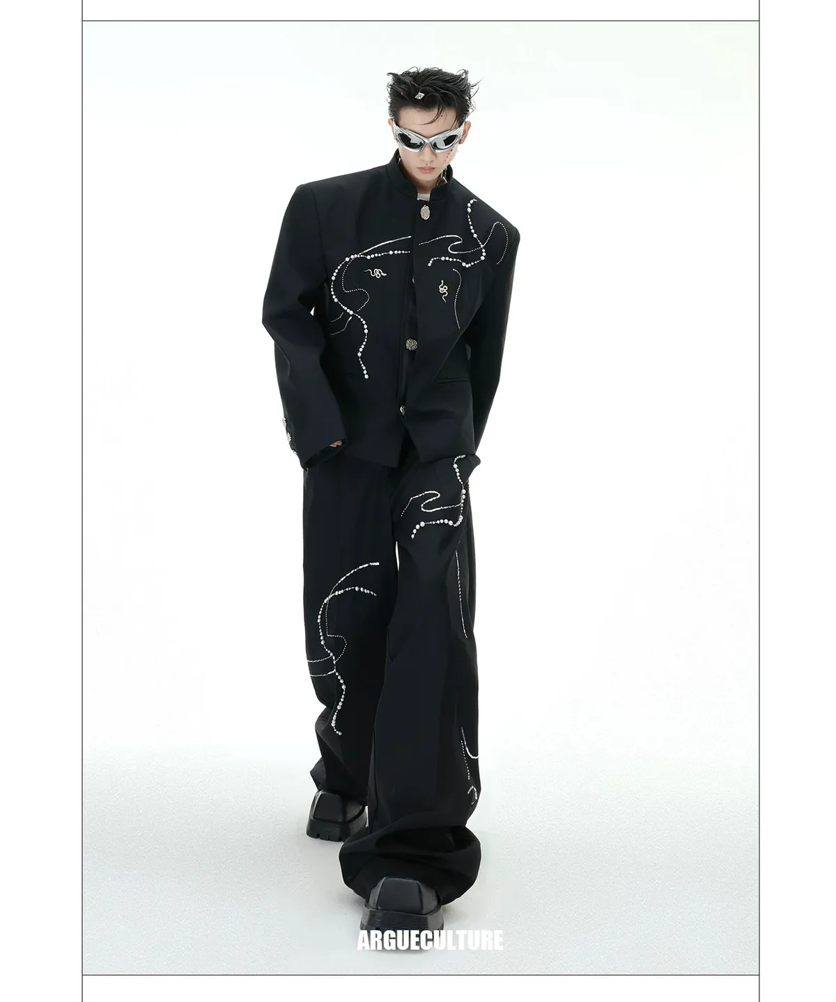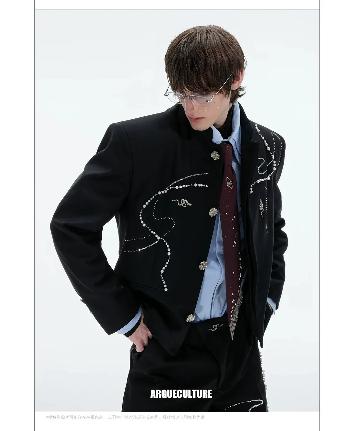 ARGUE 新中式 蛇年 珍珠 西裝外套 西裝褲 套裝(黑色)