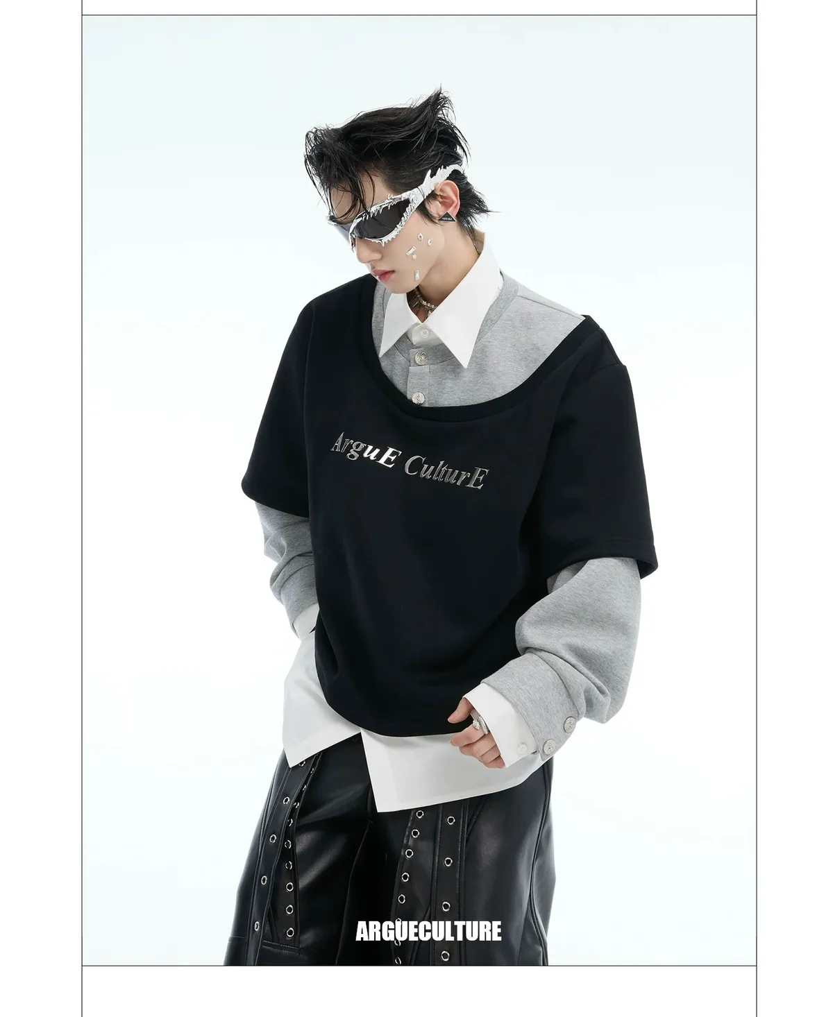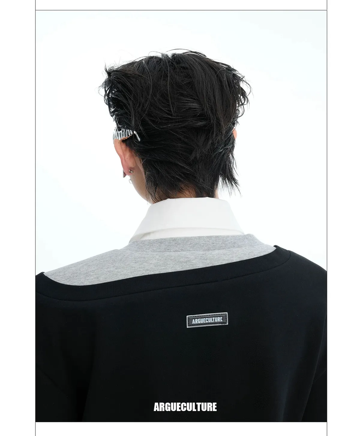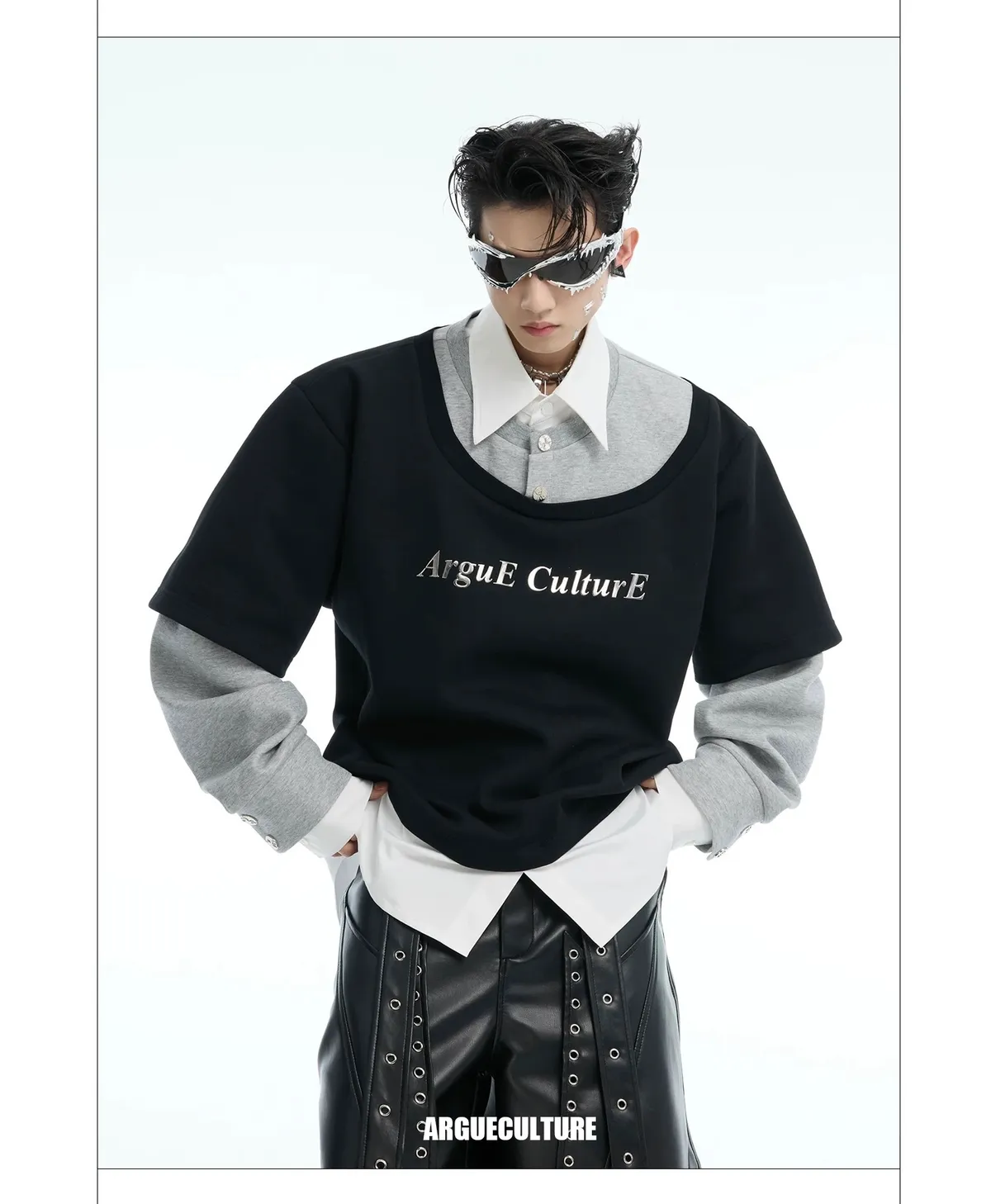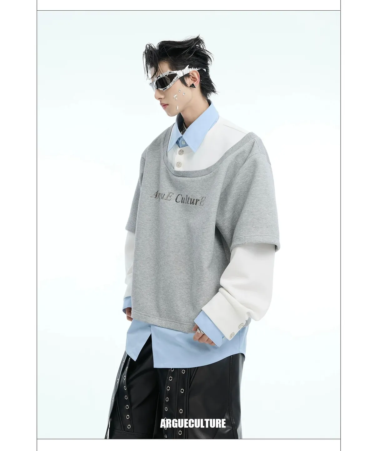 ARGUE 假三件層次 拼接 長袖(黑/灰)