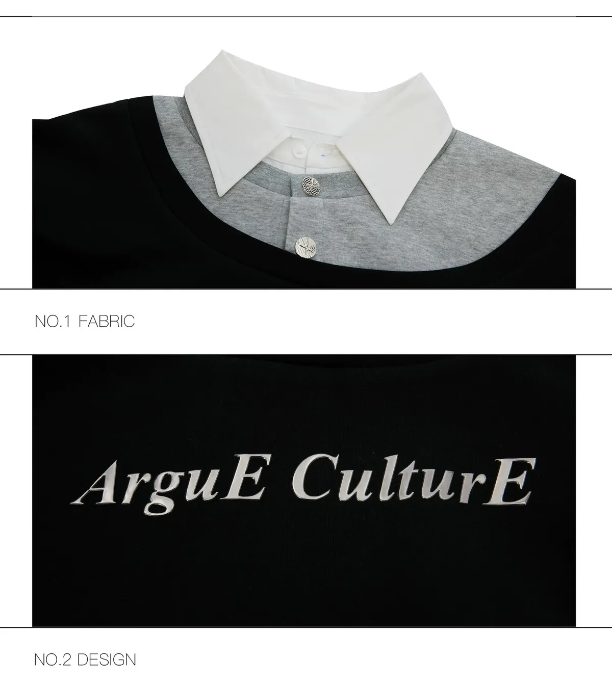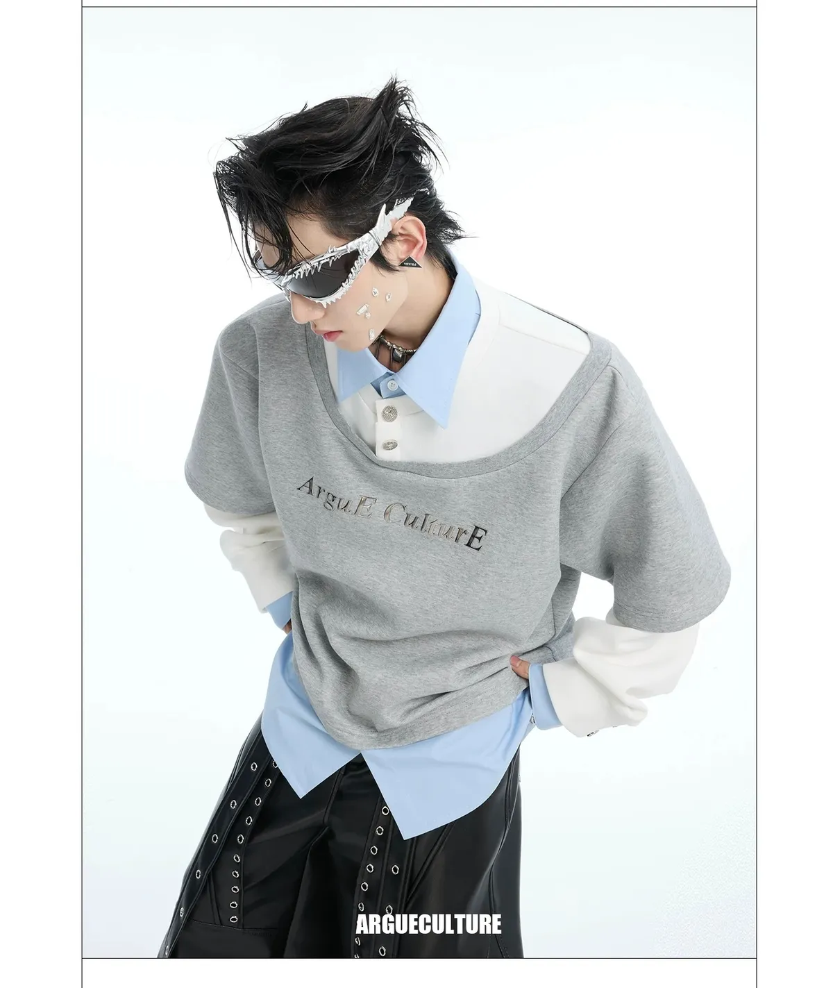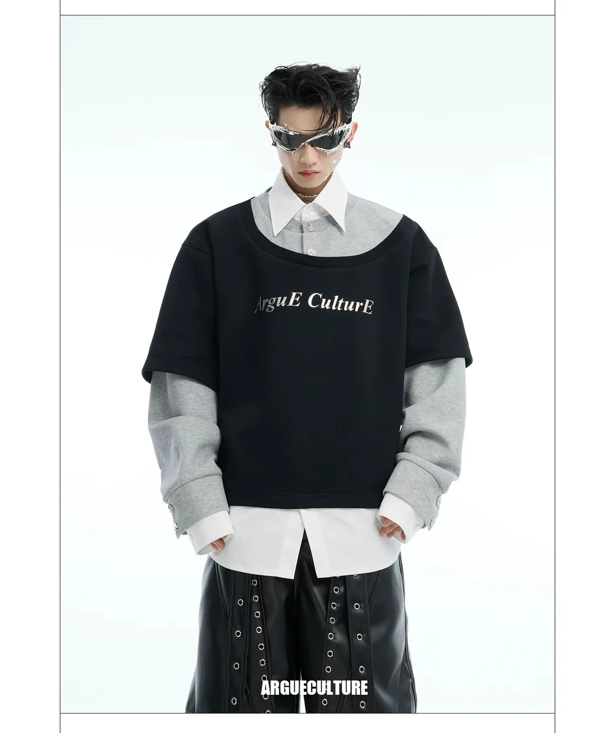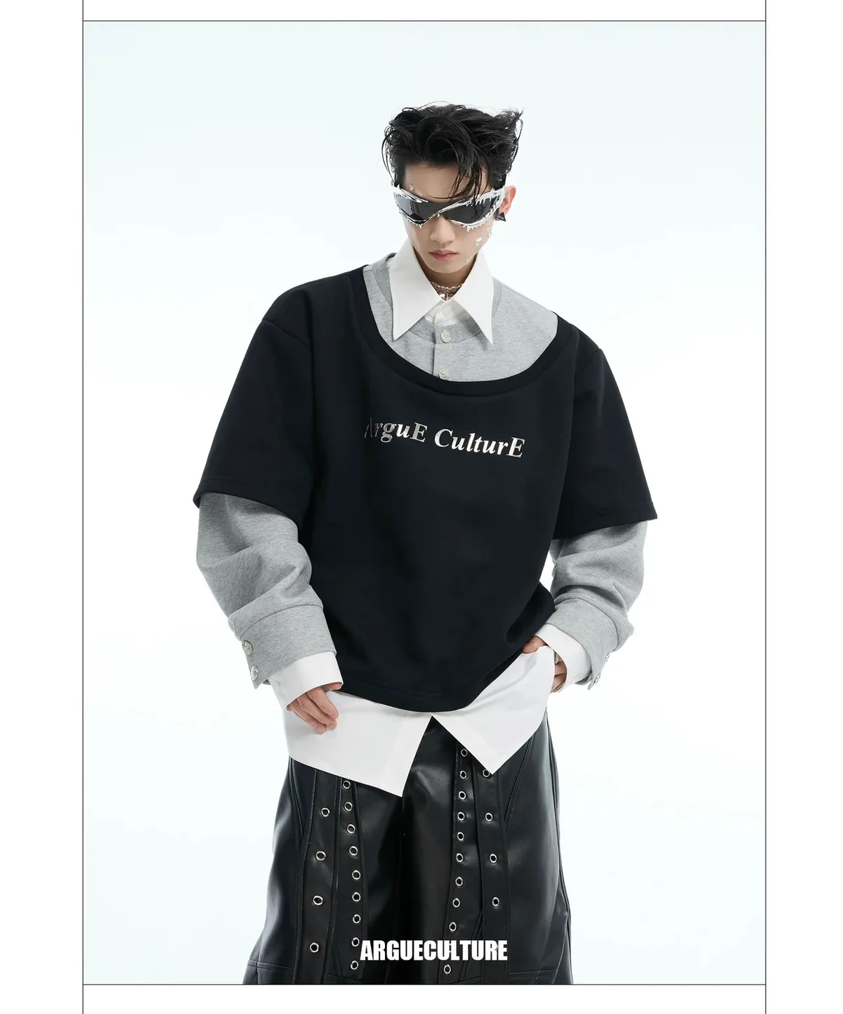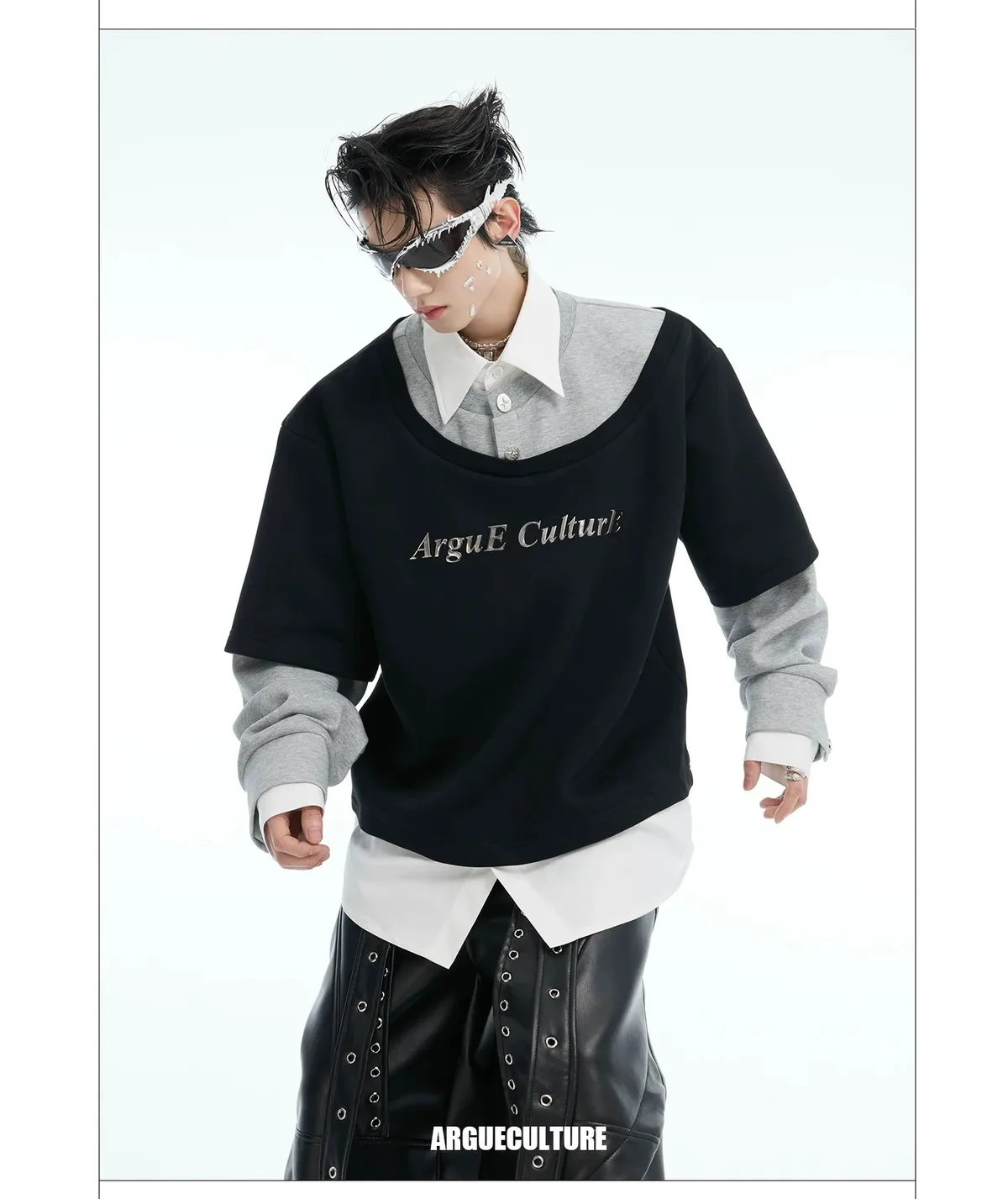 ARGUE 假三件層次 拼接 長袖(黑/灰)