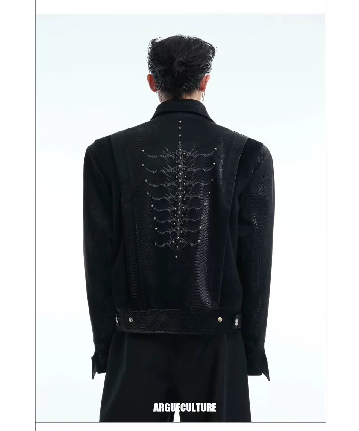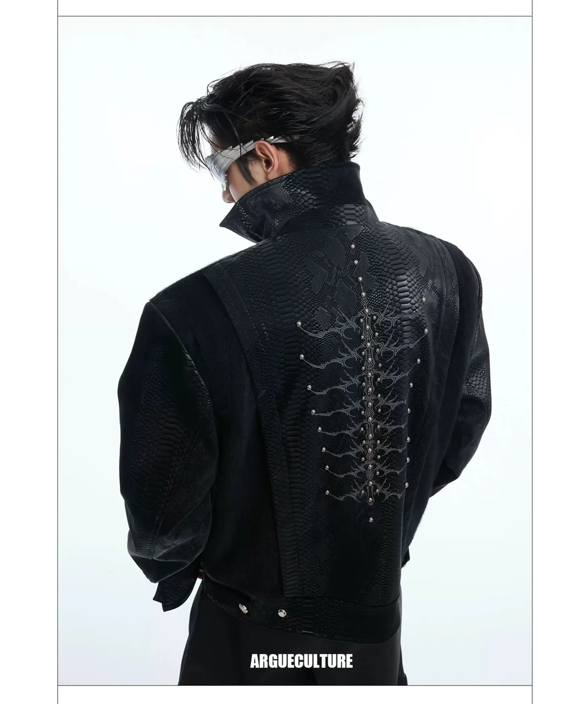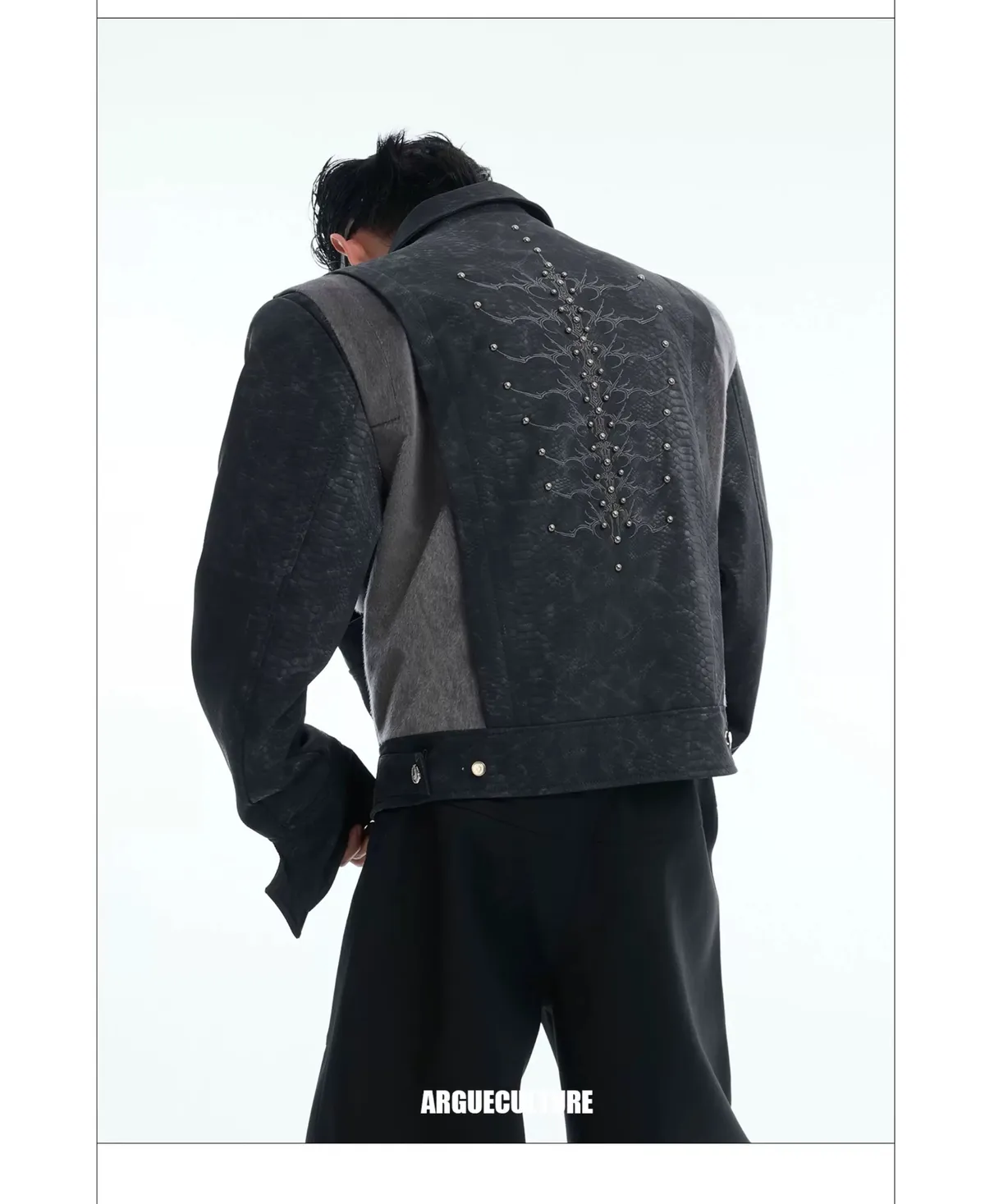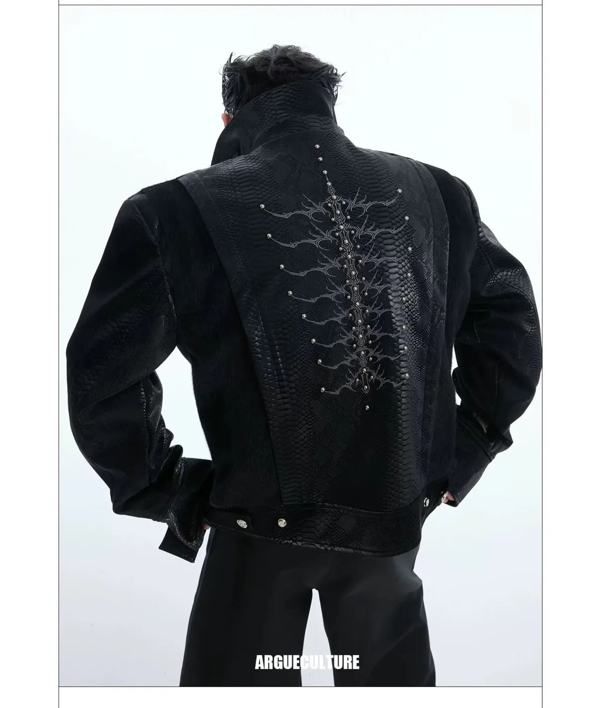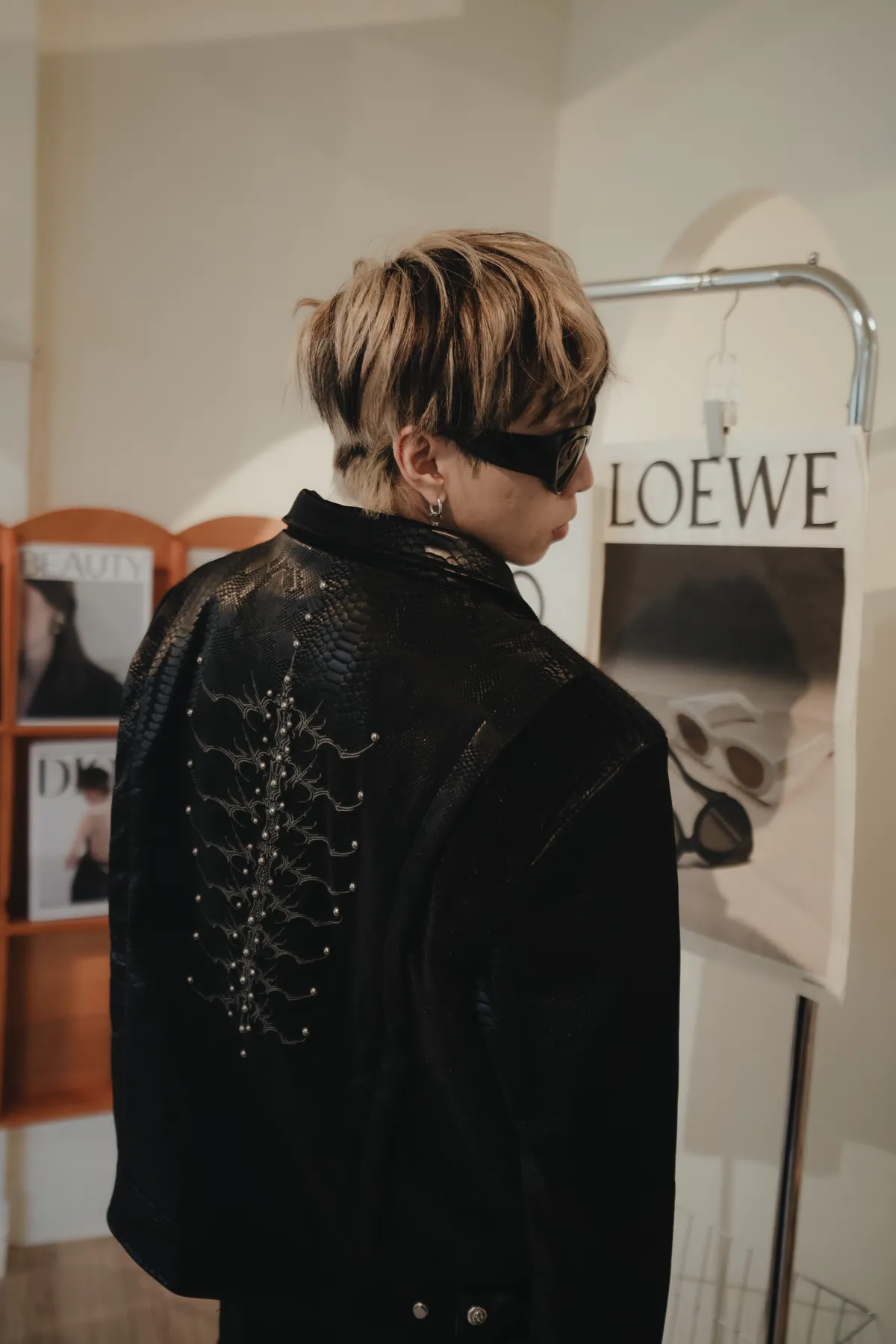 ARGUE 本期必收 蛇瞳脊骨 蛇紋麂皮 卯釘 外套(黑/灰)