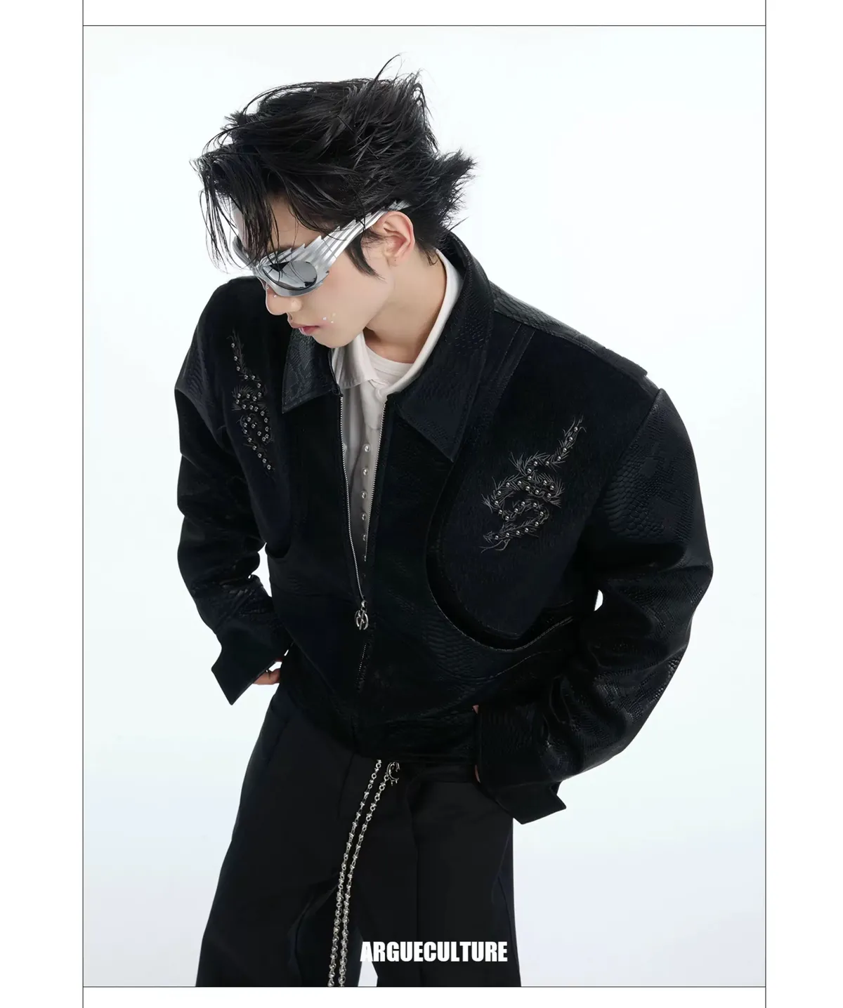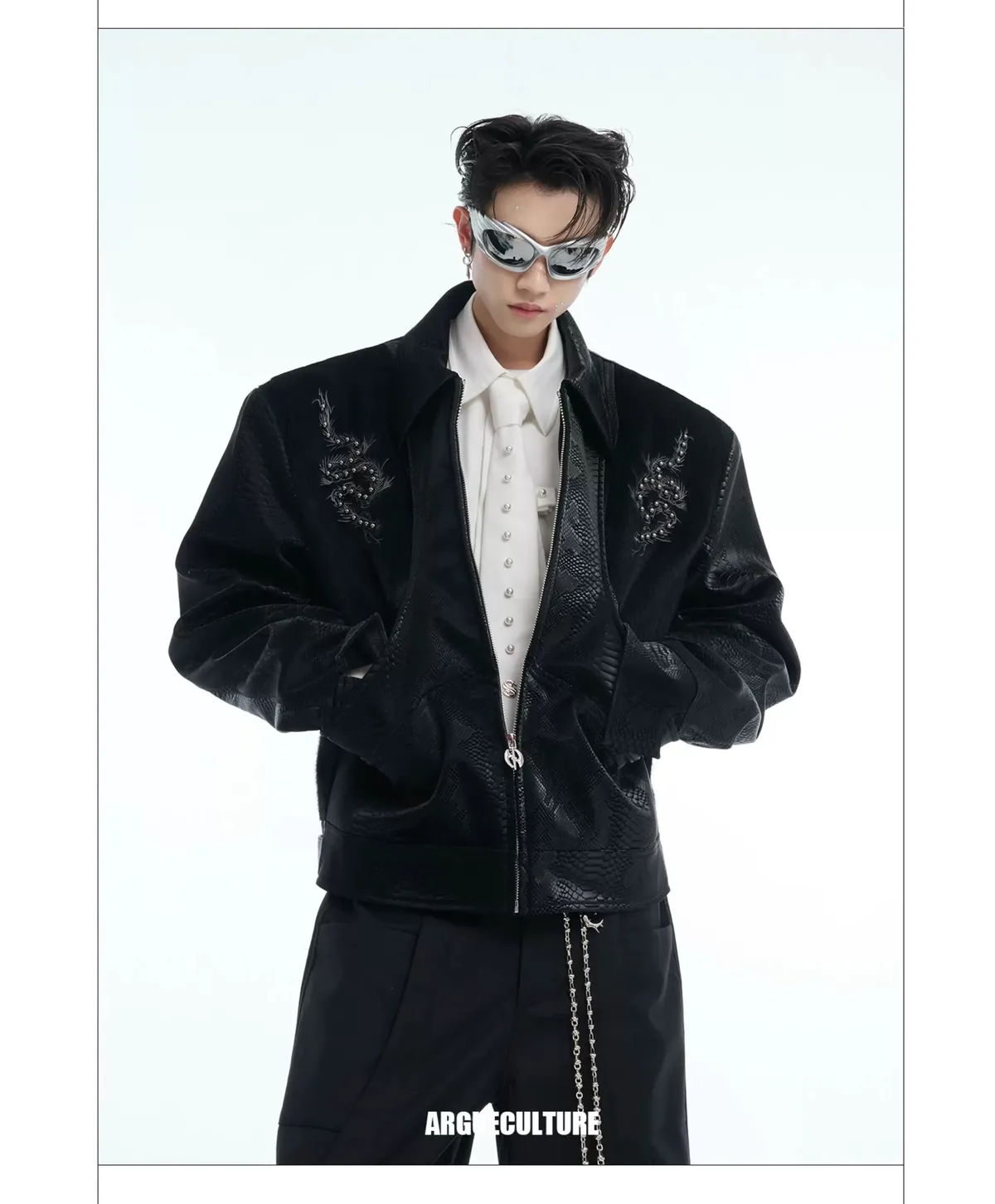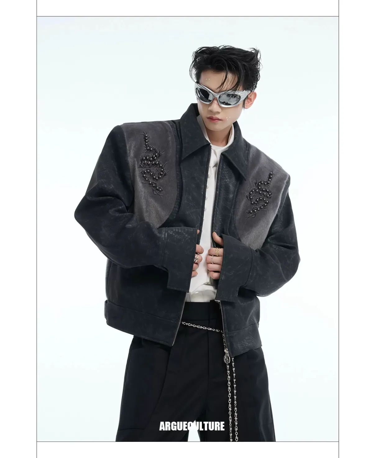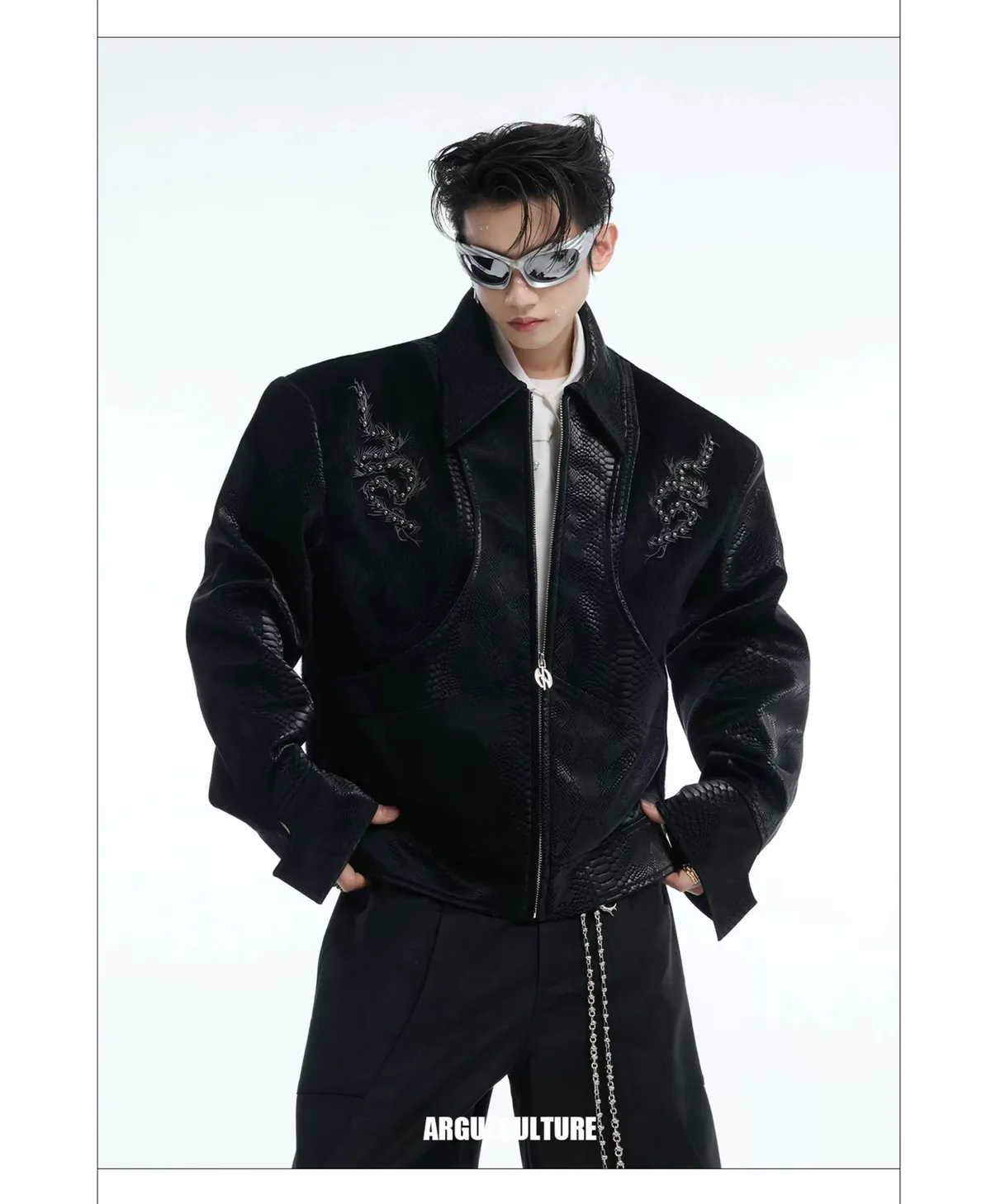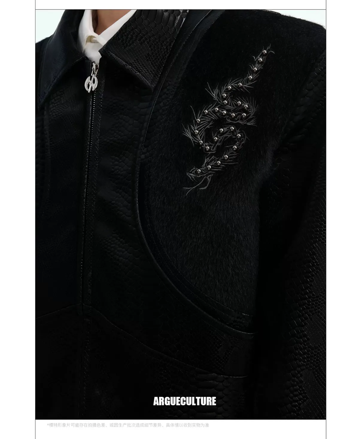 ARGUE 本期必收 蛇瞳脊骨 蛇紋麂皮 卯釘 外套(黑/灰)