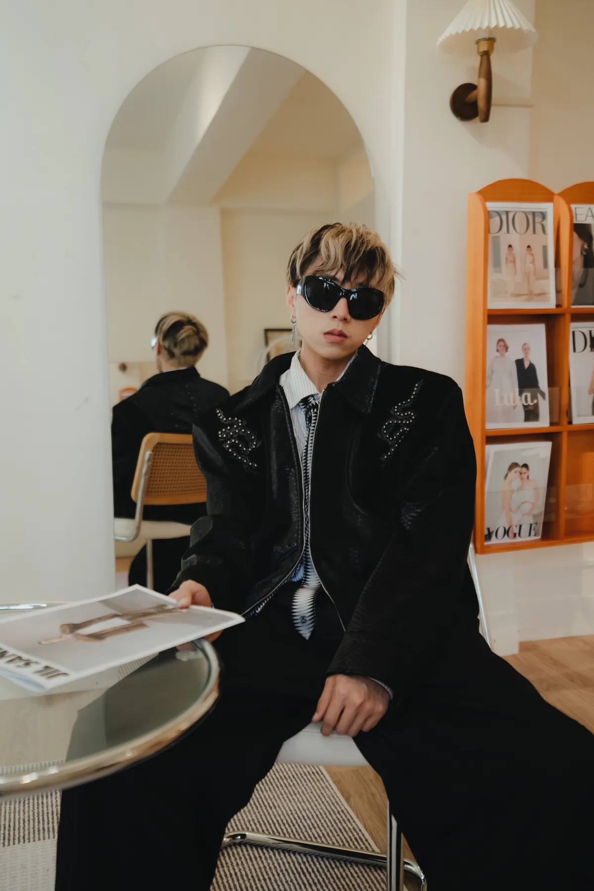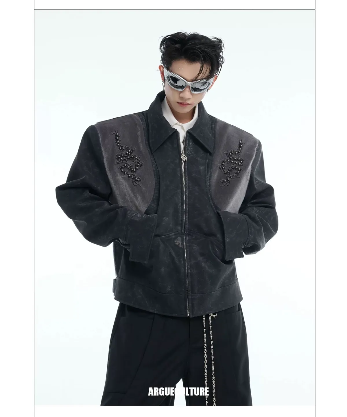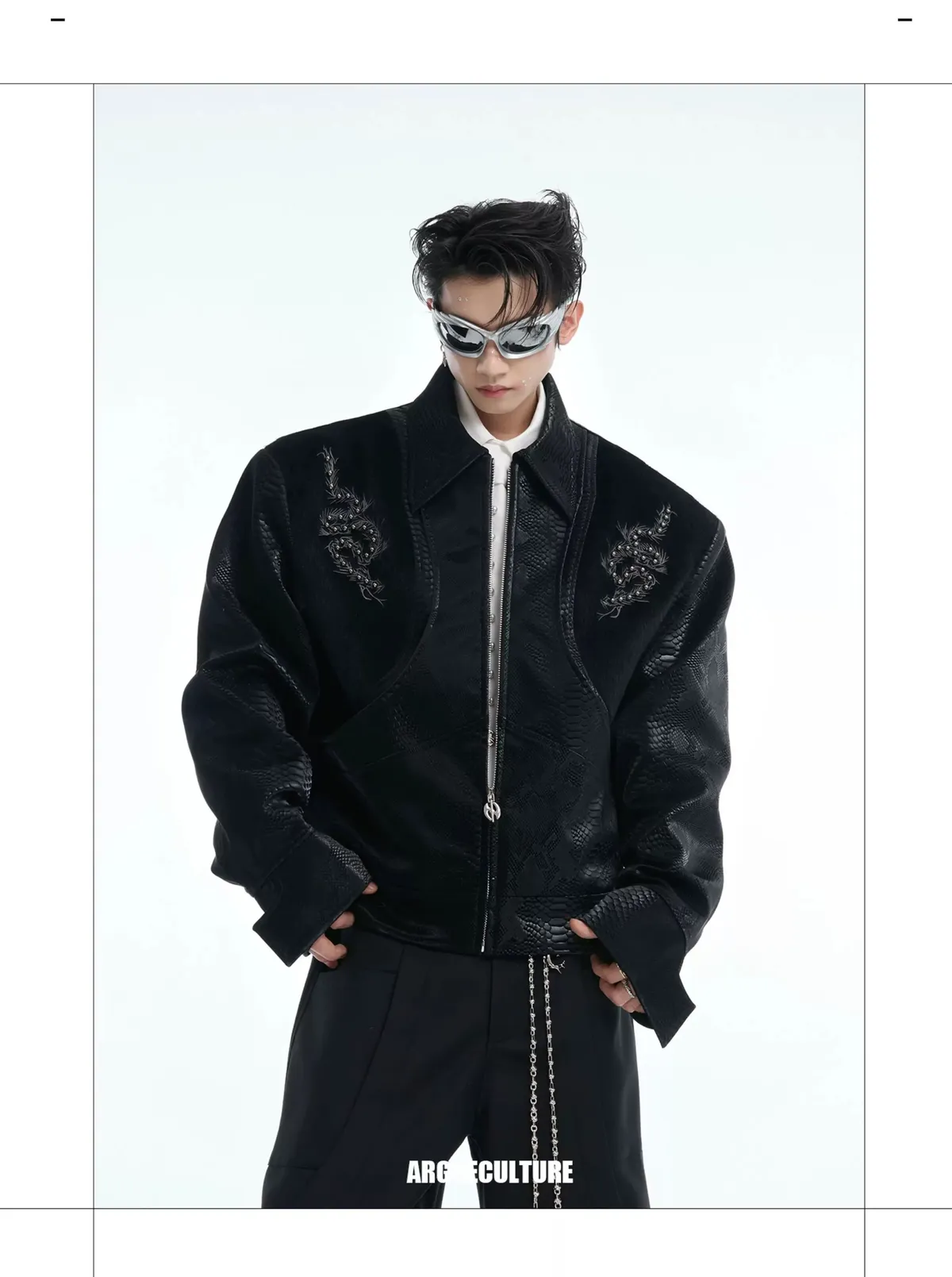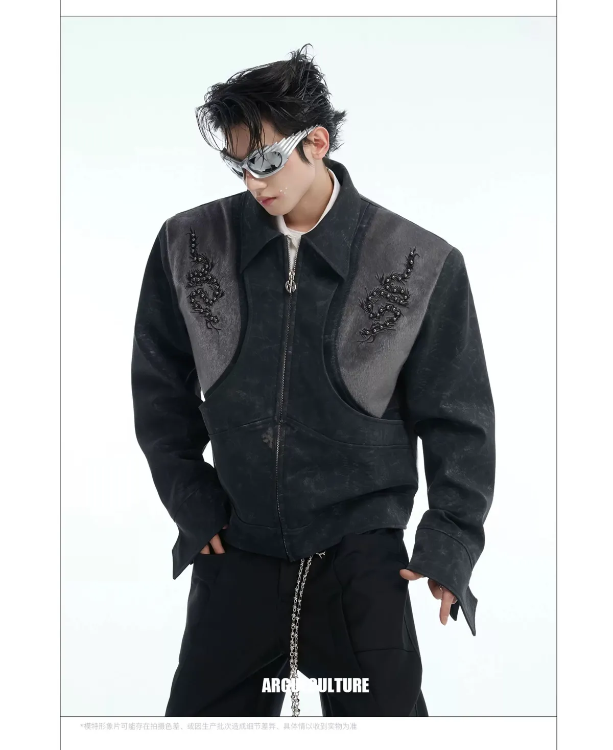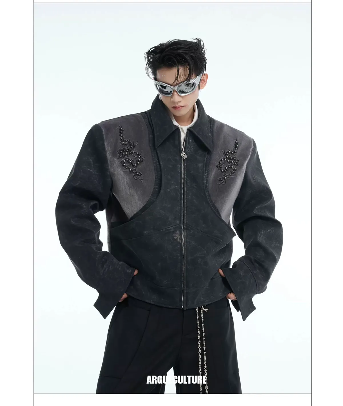 ARGUE 本期必收 蛇瞳脊骨 蛇紋麂皮 卯釘 外套(黑/灰)