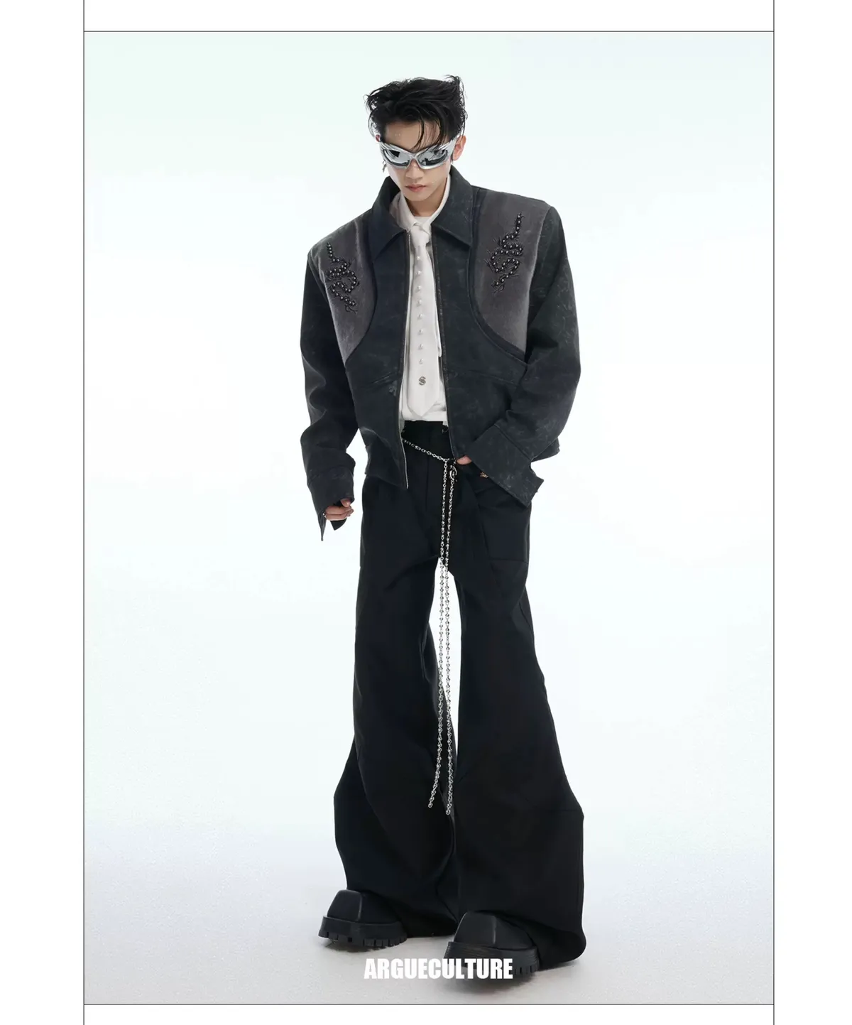 ARGUE 解構 微喇叭 金屬鍊條 長褲 西裝褲(黑色)