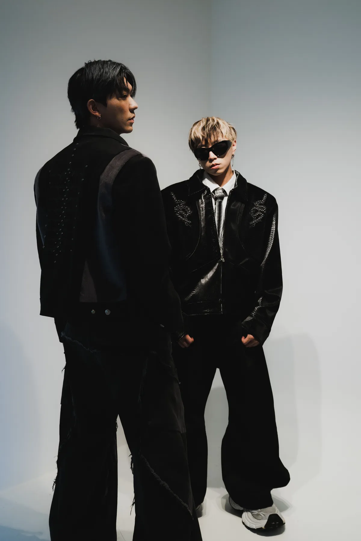 ARGUE 蛇影之鱗 重磅短寬 印花拼接 外套(黑/白)