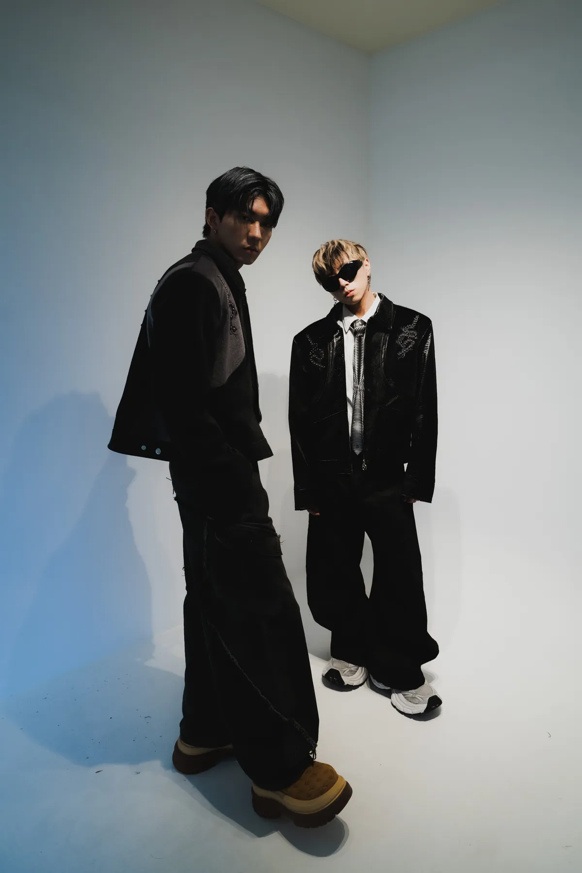 ARGUE 雙拉鍊 紋理 闊腿 西裝褲(深灰/杏)