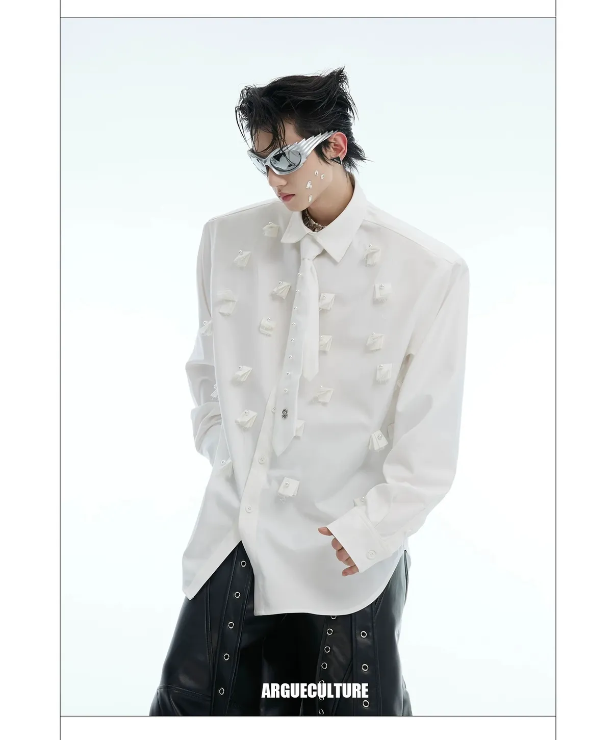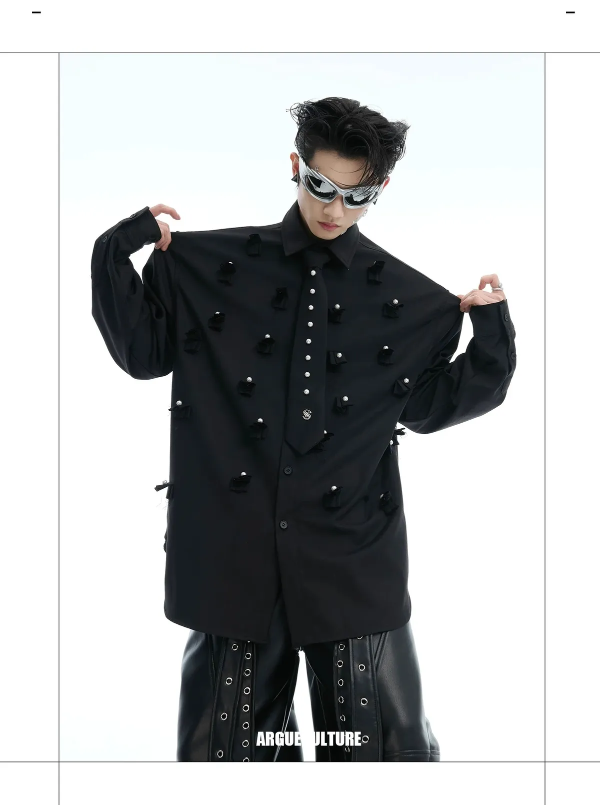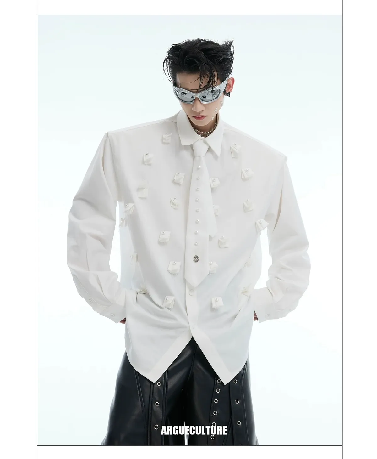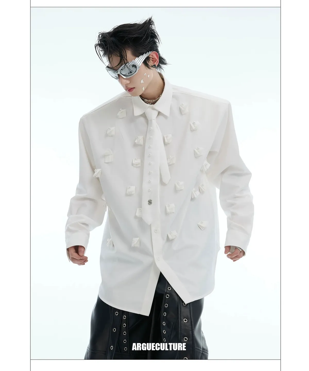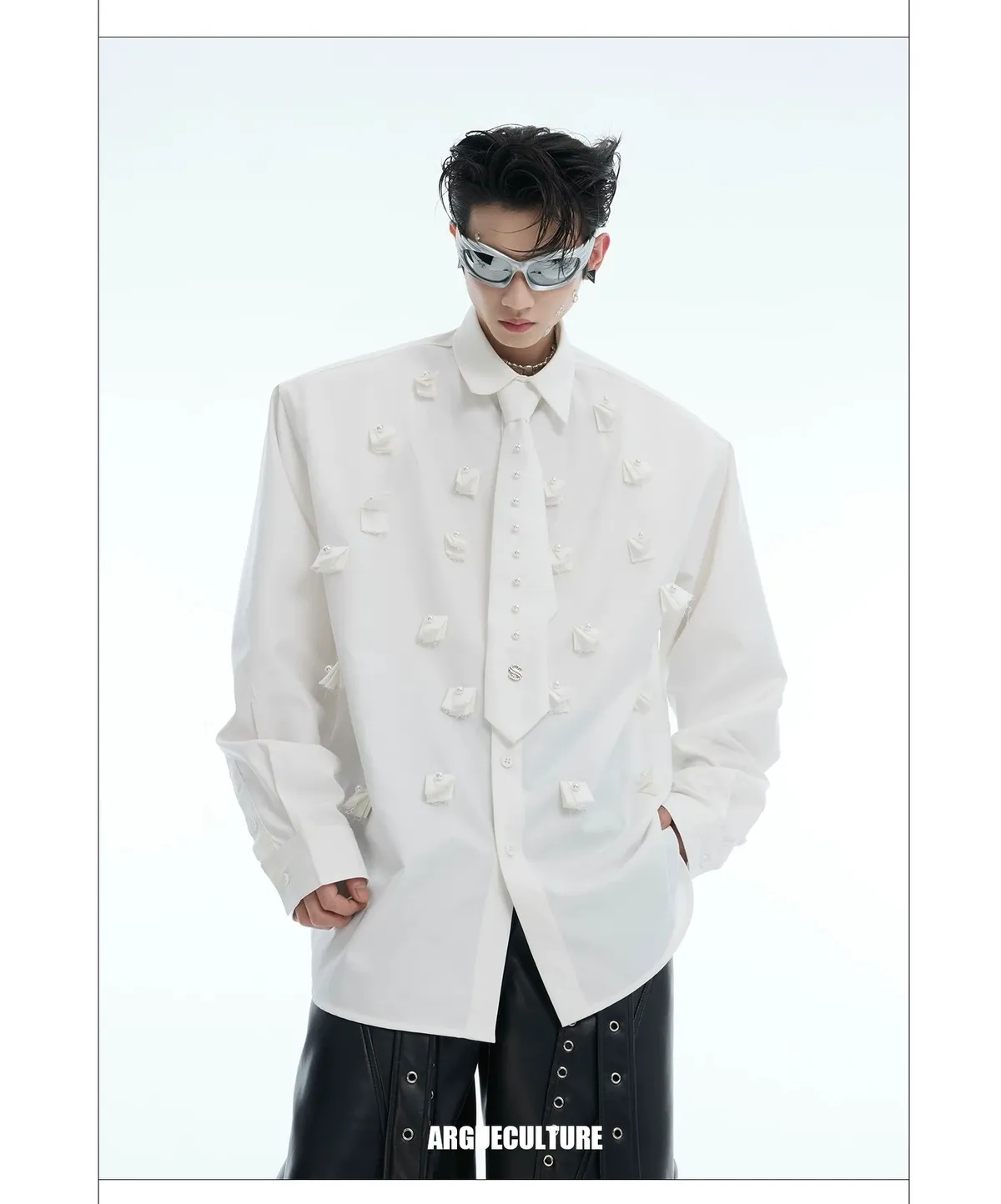 ARGUE 立體花朵 領帶 襯衫(黑/白)