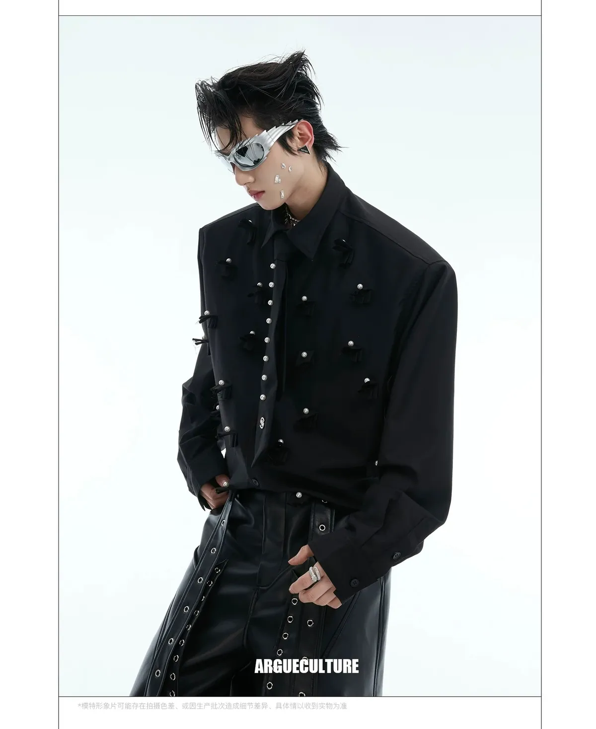 ARGUE 小眾 不規則分割 卯釘 襯衫 外套(黑色)