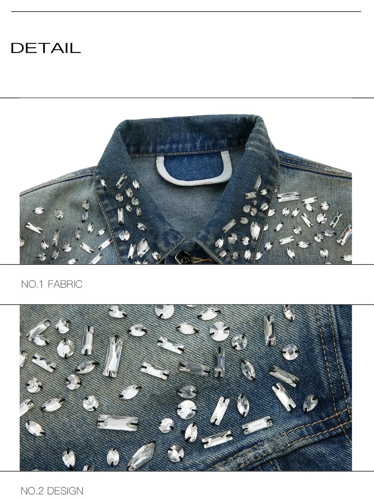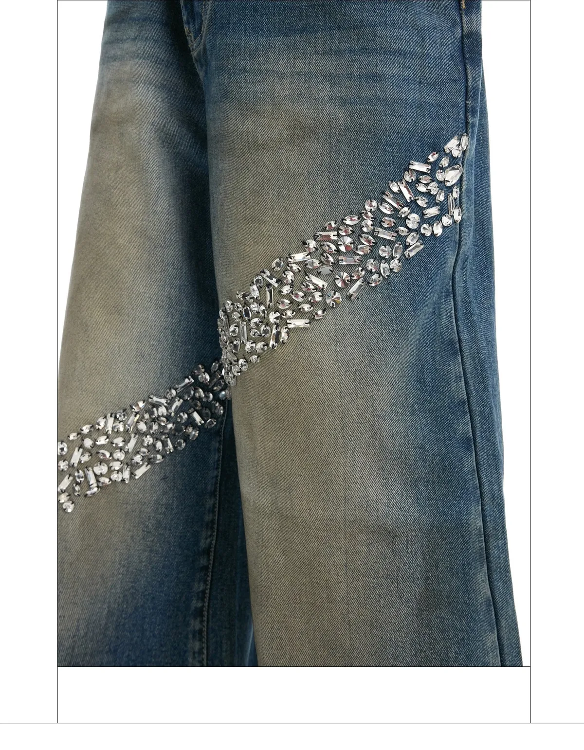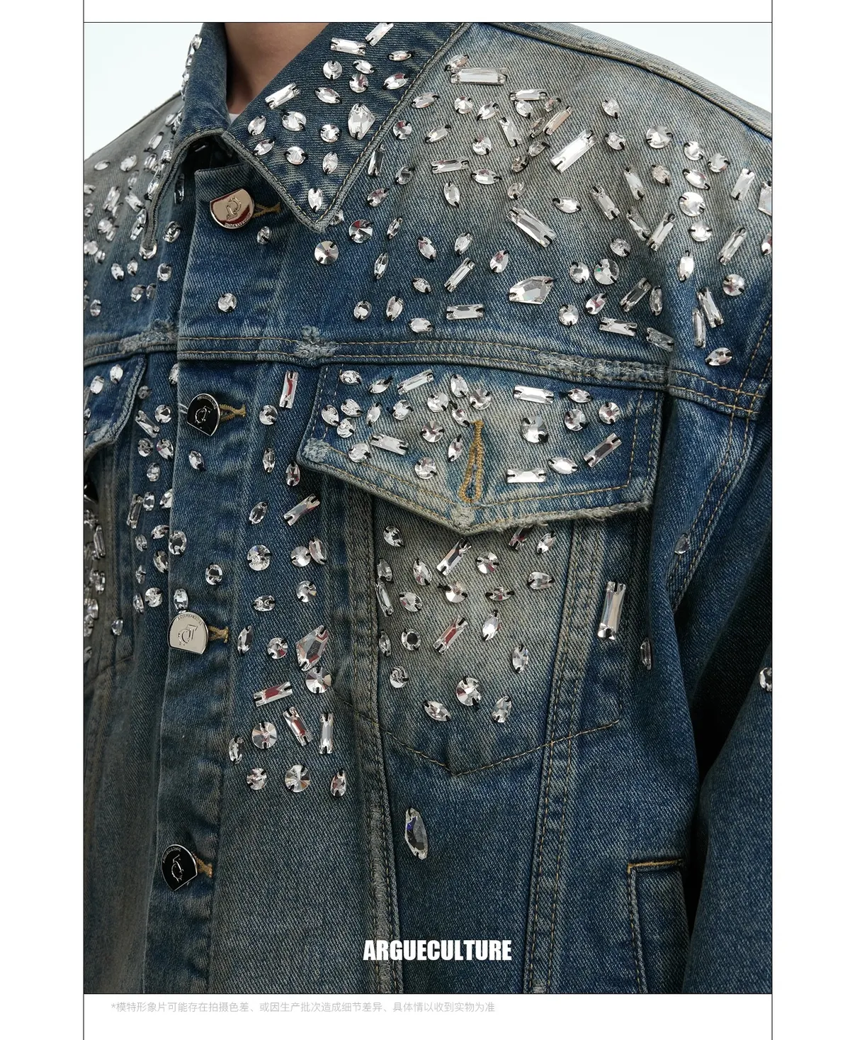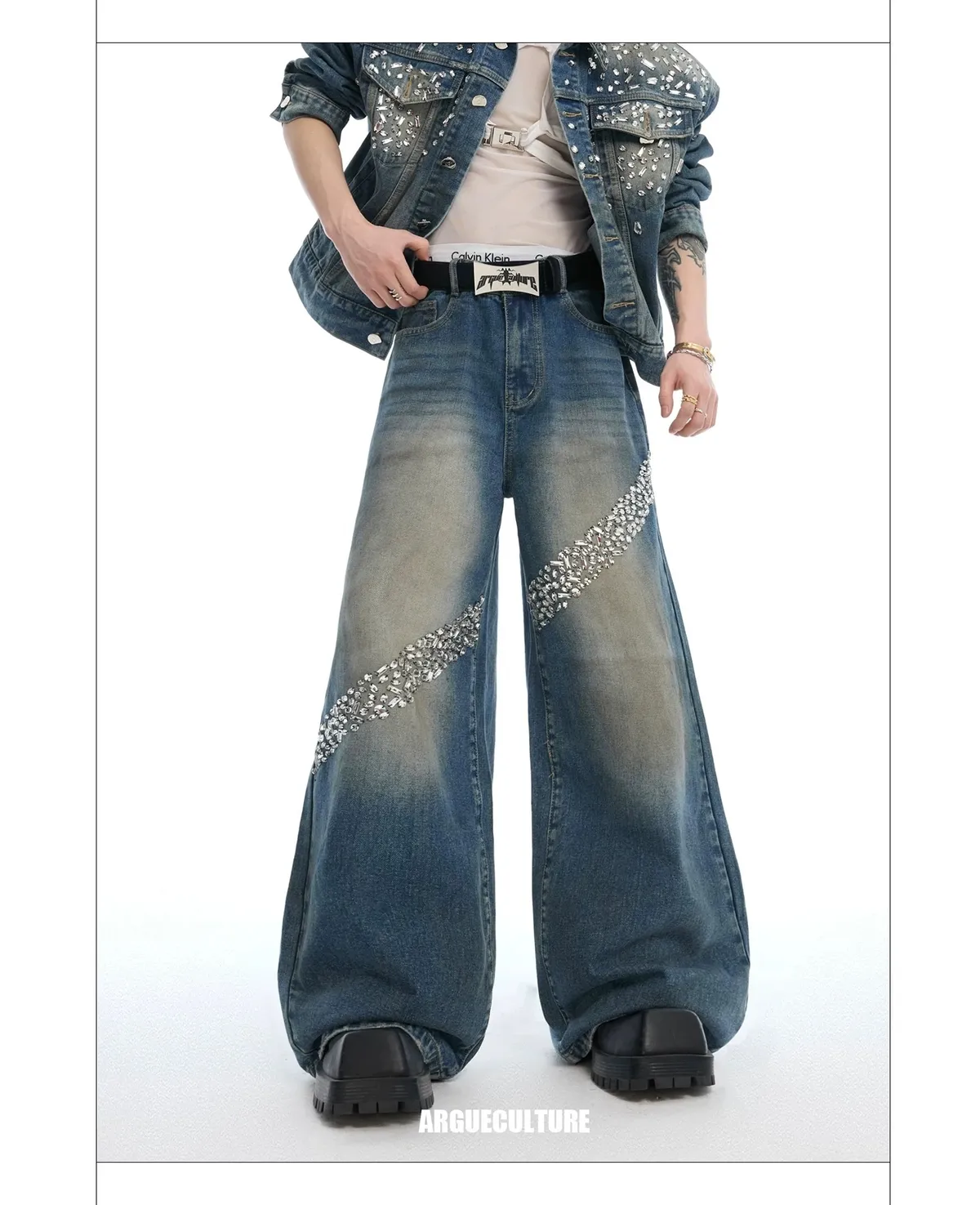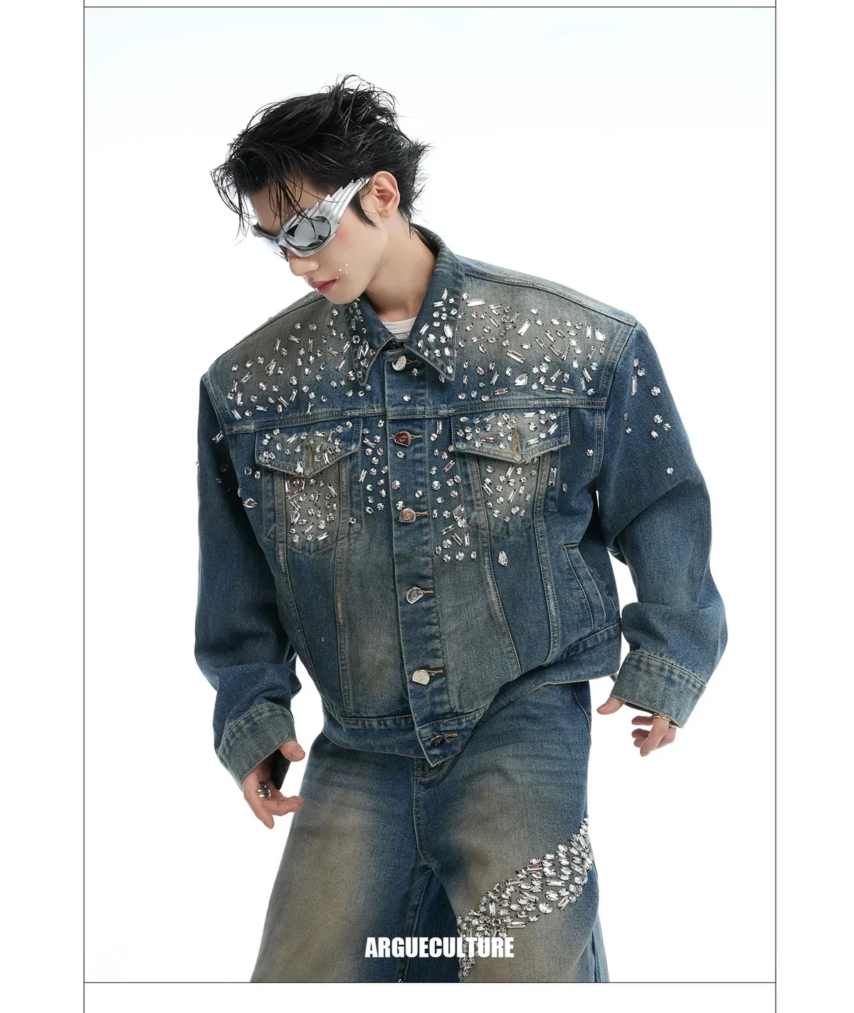 ARGUE 鑲鑽 重工 牛仔外套 牛仔褲 闊腿褲 套裝(水洗藍)