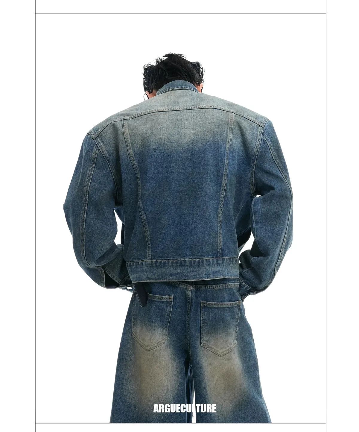 ARGUE 假兩件 解構 牛仔外套 牛仔褲 闊腿褲 套裝(水洗藍)