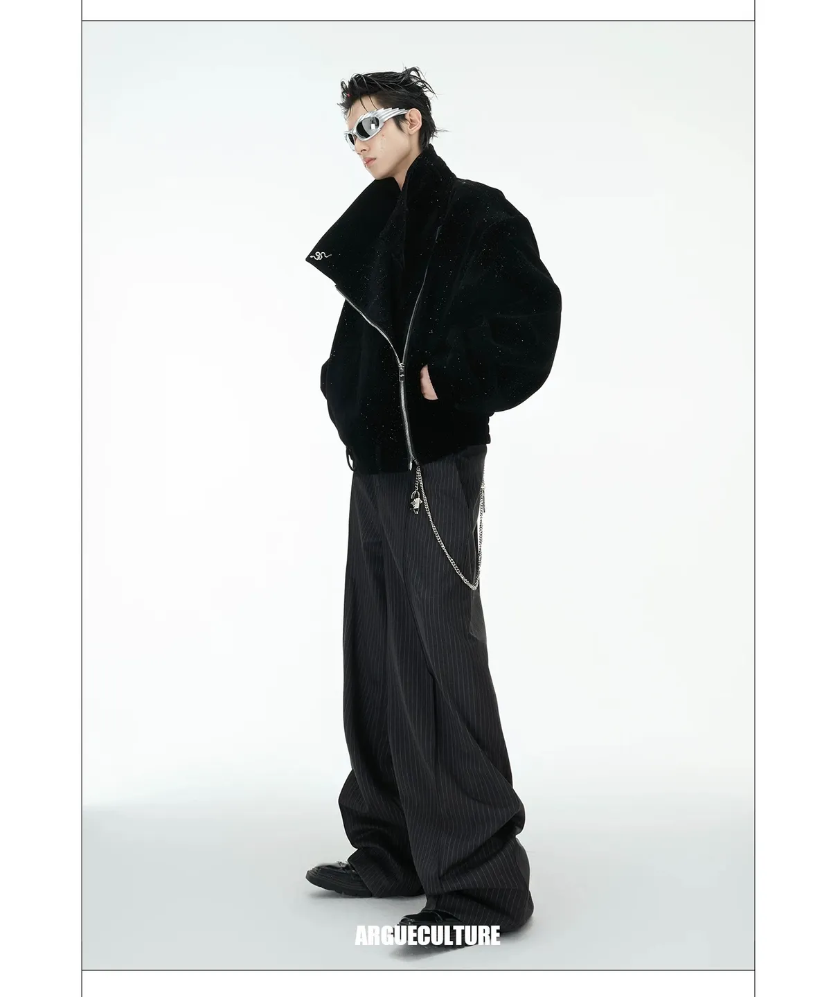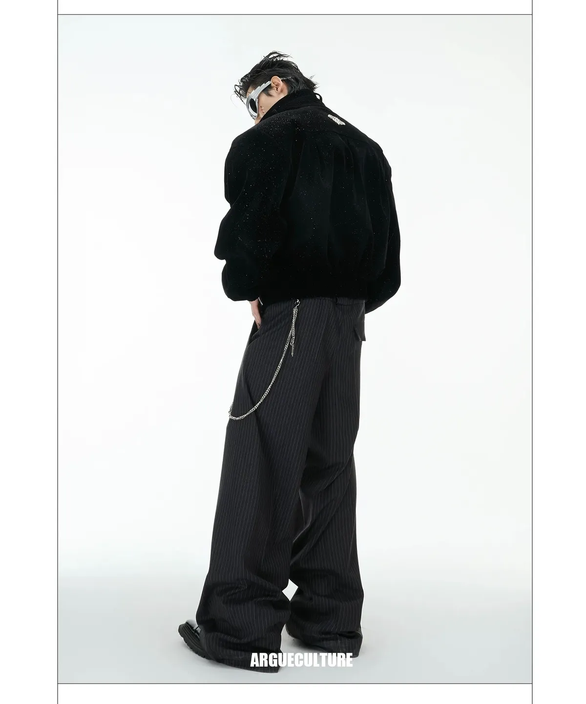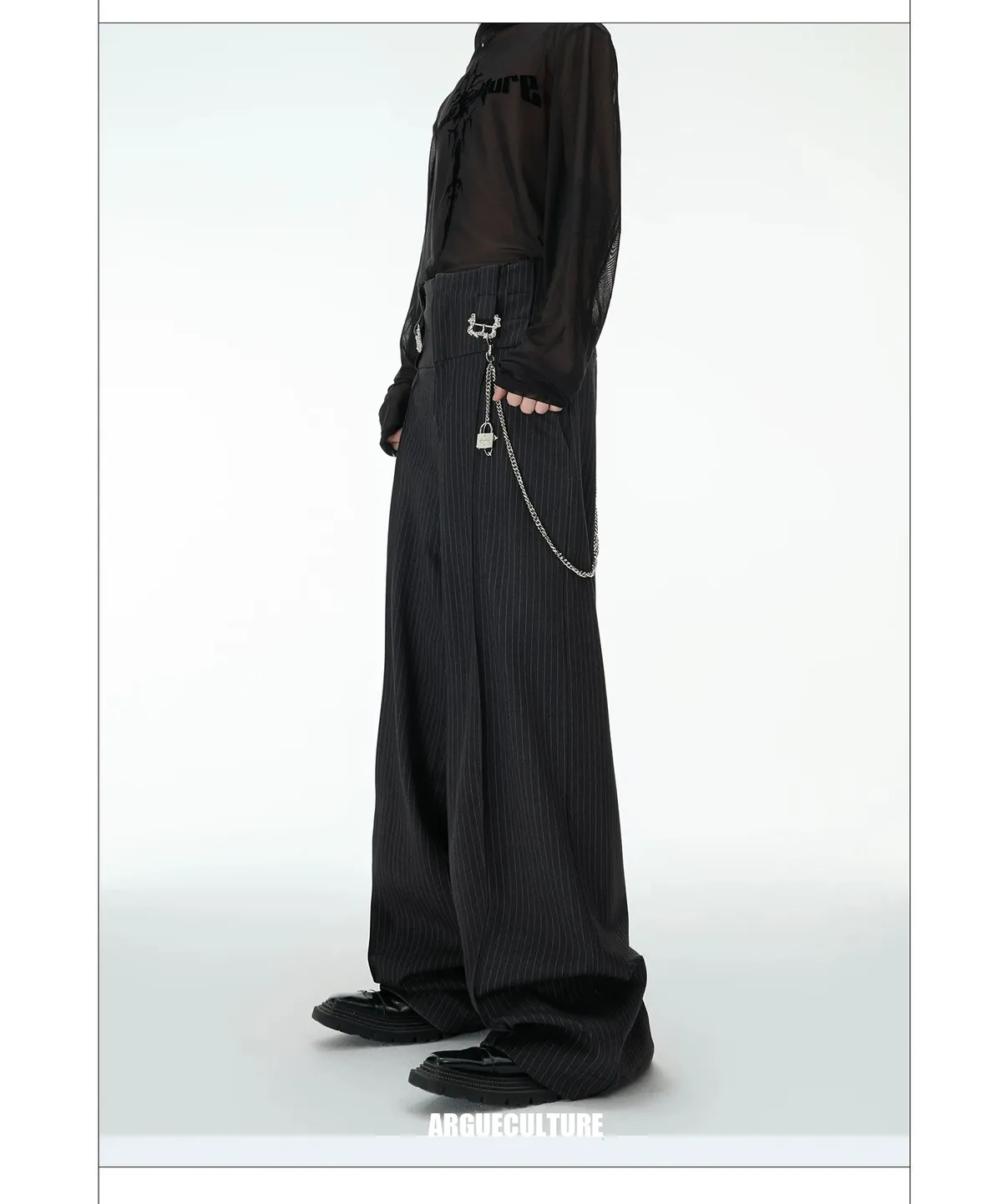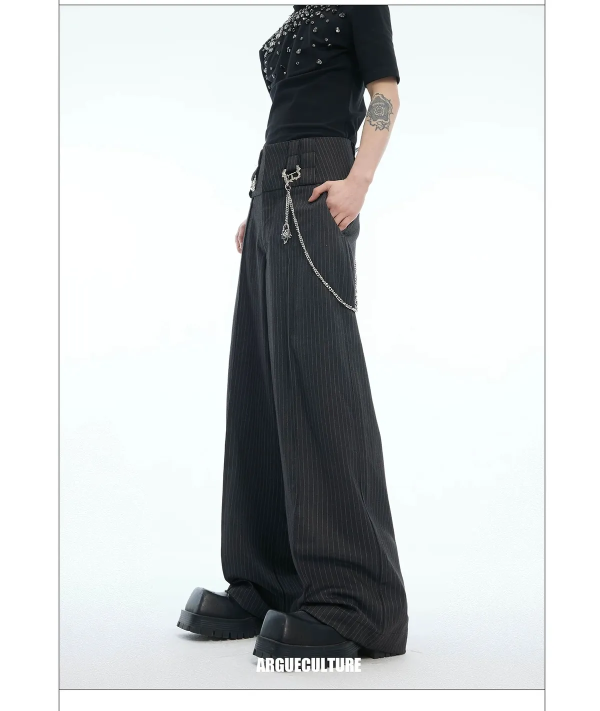 ARGUE 閃粉 高腰 闊腿 西裝褲(黑色)