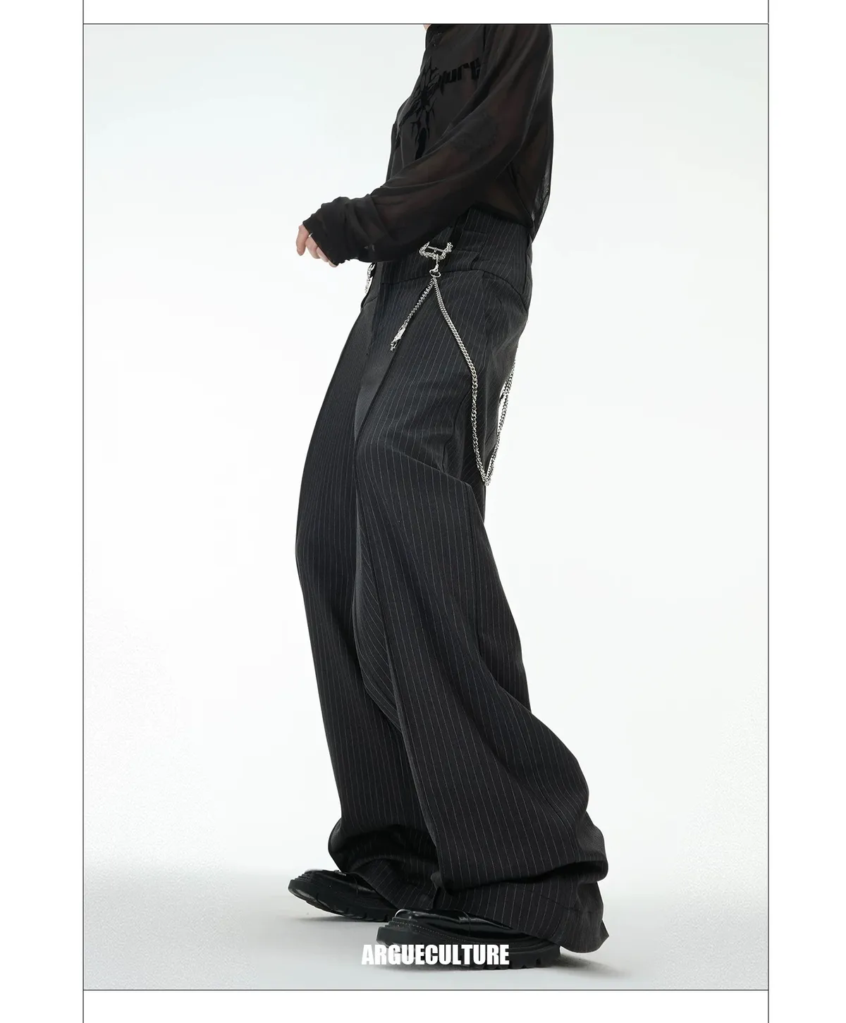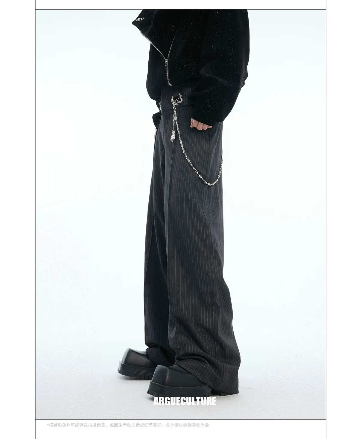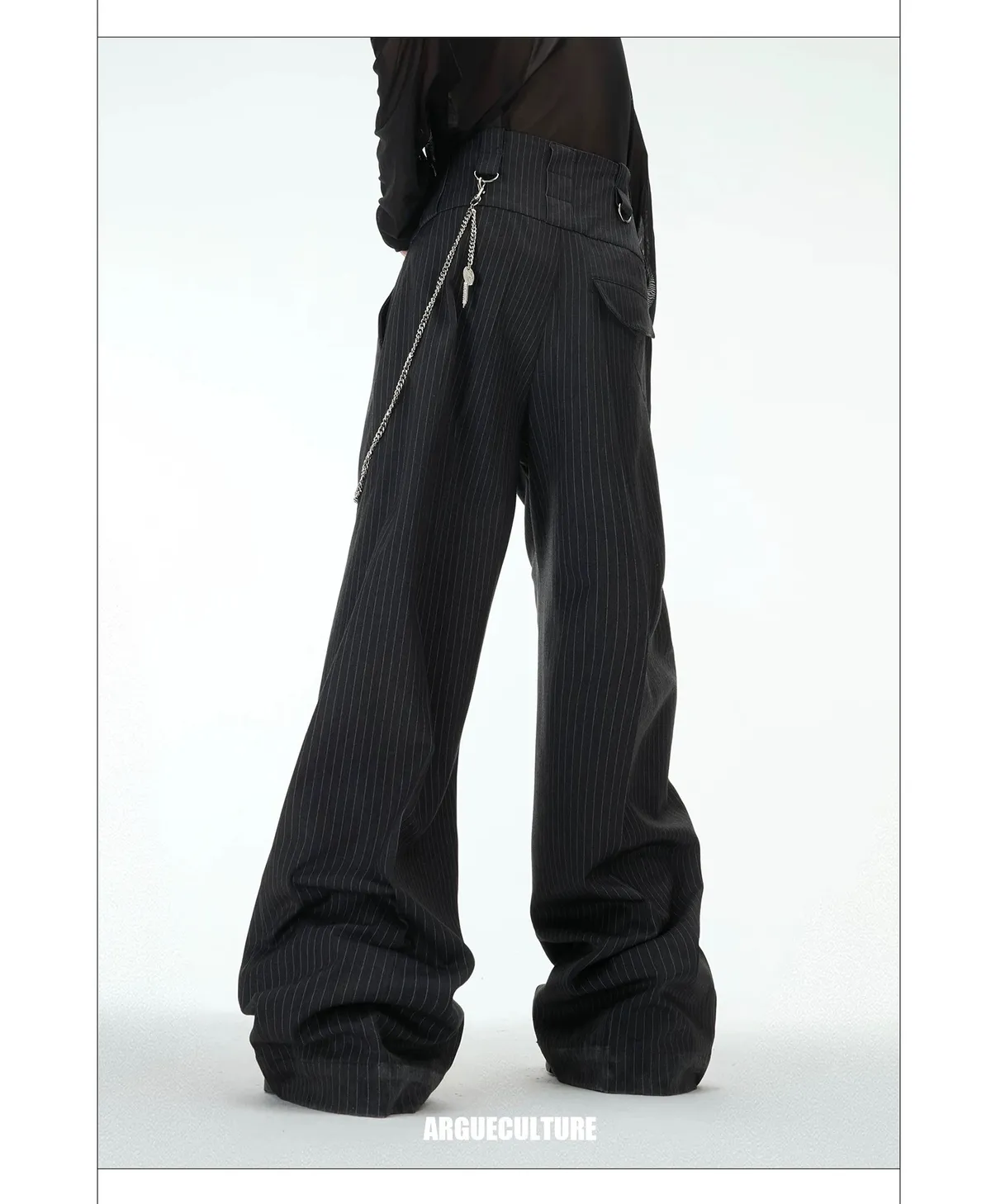 ARGUE 復古條紋 三層褲頭 西裝褲(深灰)