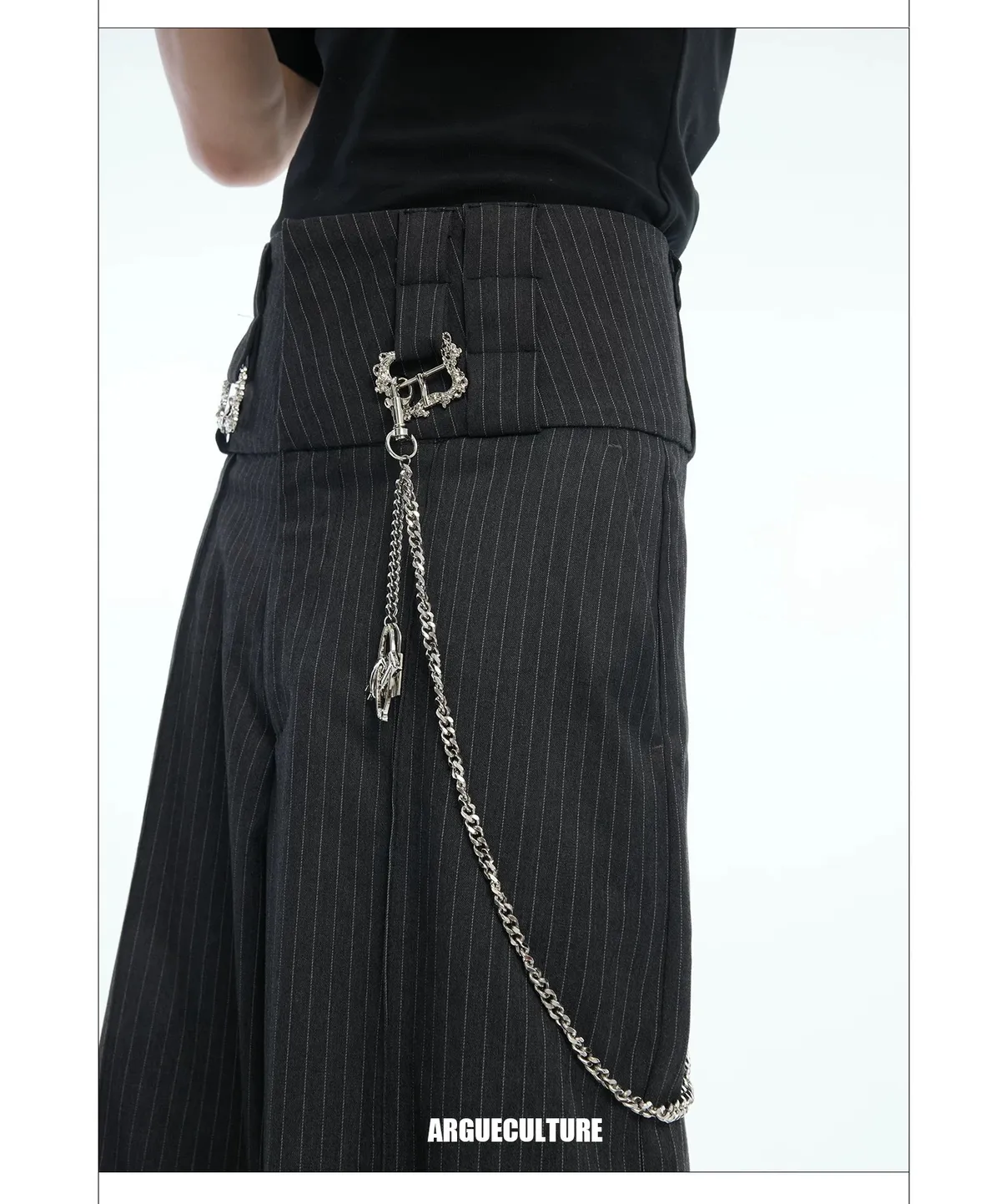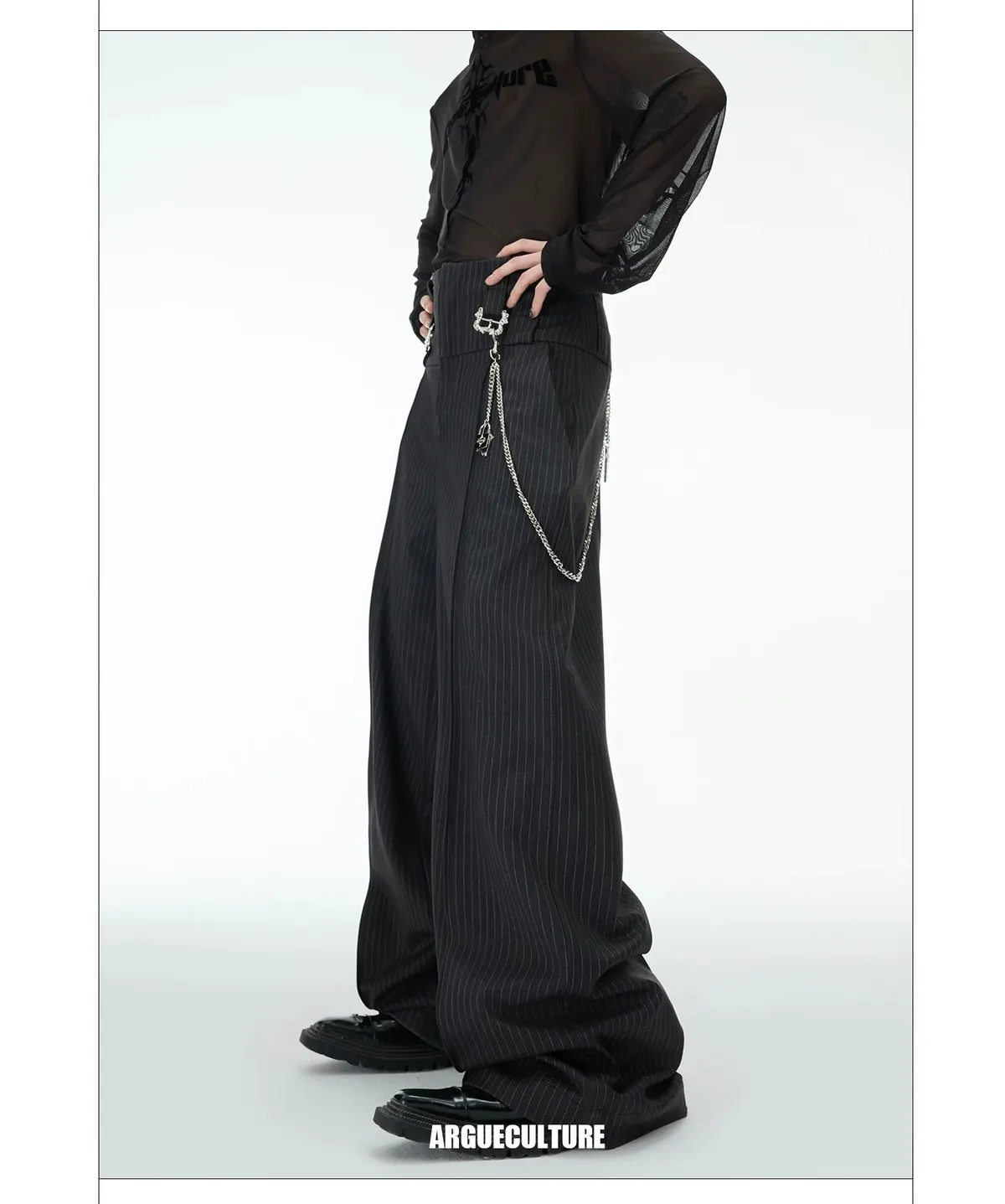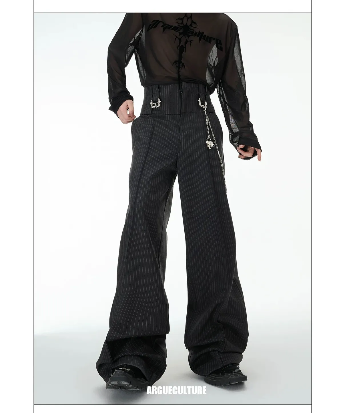ARGUE 復古條紋 三層褲頭 西裝褲(深灰)