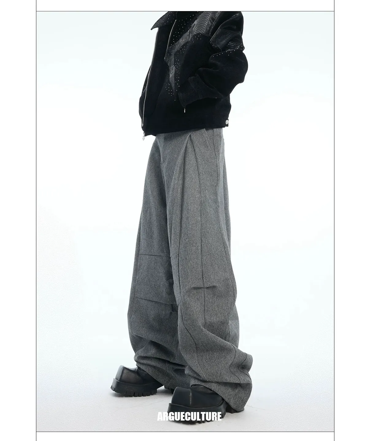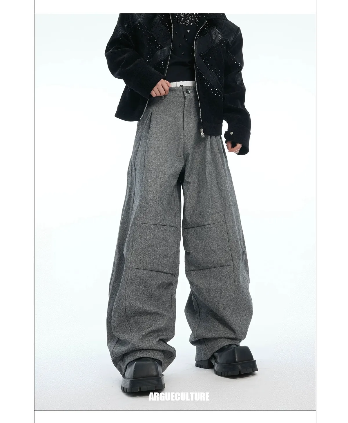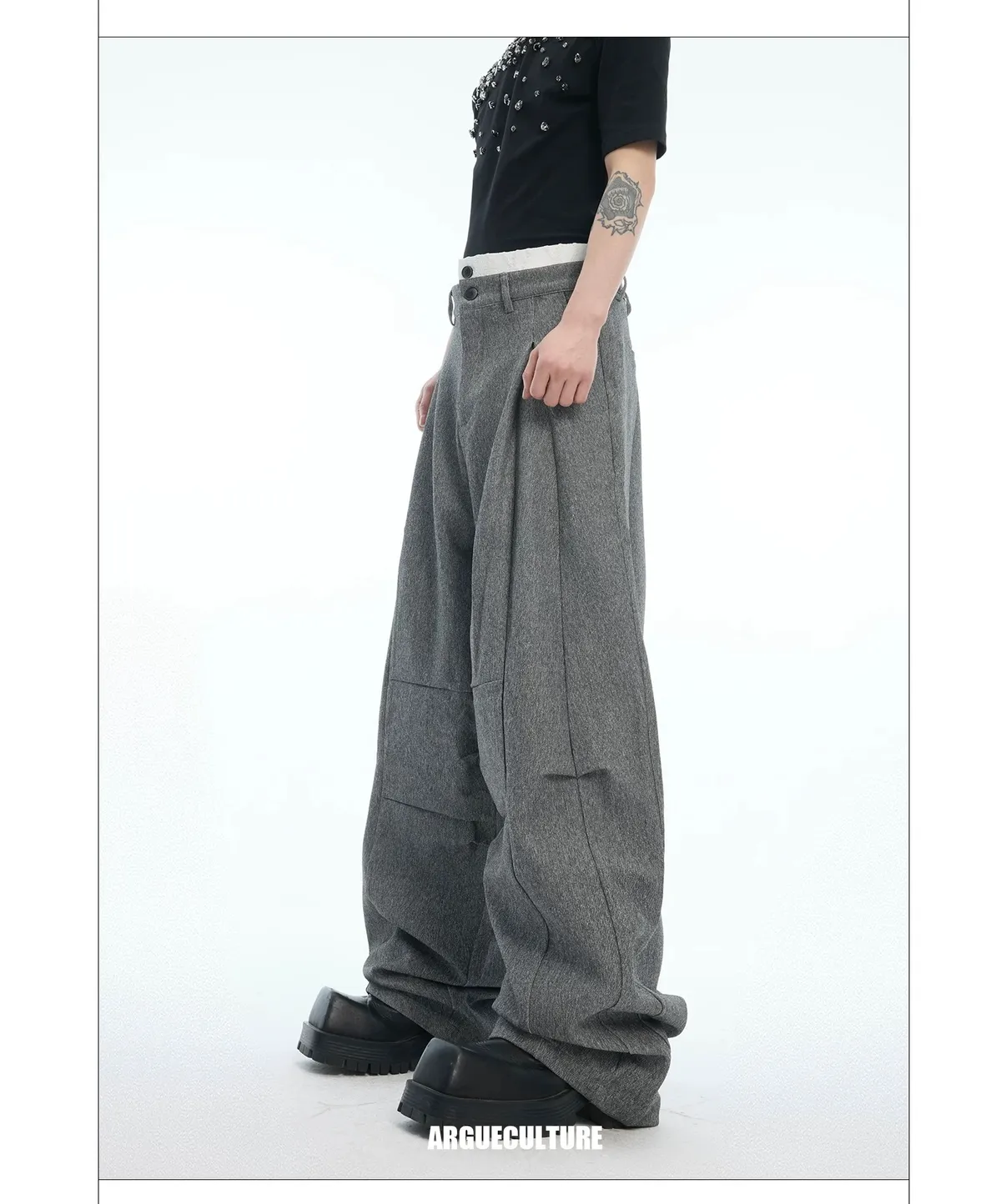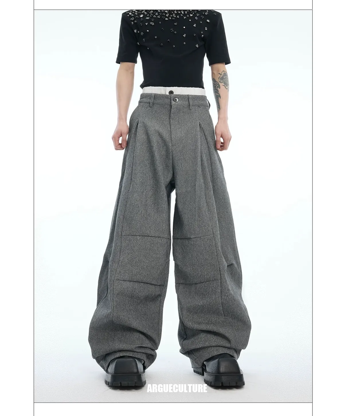ARGUE 雙腰設計 壓褶 西裝褲(黑/灰)
