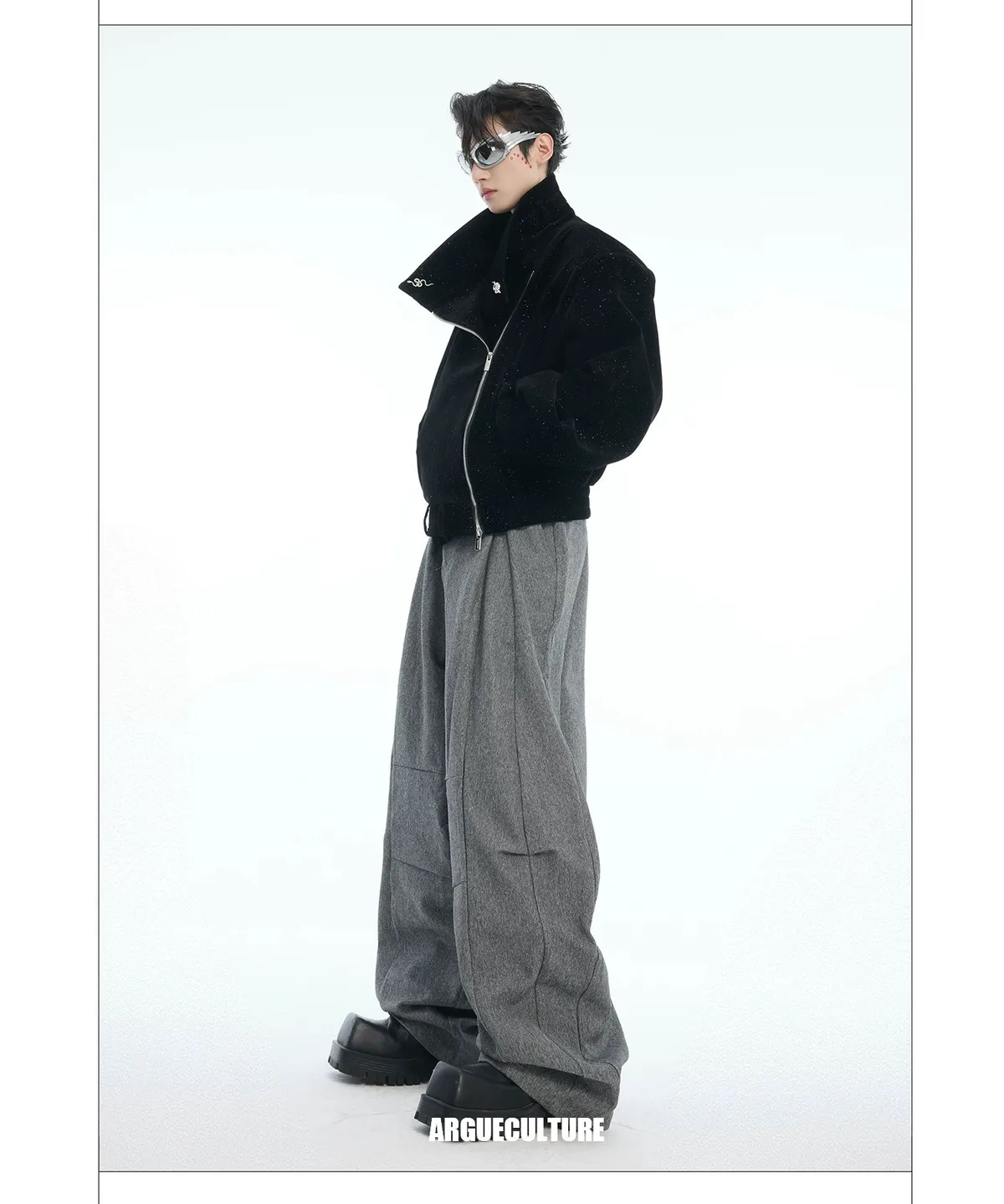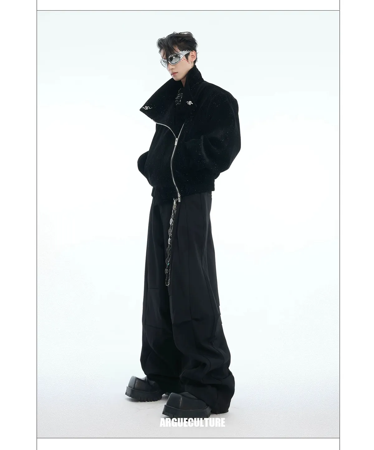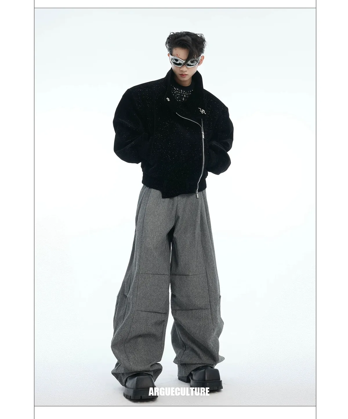 ARGUE 閃粉 高腰 闊腿 西裝褲(黑色)