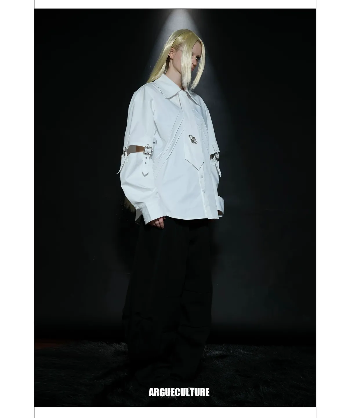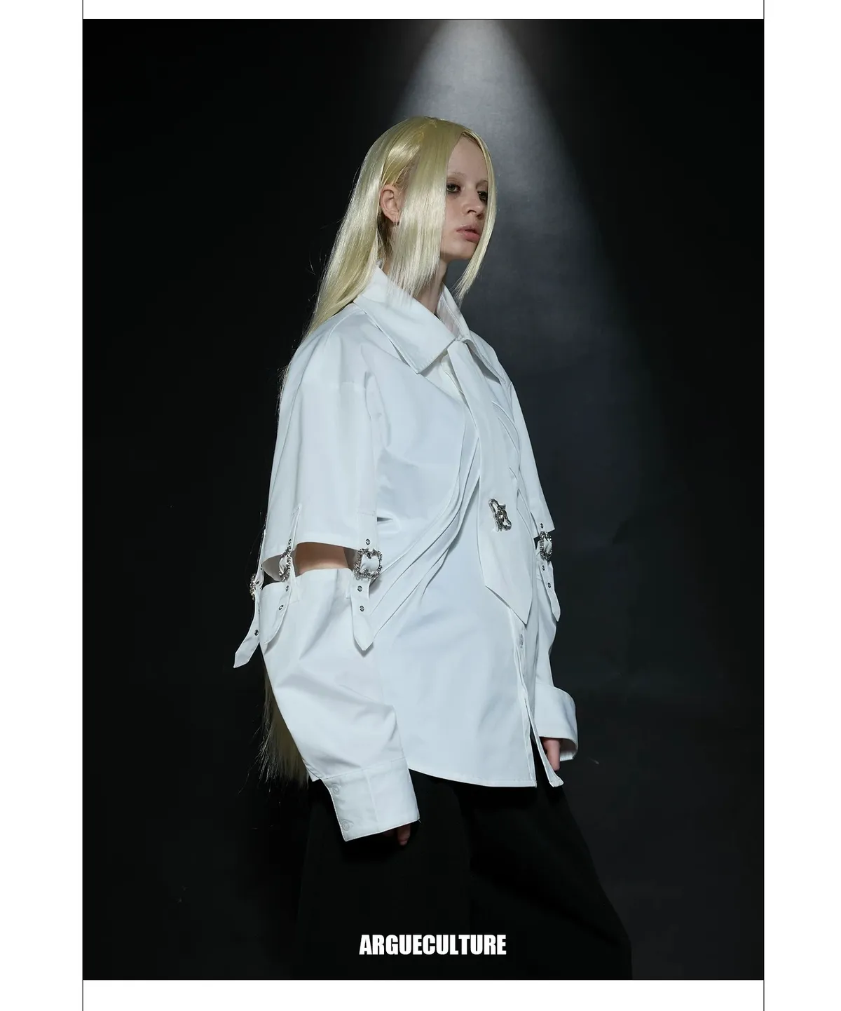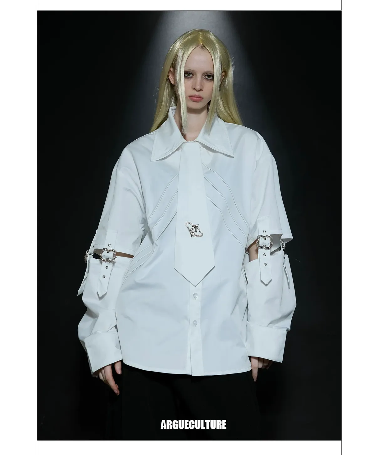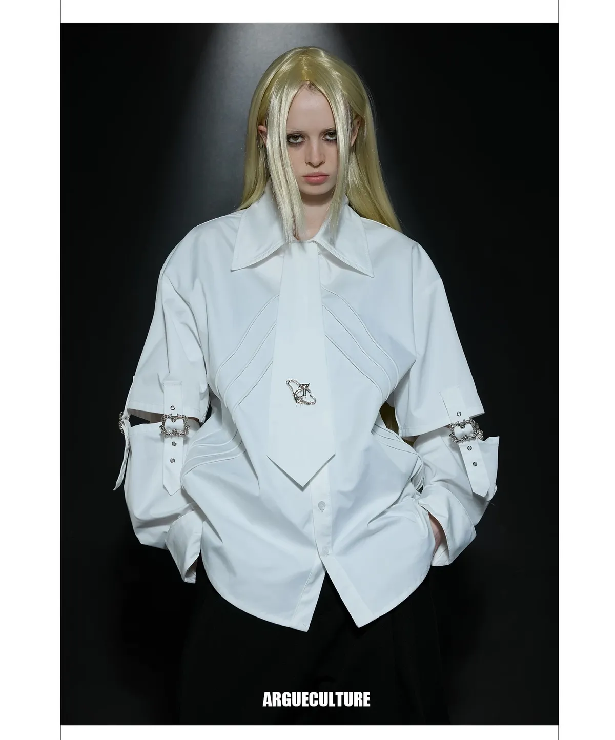ARGUE 鏤空綁帶 可拆袖 領帶 襯衫(黑/白)