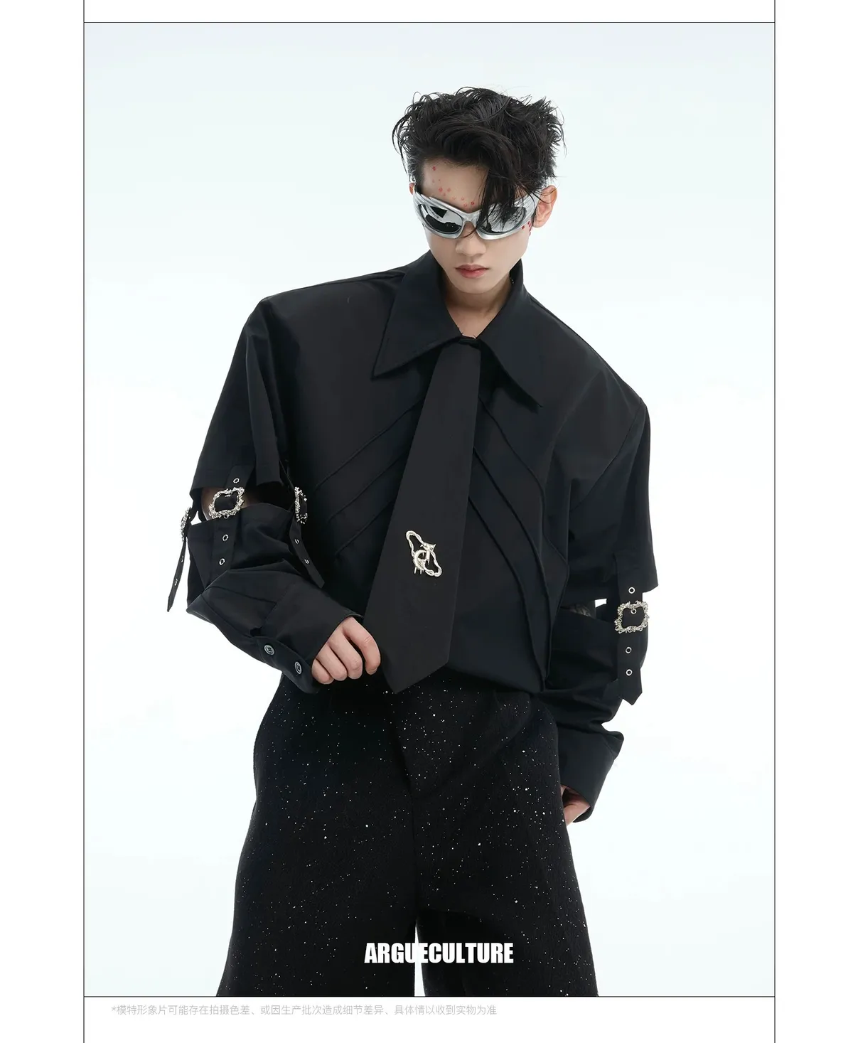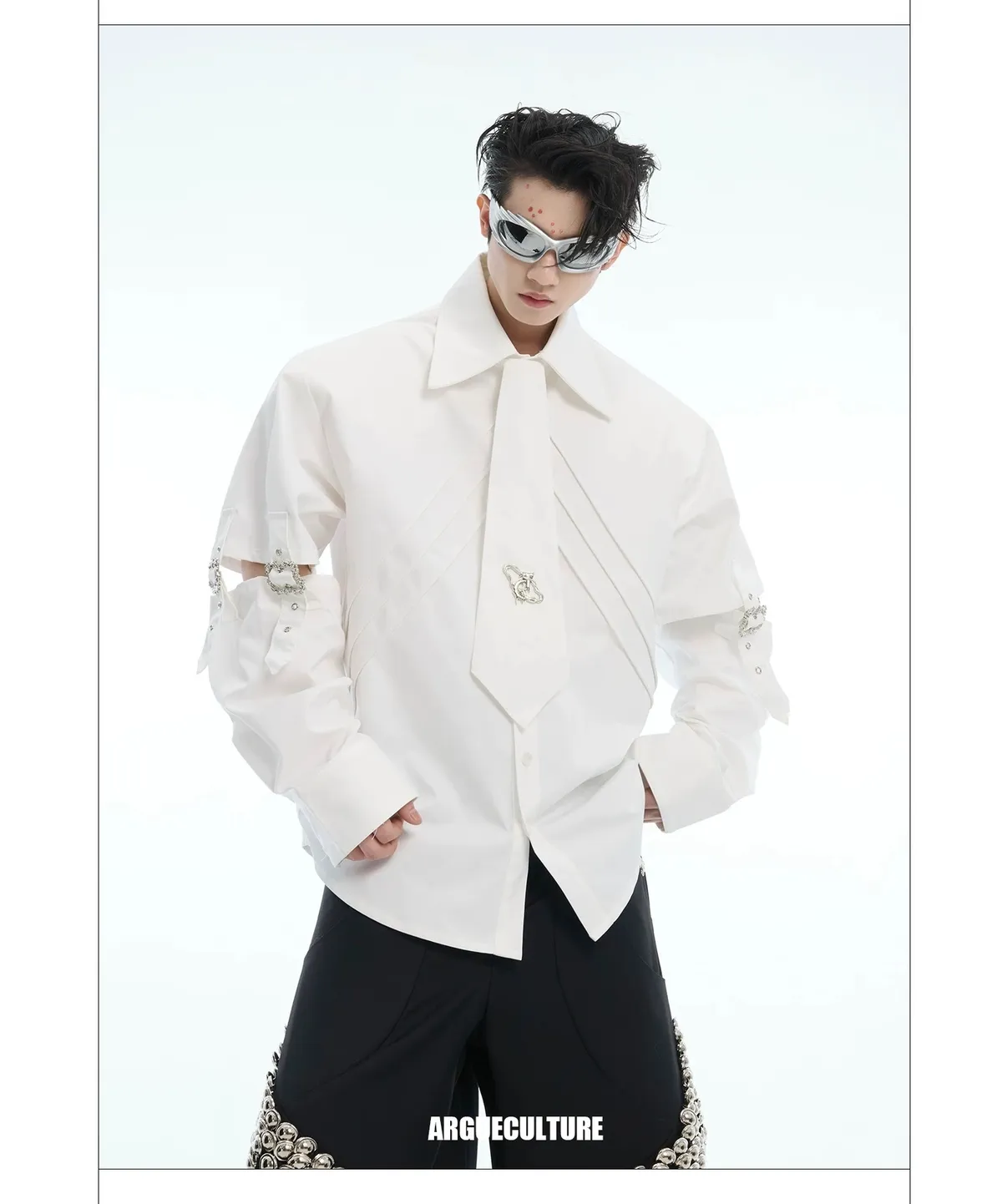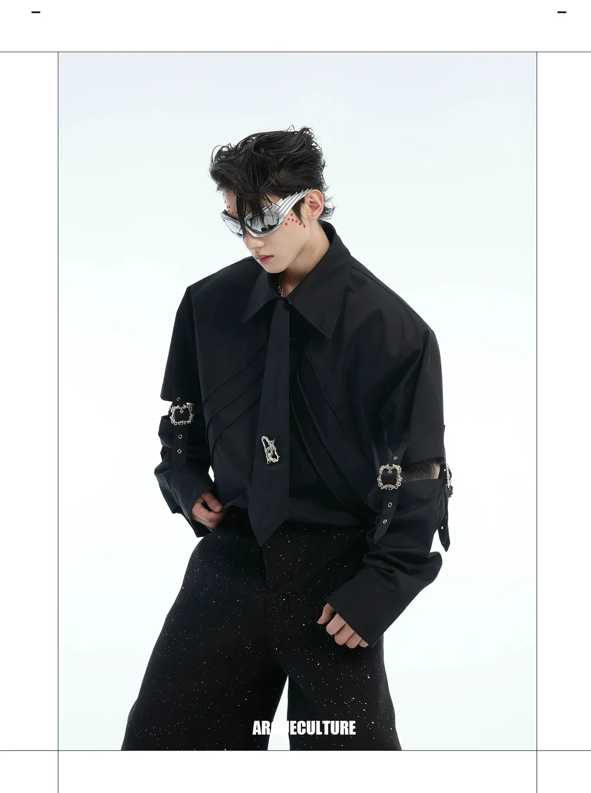 ARGUE 鏤空綁帶 可拆袖 領帶 襯衫(黑/白)