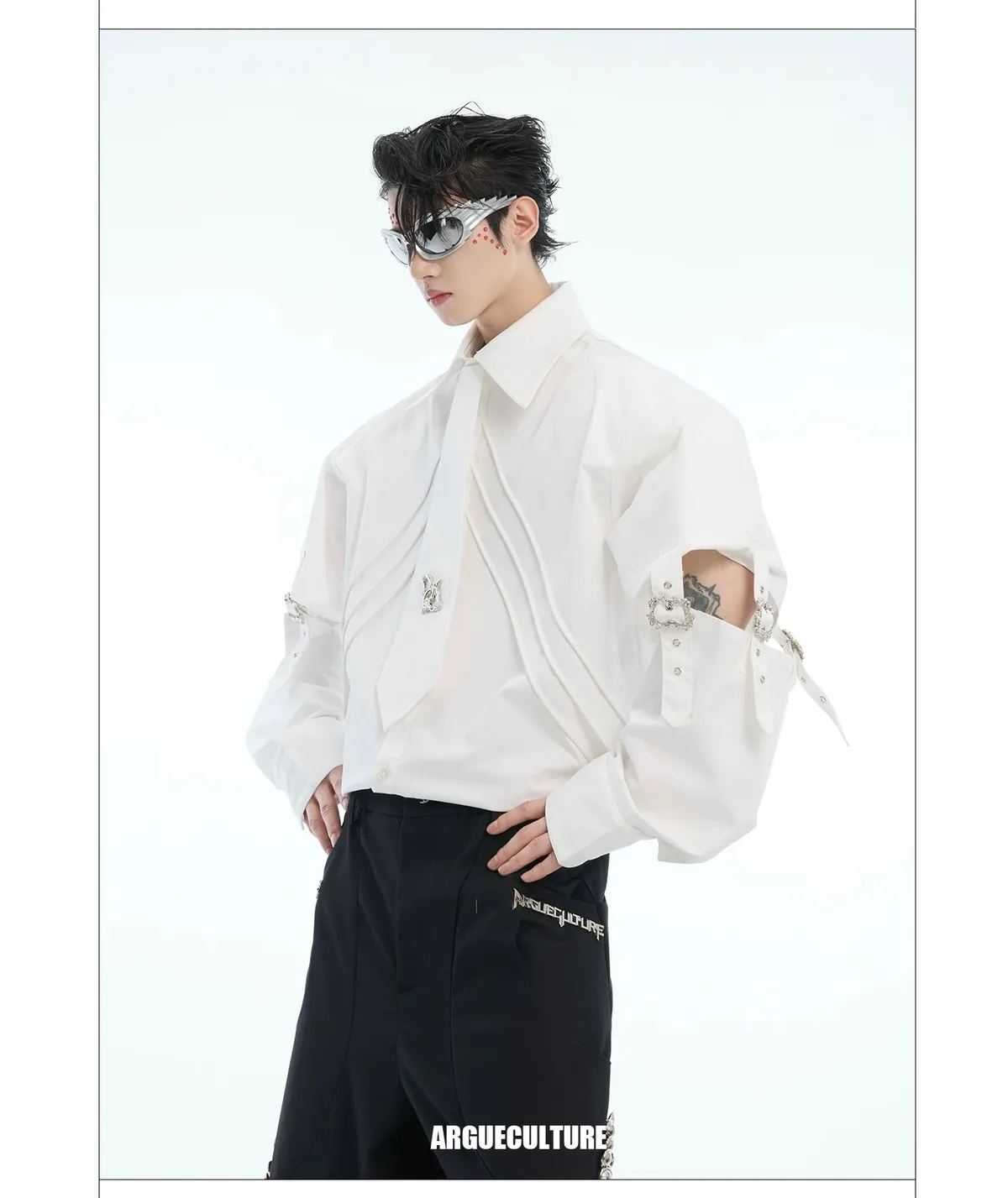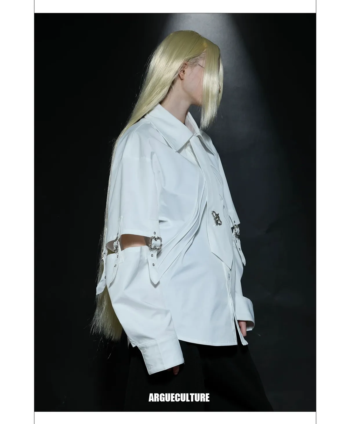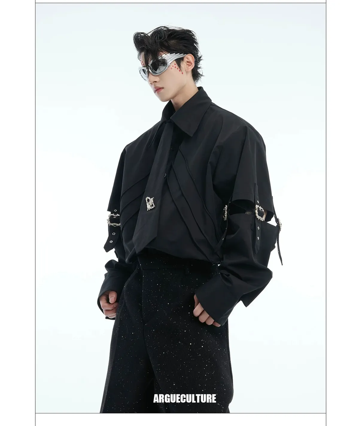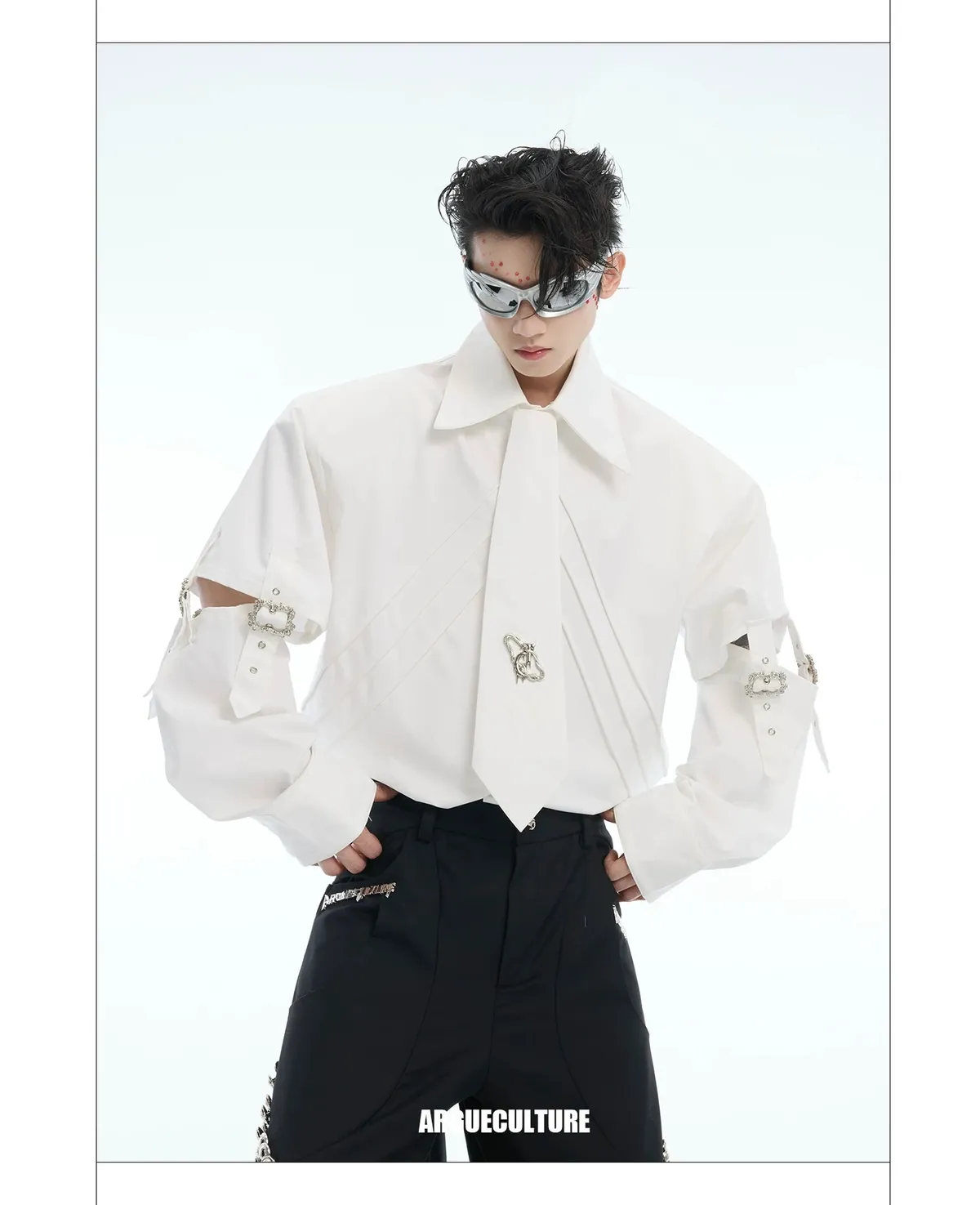 ARGUE 鏤空綁帶 可拆袖 領帶 襯衫(黑/白)