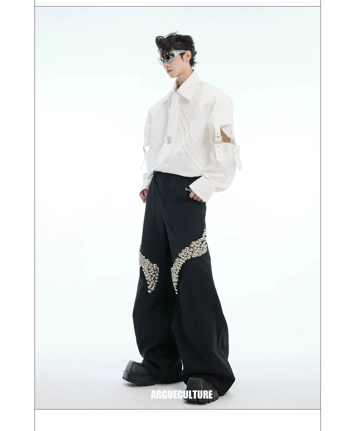 ARGUE 靈眸脊骨 刺繡卯釘 長袖 襯衫(黑/白/藍)