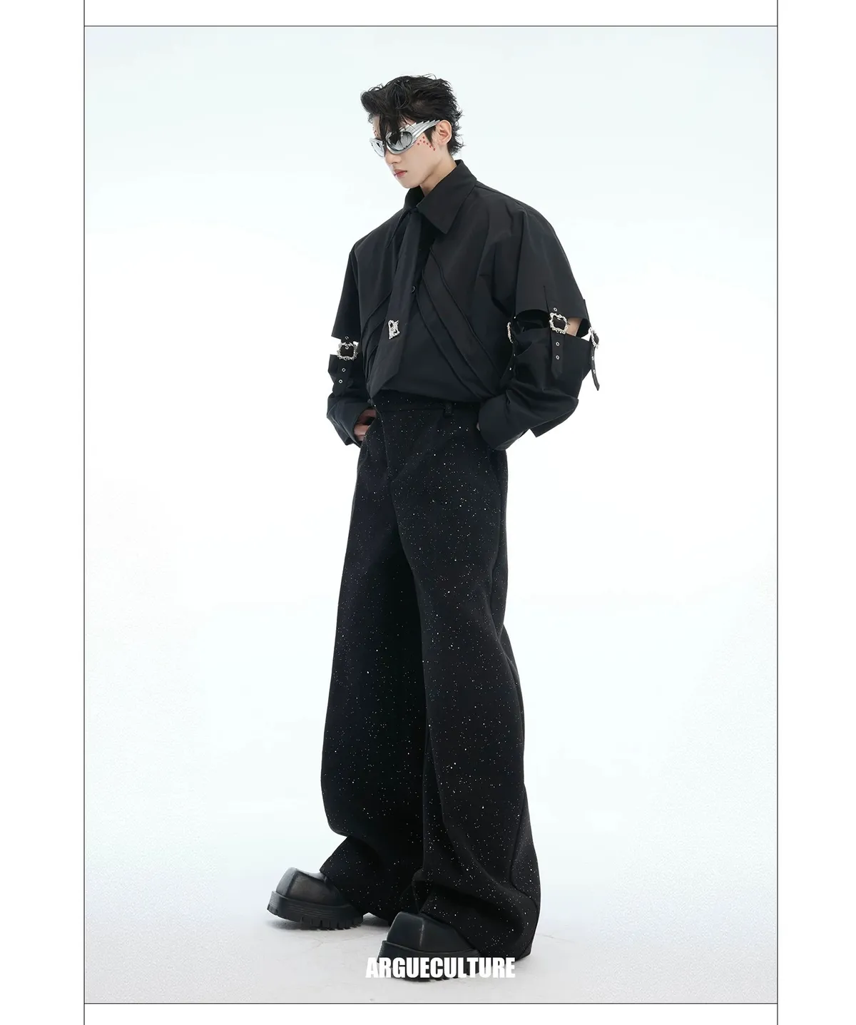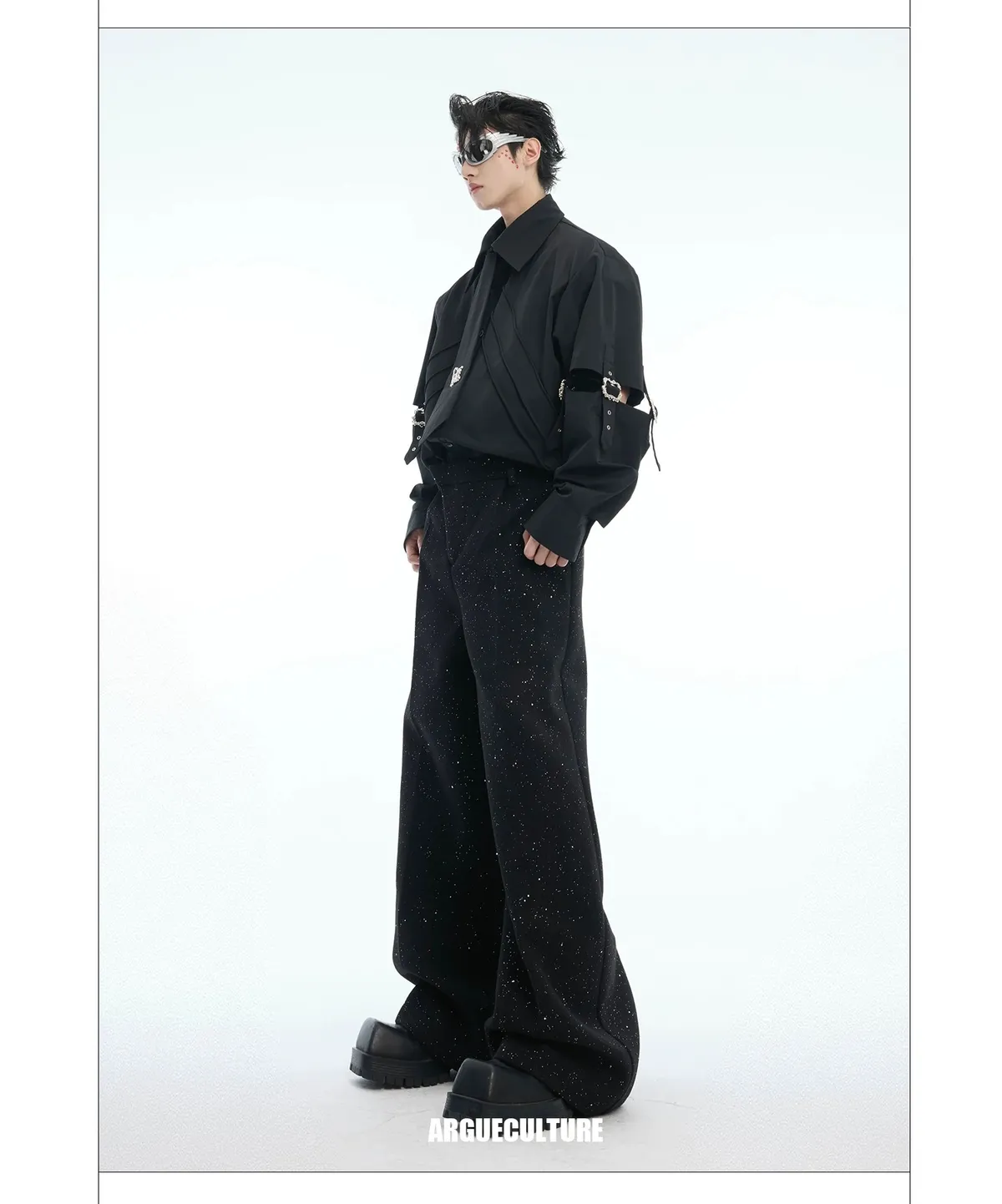 ARGUE 閃粉 高腰 闊腿 西裝褲(黑色)